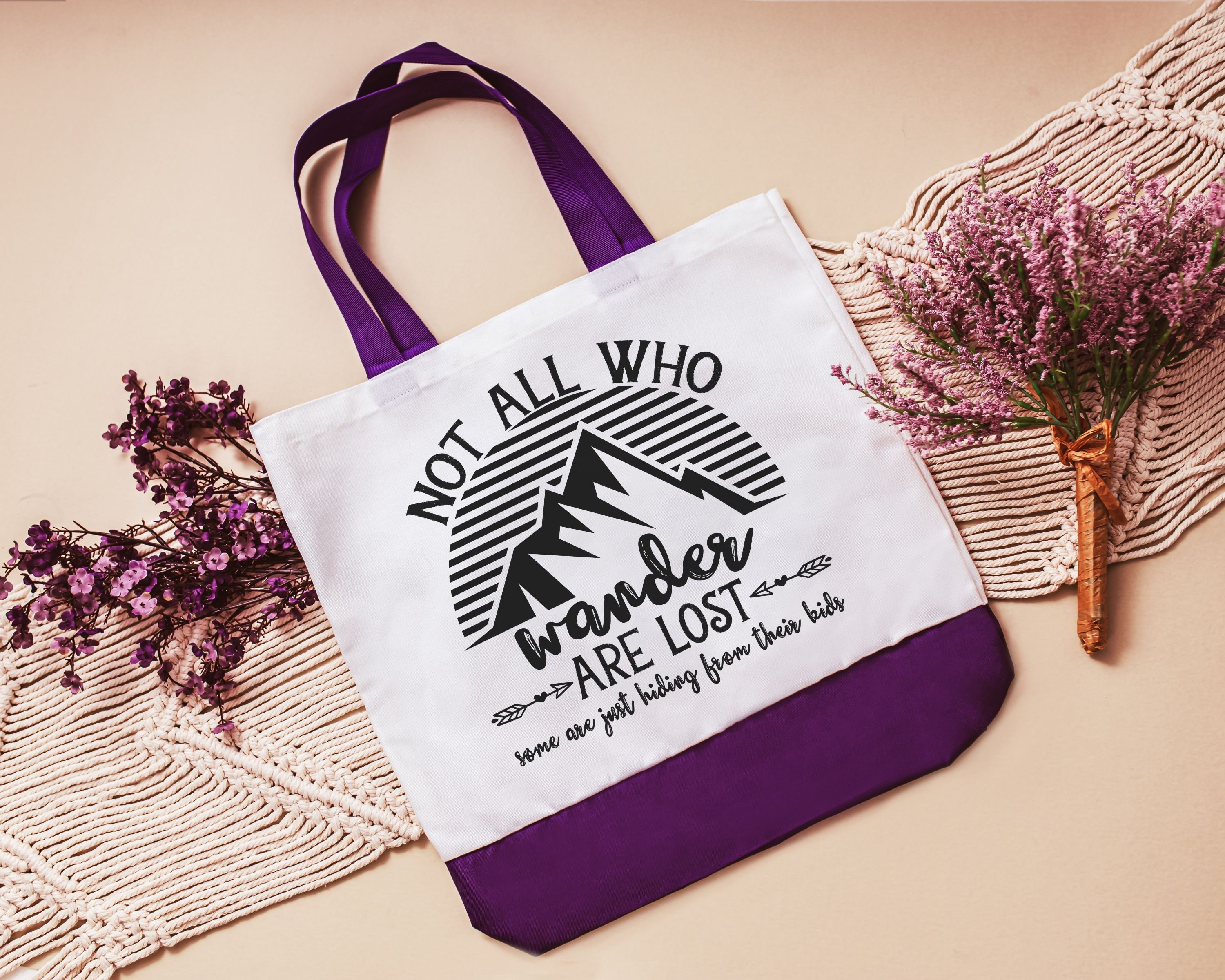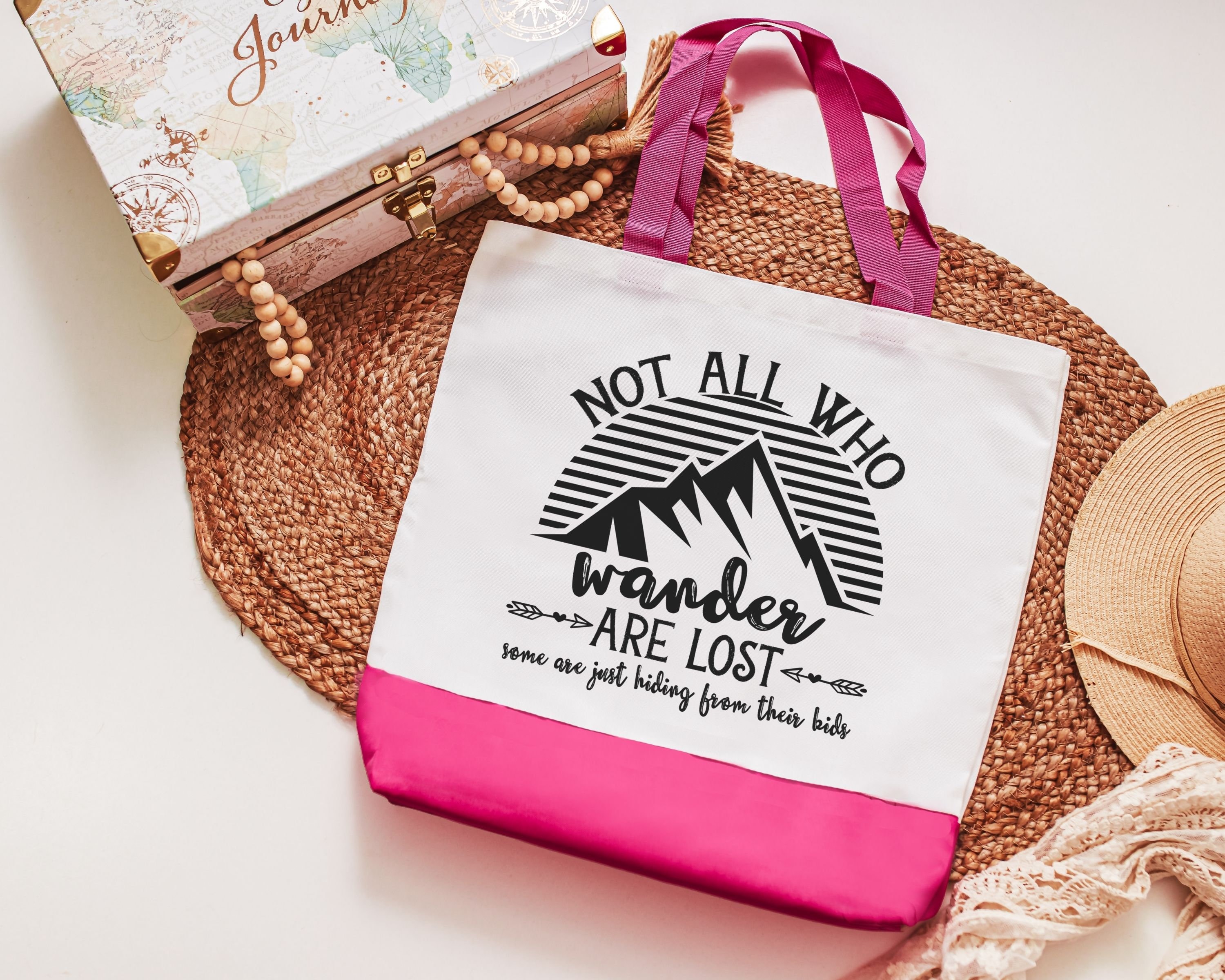 Give the gift of humor this holiday season with our "Not All Who Wander Are Lost, Some Are Just Hiding From Their Kids" Funny Tote Bag. Perfect for women, this reusable shopping tote makes a fun and sassy Christmas gift for new moms or a cute stocking stuffer for your wife. Ideal for expecting moms or any woman who needs a good laugh, this bag is both practical and playful—perfect for everyday use and holiday gifting!