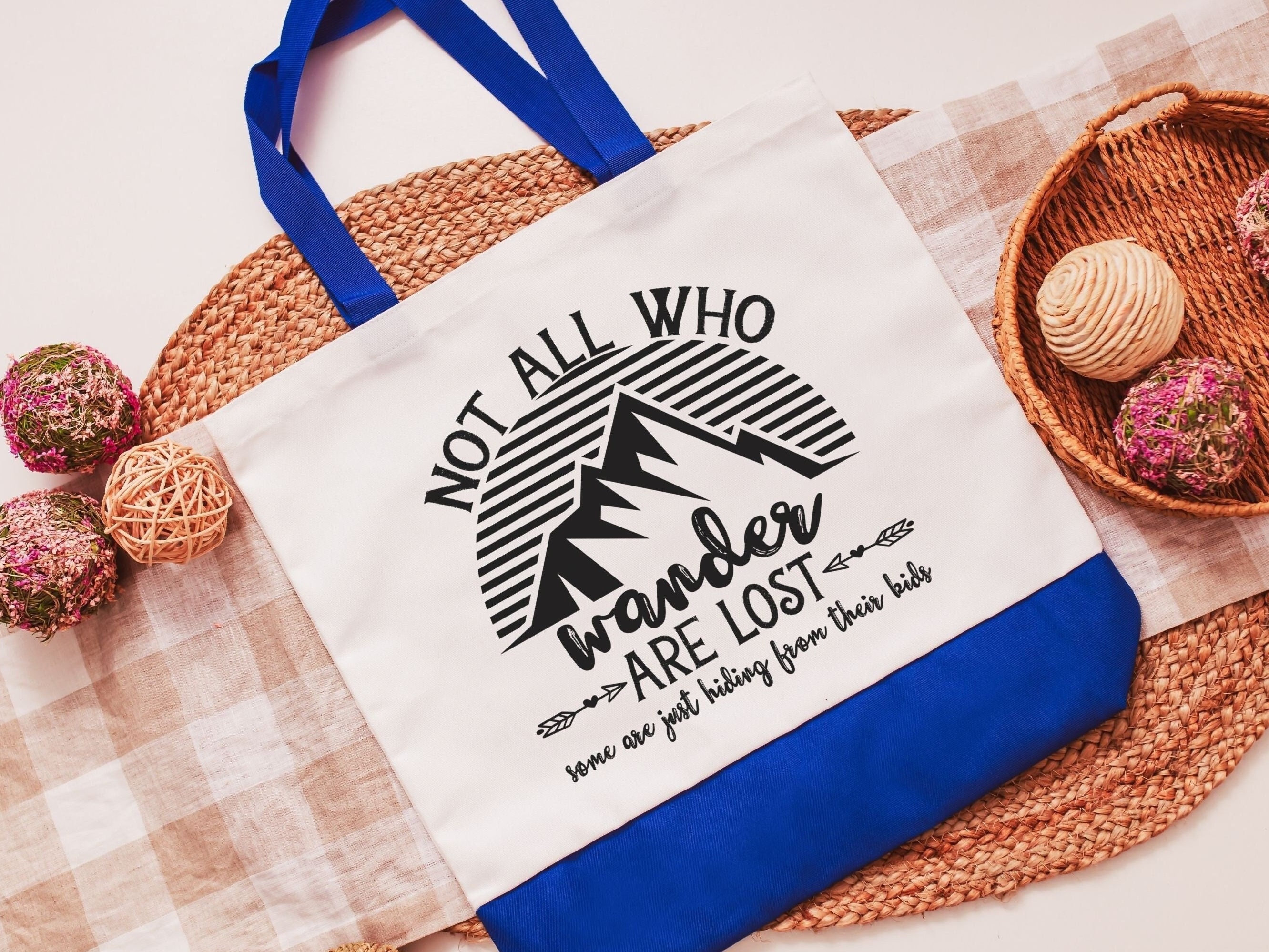 not all who wander are lost funny tote bag for women, sassy Christmas gifts for new moms, cute stocking stuffers for wife, reusable shopping