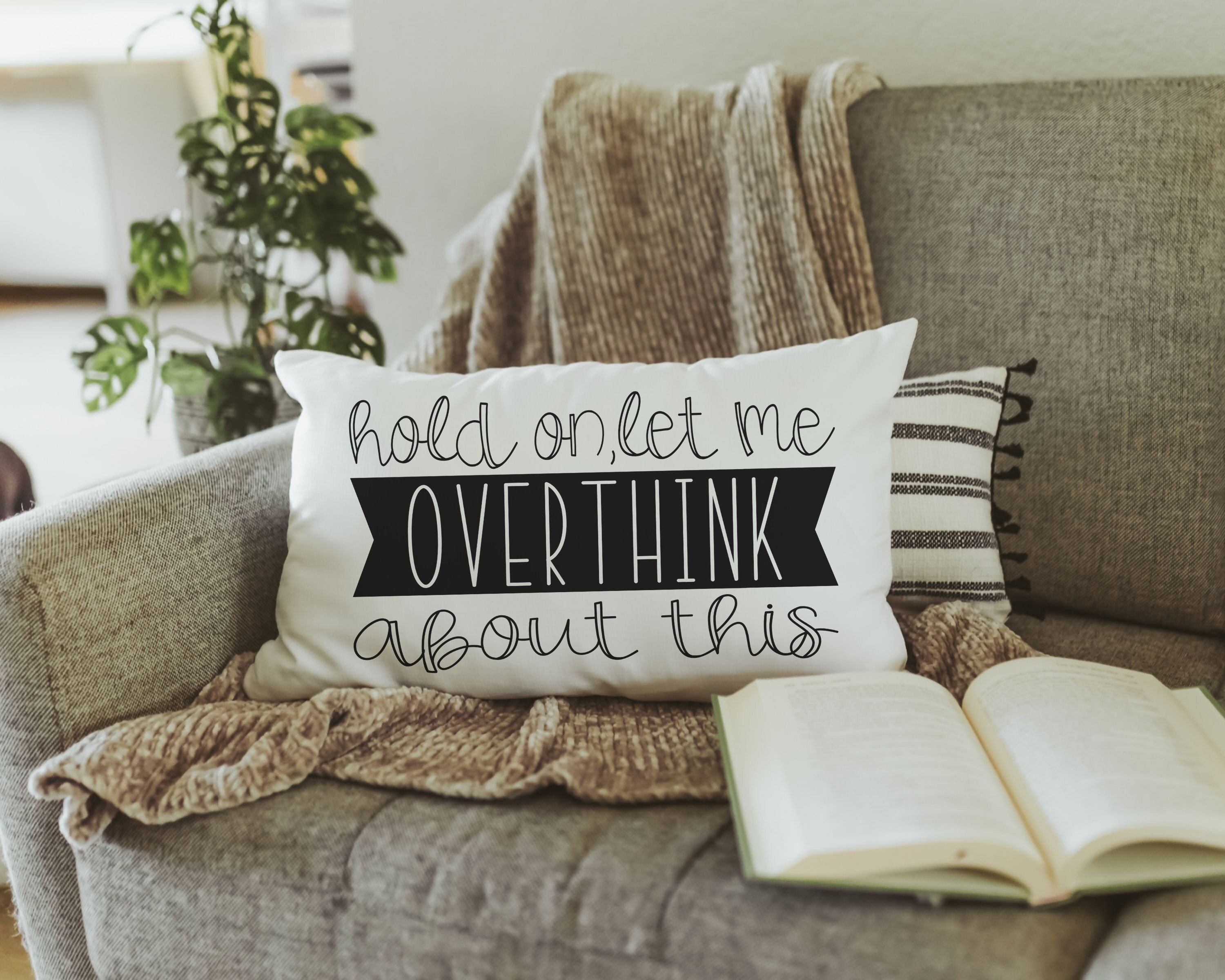 For those who love a bit of humor, the "Hold on, let me overthink this" funny throw pillow is a perfect addition to your couch. Ideal as a funny anxiety gift, it's great for birthday gifts for your best friend or a new apartment gift for her. This 12 x 20 pillow brings a touch of fun to any space.