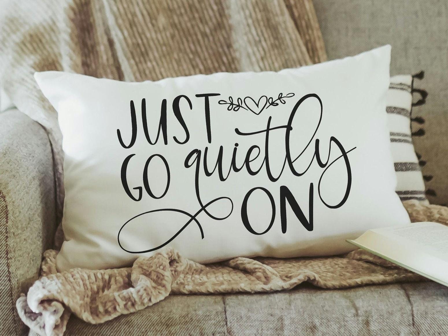 Bring calm and confidence to any space with our "Just Go Quietly" Positive Affirmation Lumbar Throw Pillow—a perfect addition for a college dorm or cozy couch setup. This pillow offers minimalist inspiration and subtle encouragement, making it an ideal dorm decor choice for college girls or a thoughtful gift for a best friend. Its neutral tones blend effortlessly with any decor style, making it a chic accent for those focused on peaceful vibes and positive reminders.