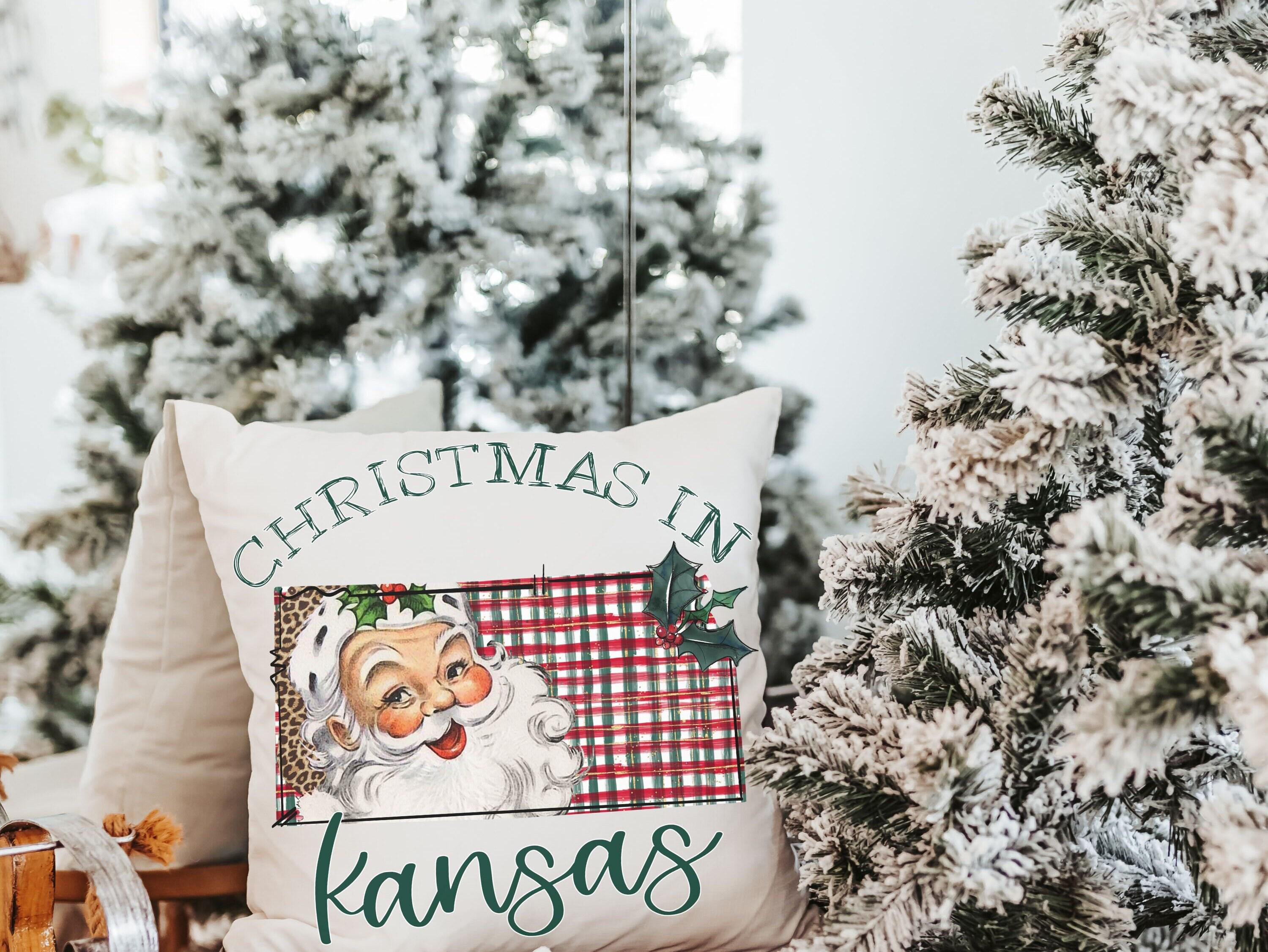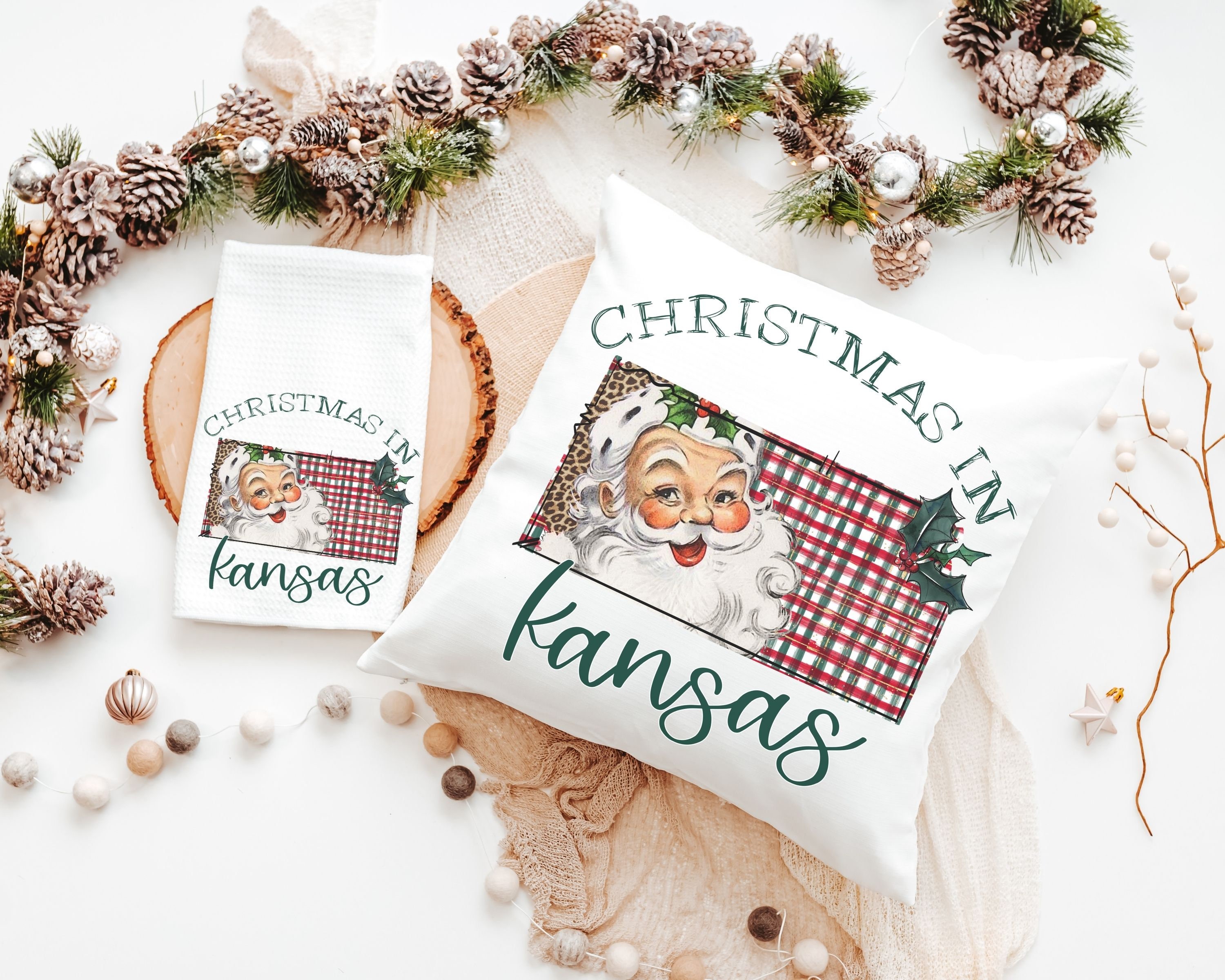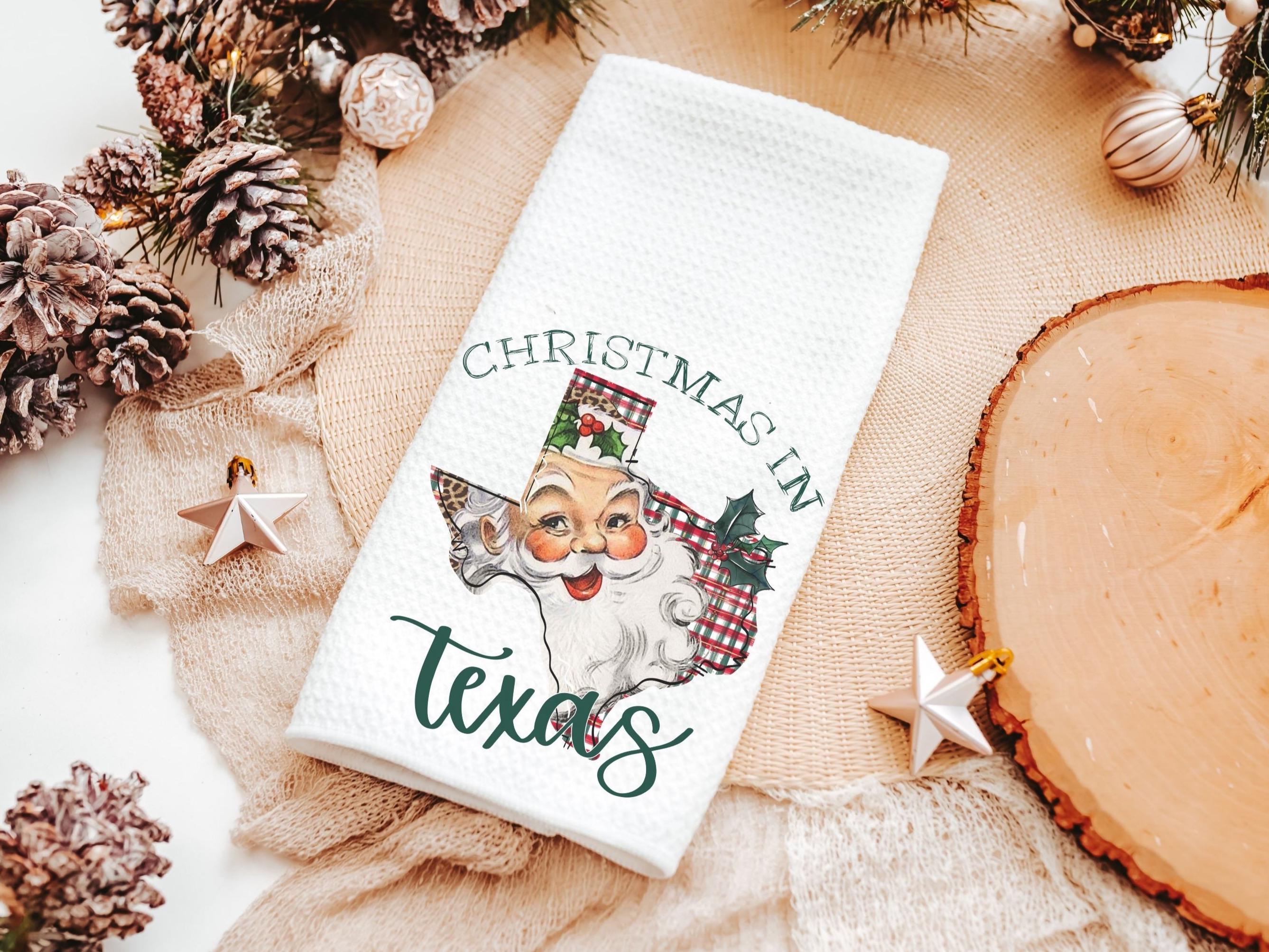 Santa throw pillows for couch, Texas kitchen towels for winter, holiday hosting decor home decor gift, Texas Christmas gifts for neighbors