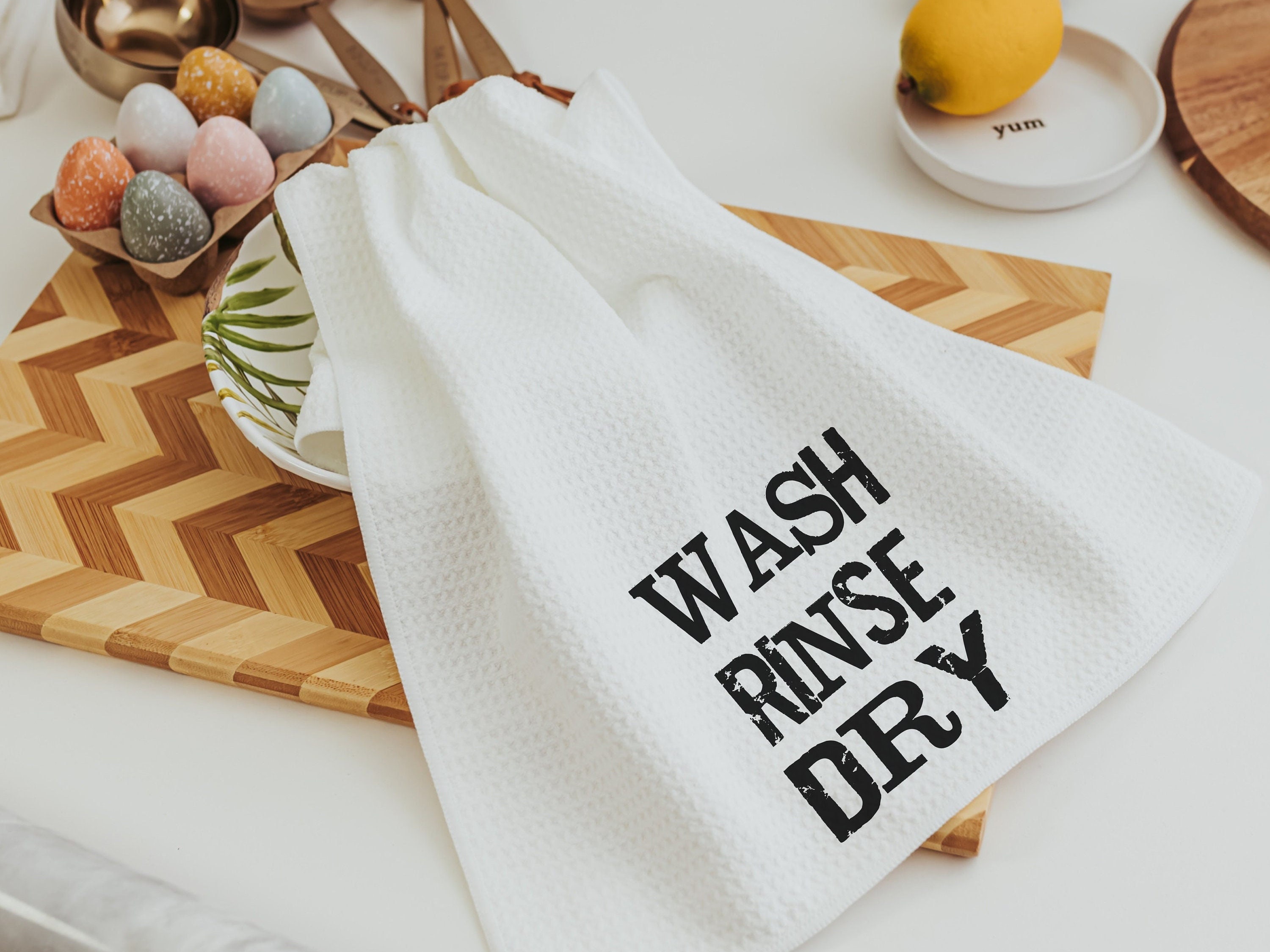 Make dishwashing fun with our "Wash Rinse Dry" kitchen towels. They're the perfect new apartment gift, adding style and humor to any kitchen. These trendy black and white hand towels are also a fun bridal shower gift, perfect for the newlyweds. Add a touch of personality to any kitchen with these kitchen towels!