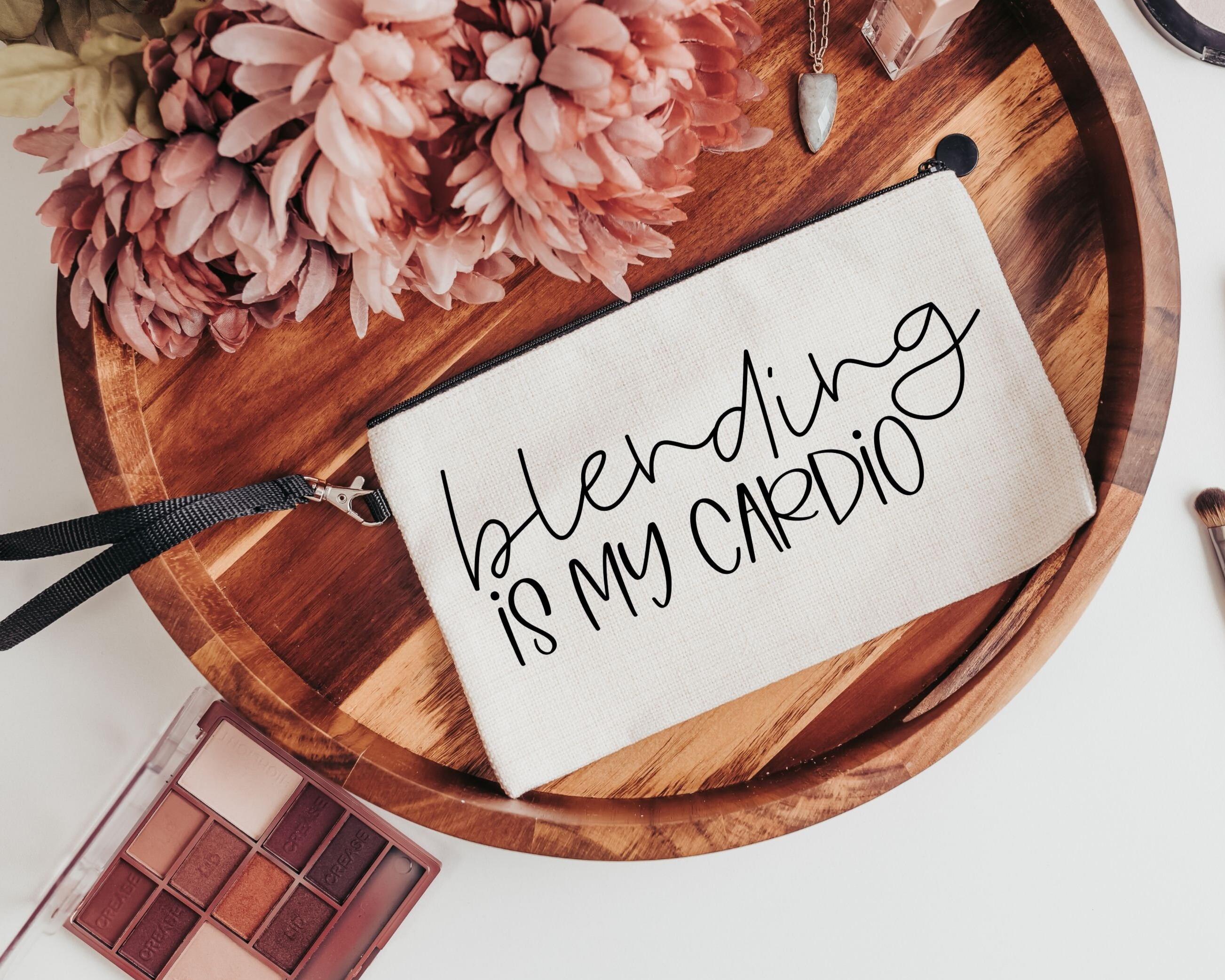 Get your makeup routine in shape with this "Blending is my cardio" funny makeup bag. Perfect for makeup artists, it's a fun addition to any beauty routine. Also makes a great gift for teenage girls.