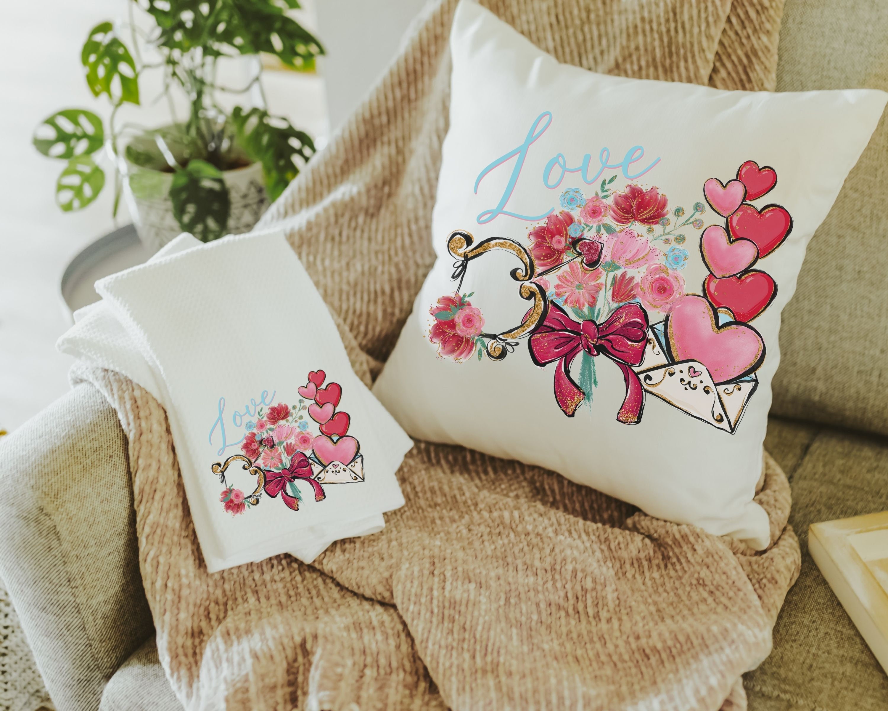 Add a romantic touch to your home with a Valentine's Day throw pillow and matching towel, featuring Cupid's arrow for a sweet and stylish accent. Perfect for the couch or kitchen, these pieces make a thoughtful gift for your wife, girlfriend, or best friend. Whether you're celebrating Valentine's Day or Galentine's Day they are a sweet addition to any space.