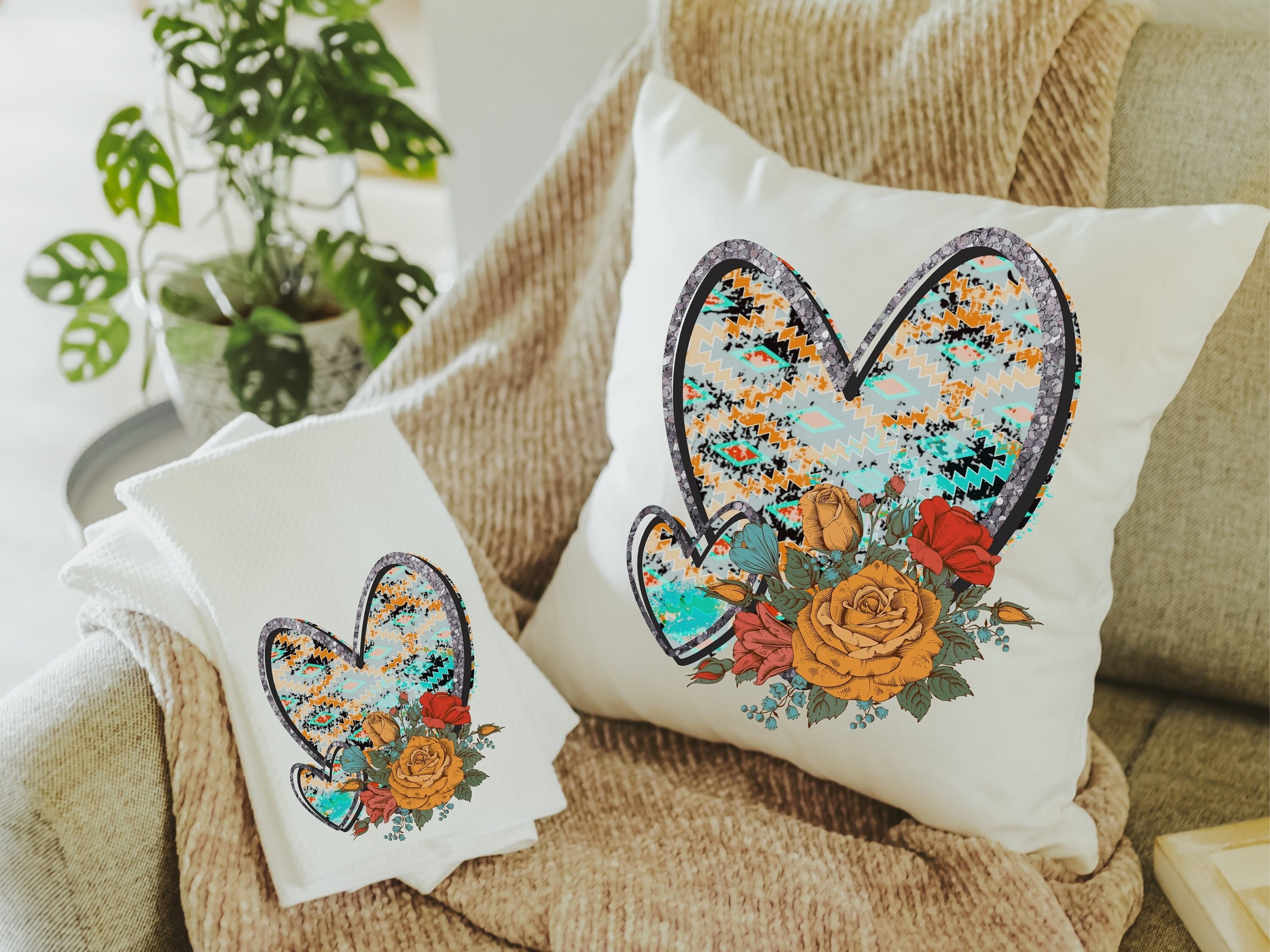 This gorgeous turquoise Aztec throw pillow and towel set is the perfect southwestern decor for any home. It also makes a unique wedding gift for a couple or a great new home gift. Show your love with this stylish and practical gifts for your girlfriend.