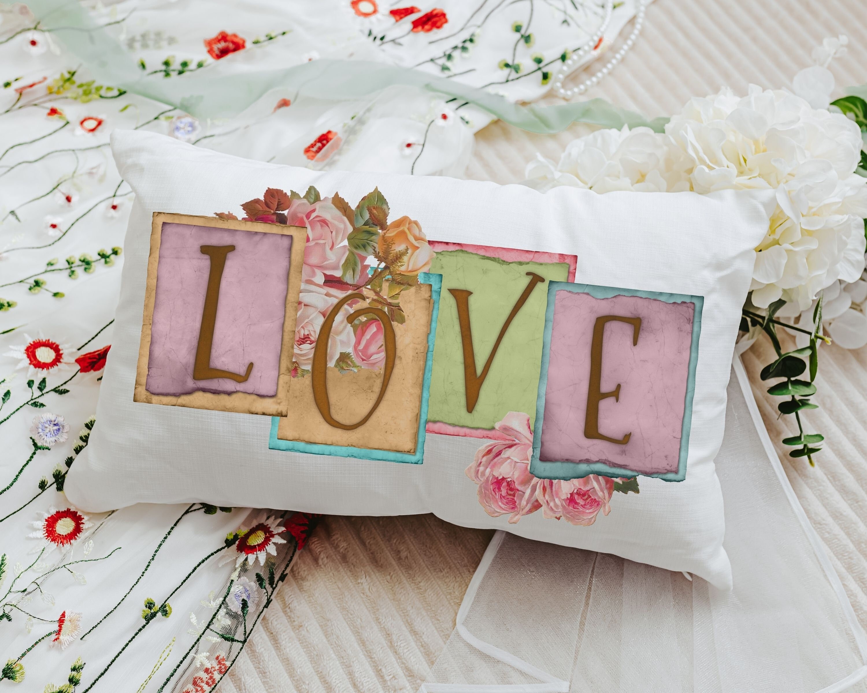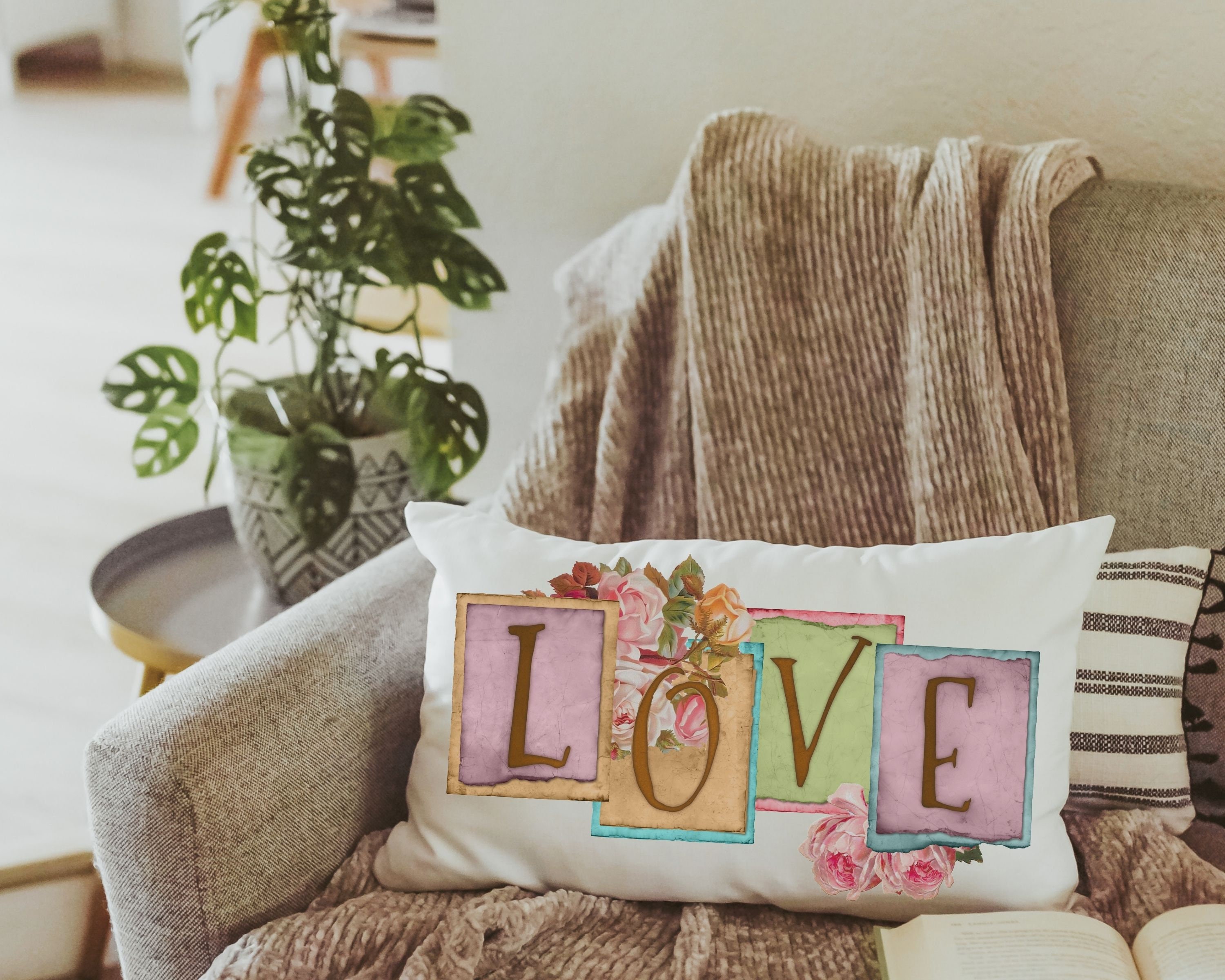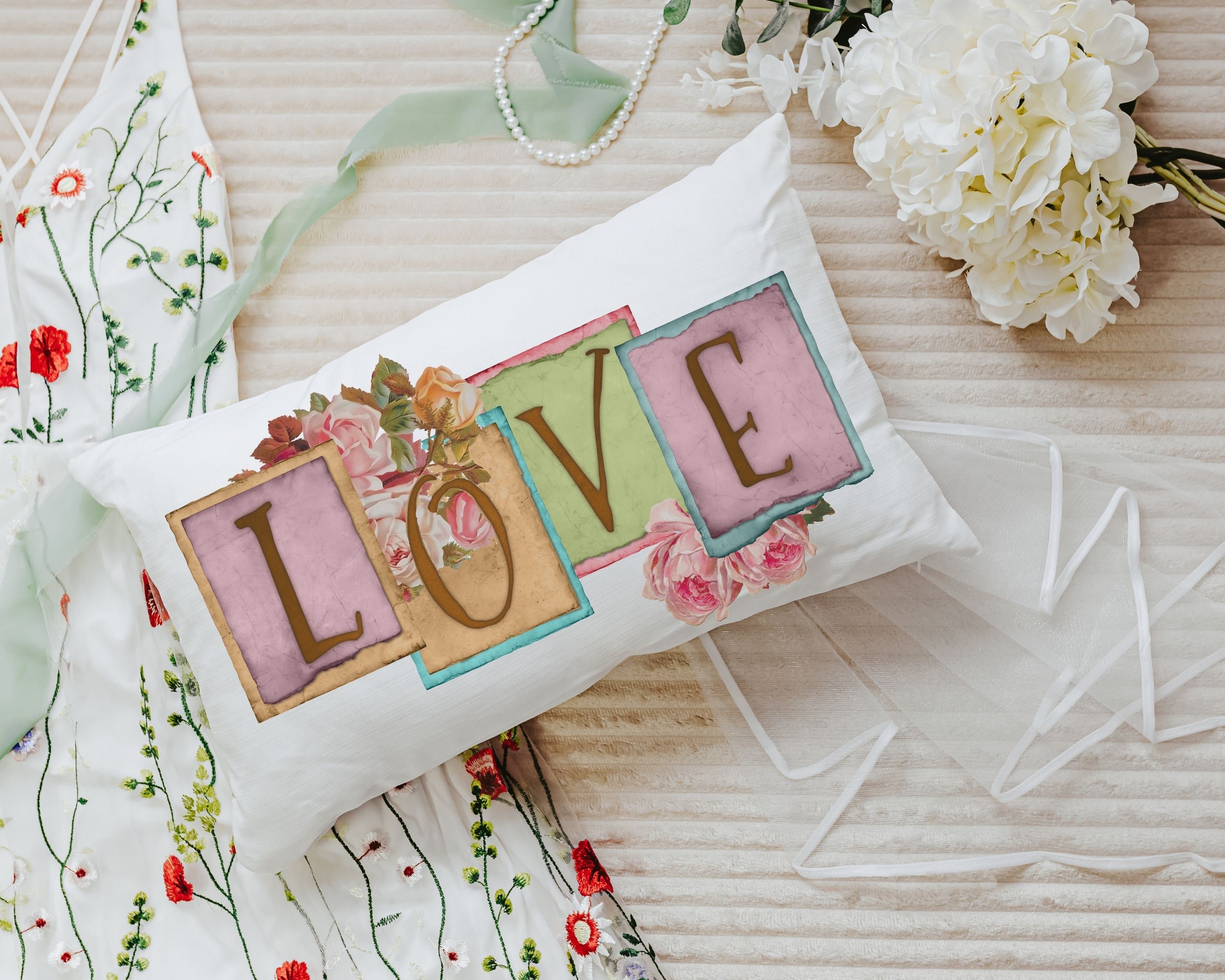 This vintage-inspired "Love" throw pillow makes a unique anniversary gift for Mom. Enjoy the beauty of bloomcore as a charming room decor piece. It's also ideal as a gift for a wife-to-be or a fiance for their engagement, this 12 x 20 throw pillow adds a touch of romance to any space.