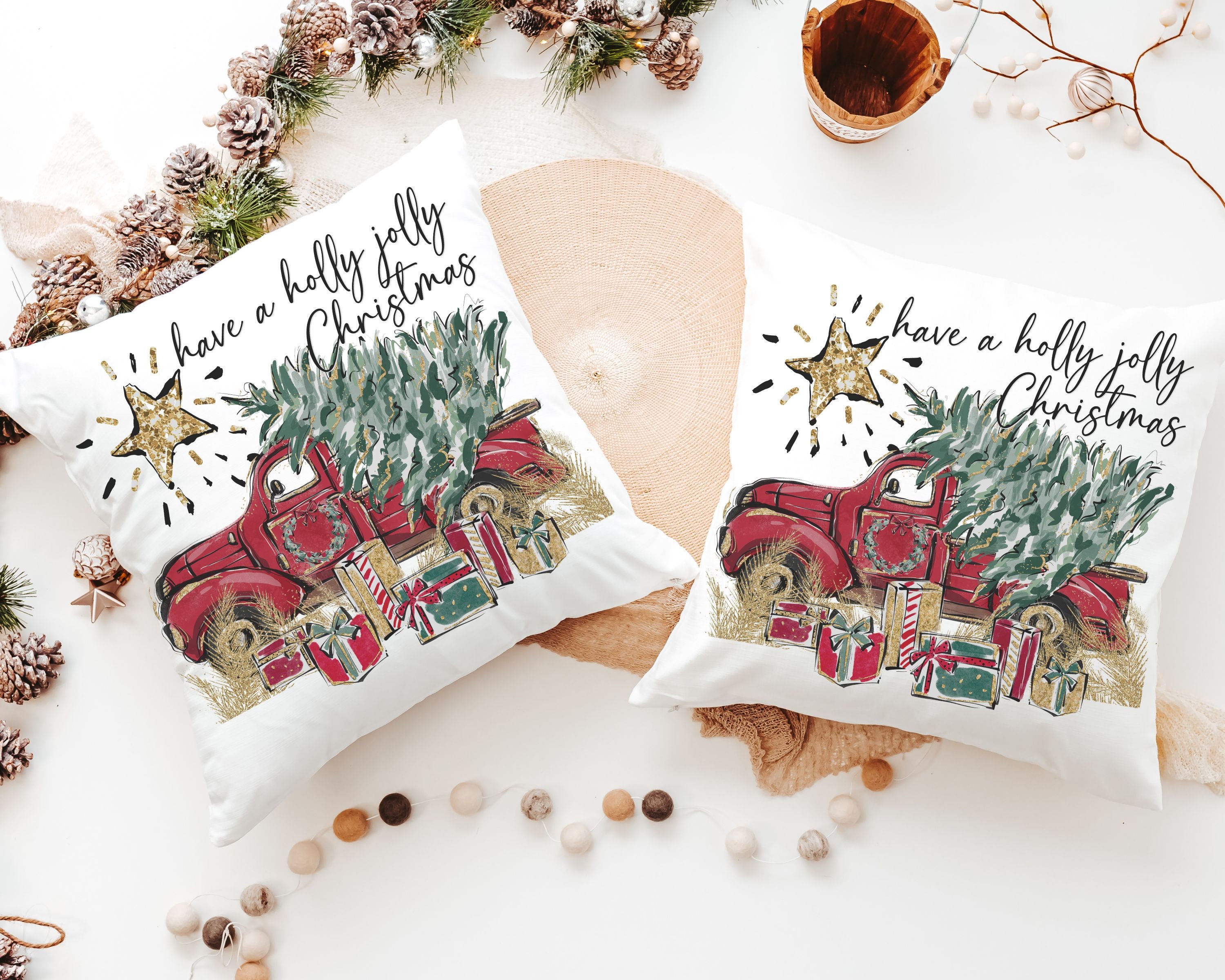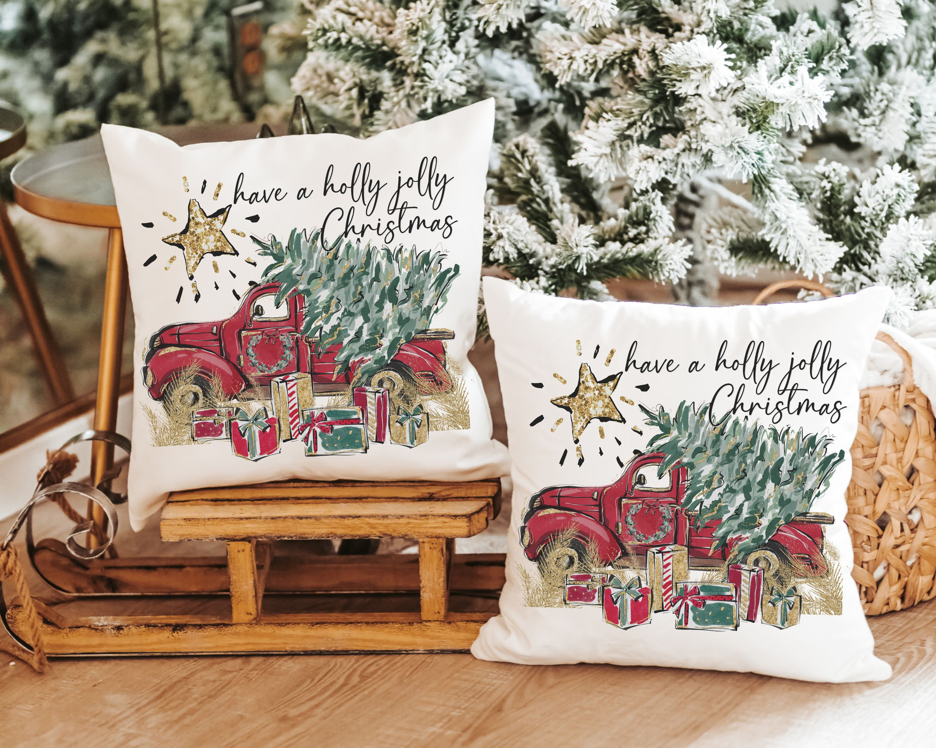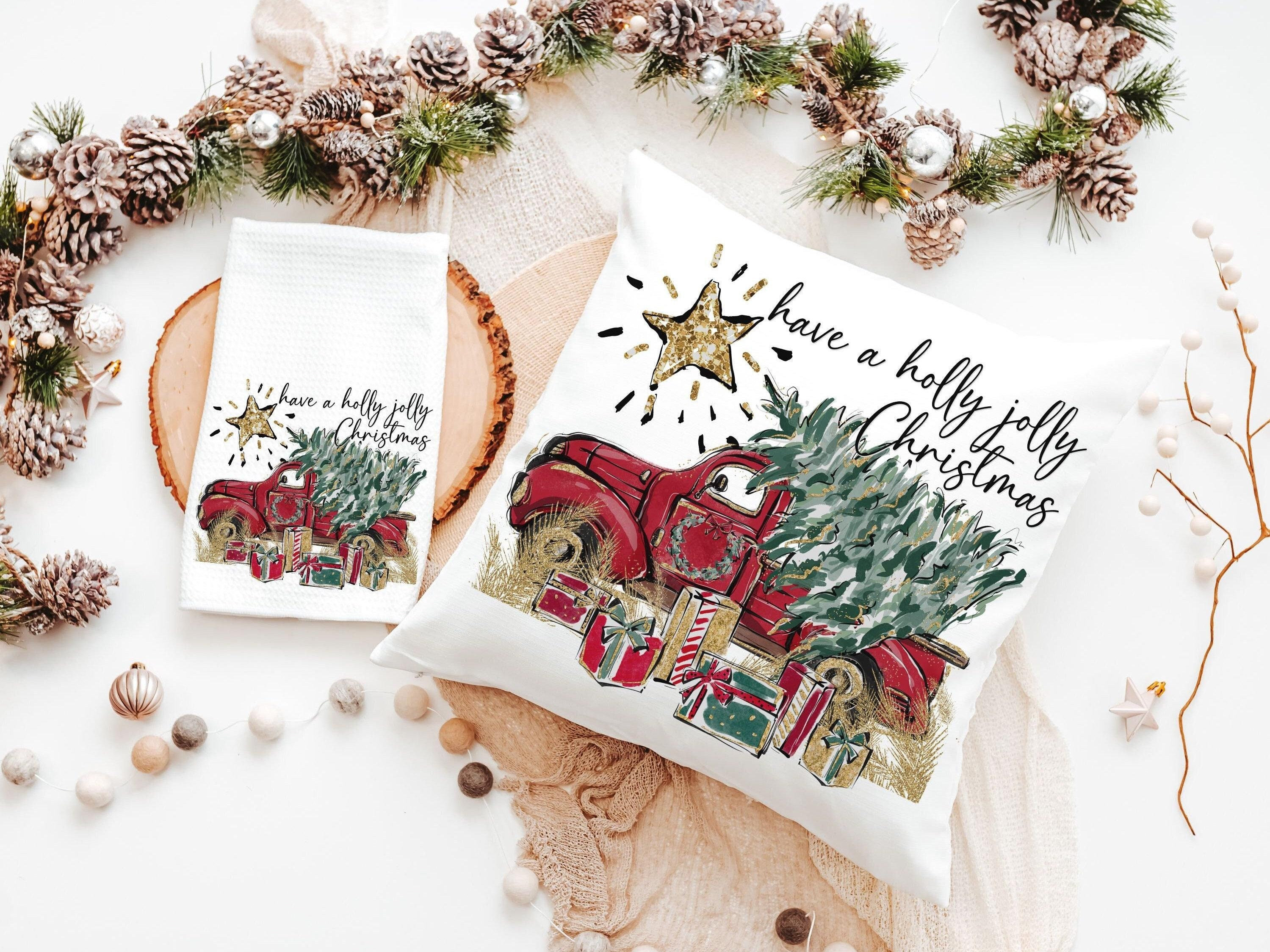 Celebrate the season with our Have a Holly Jolly Christmas Throw Pillows and matching towels, perfect for adding festive cheer to your home. These red truck Christmas pillow and towels are ideal as thoughtful Christmas gifts for new homeowners or as fun presents for friends. Whether you're decorating the couch with the throw pillow or gifting these towels, they also make great secret Santa gifts and hostess gifts for women. Bring holiday joy to any space!