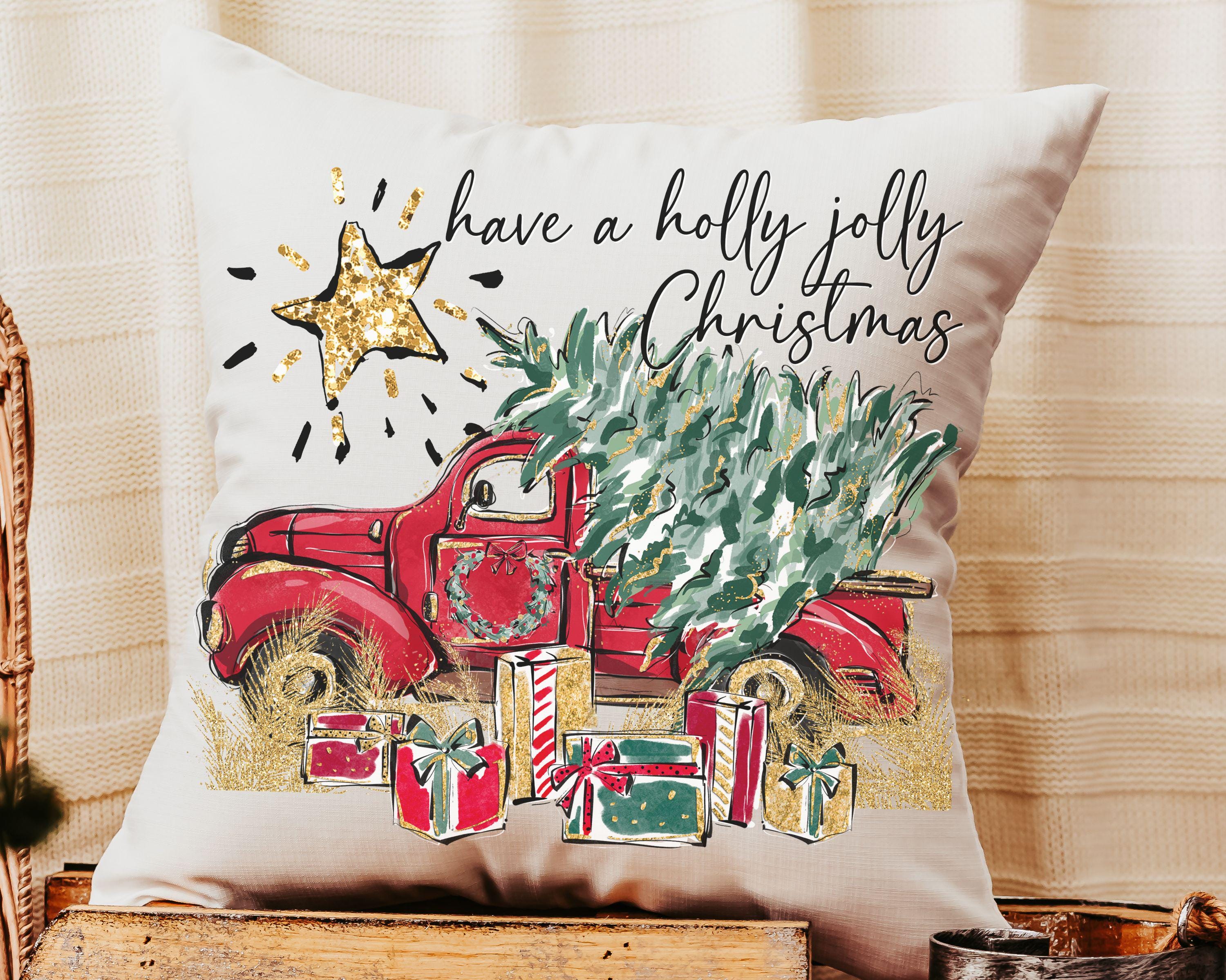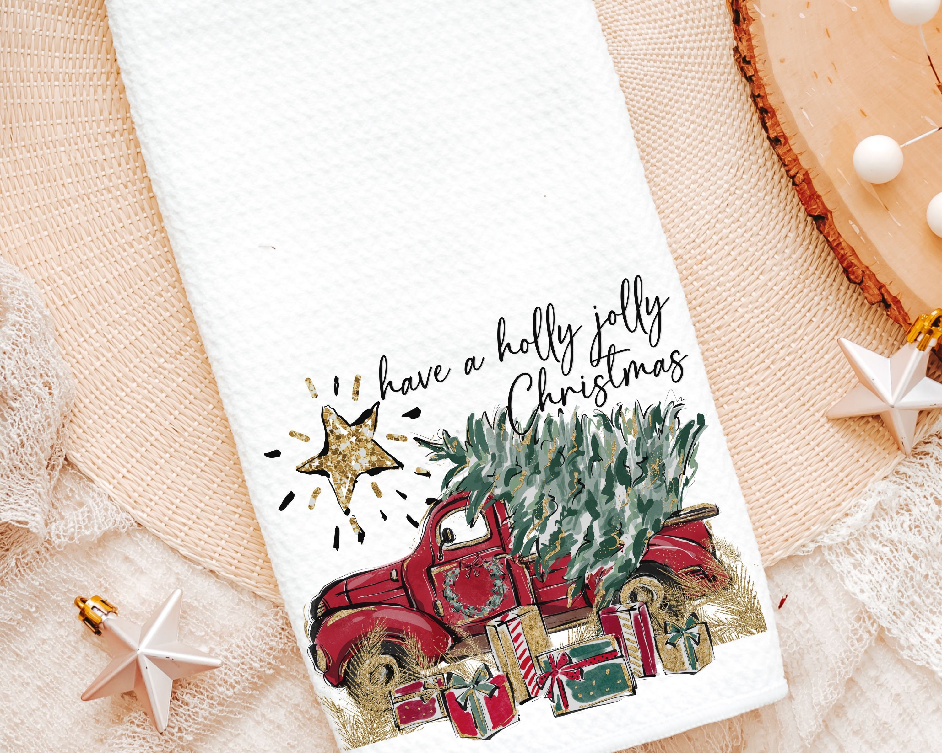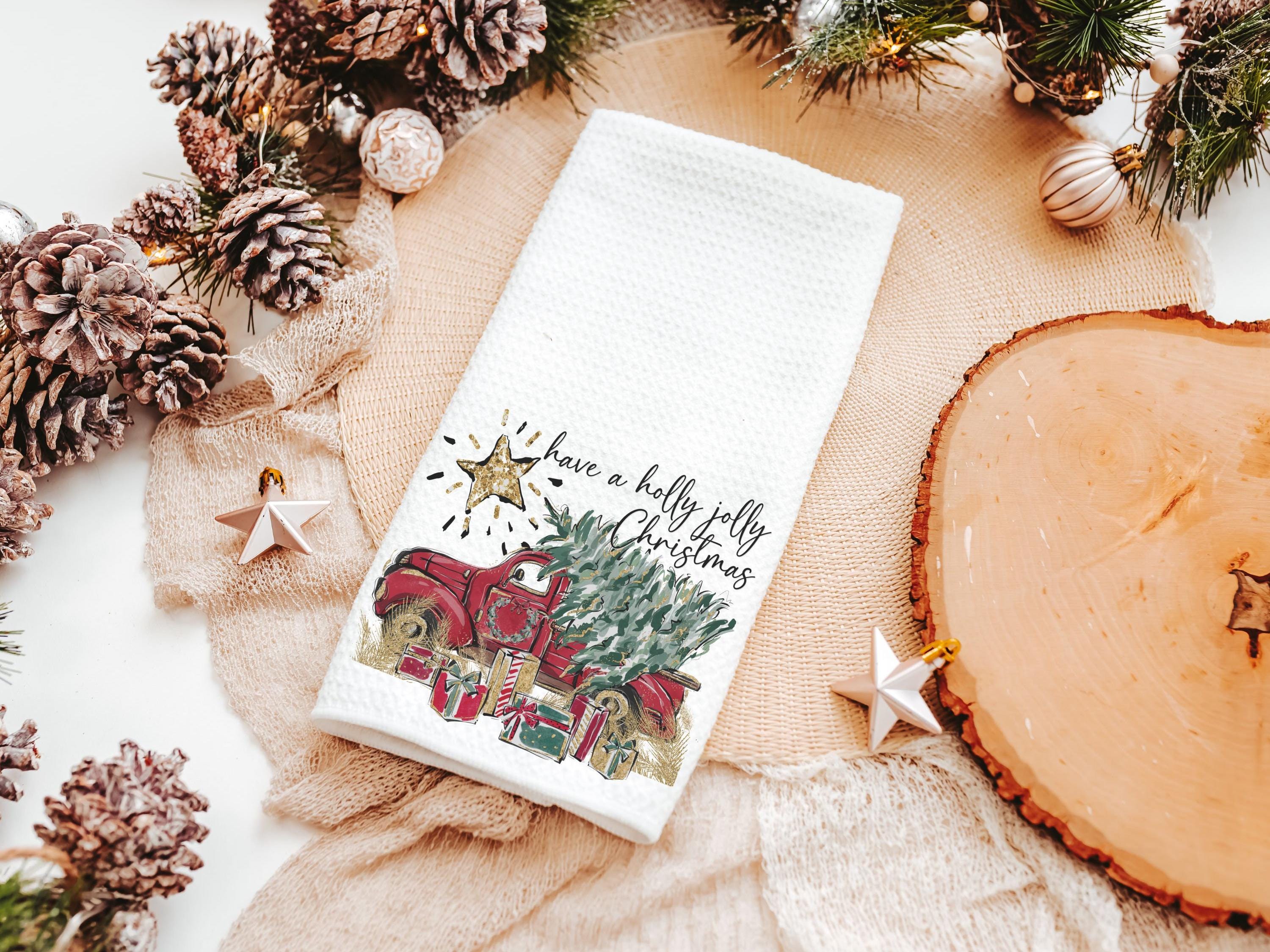 Celebrate the season with our Have a Holly Jolly Christmas Throw Pillows and matching towels, perfect for adding festive cheer to your home. These red truck Christmas pillow and towels are ideal as thoughtful Christmas gifts for new homeowners or as fun presents for friends. Whether you're decorating the couch with the throw pillow or gifting these towels, they also make great secret Santa gifts and hostess gifts for women. Bring holiday joy to any space!