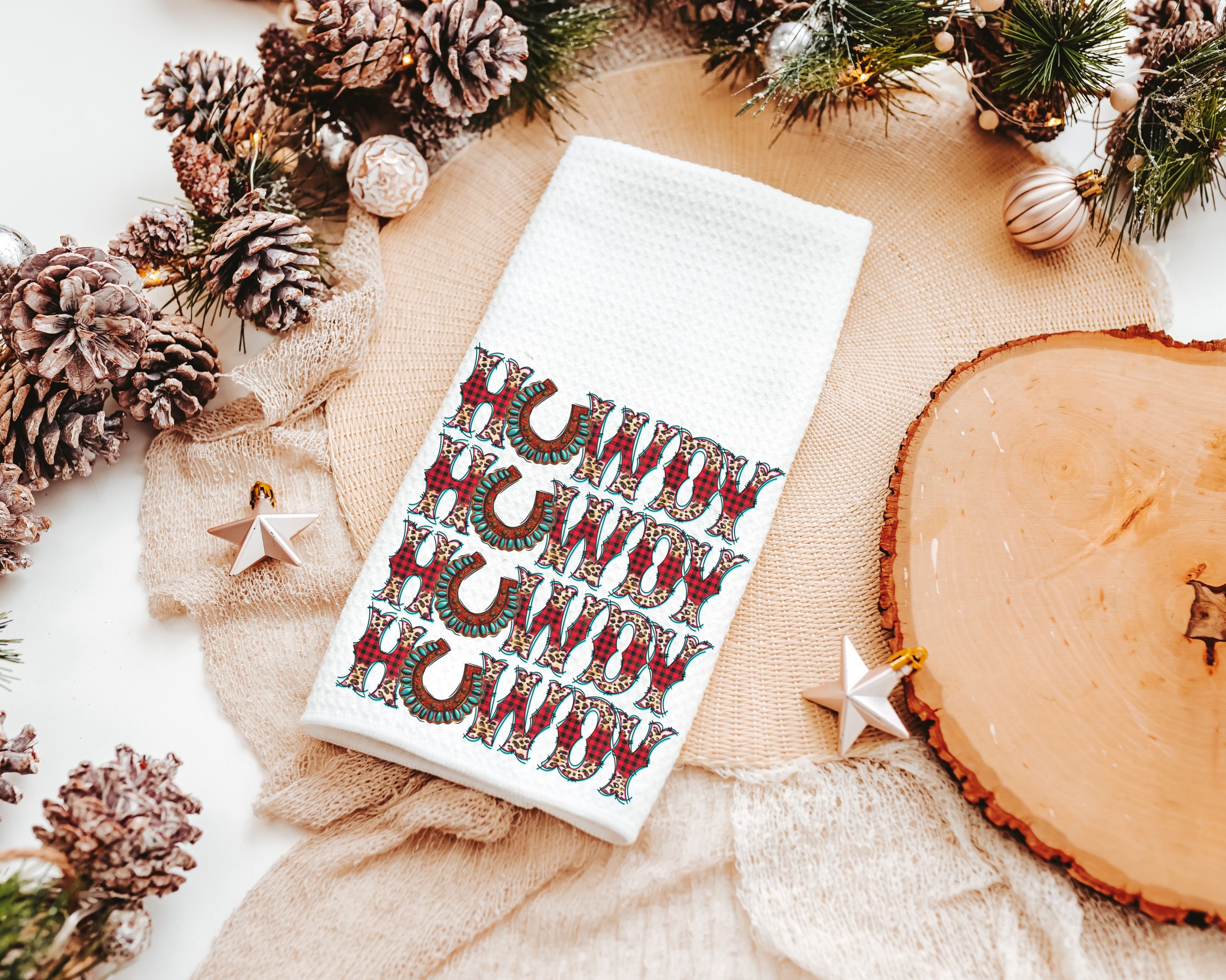 Add a touch of Western charm to your holiday decor with our "Howdy Christmas" throw pillow and matching country kitchen towels. Perfect for any sofa or kitchen, this set brings a unique blend of traditional buffalo plaid and trendy leopard print, embodying the spirit of a Western Christmas. Each piece is designed to add a cozy, country feel to your home, making them fantastic hostess gifts or trendy additions to your own festive decorations. Available separately or as a complete set, they are an ideal way to say 'Merry Christmas' with a country twist!