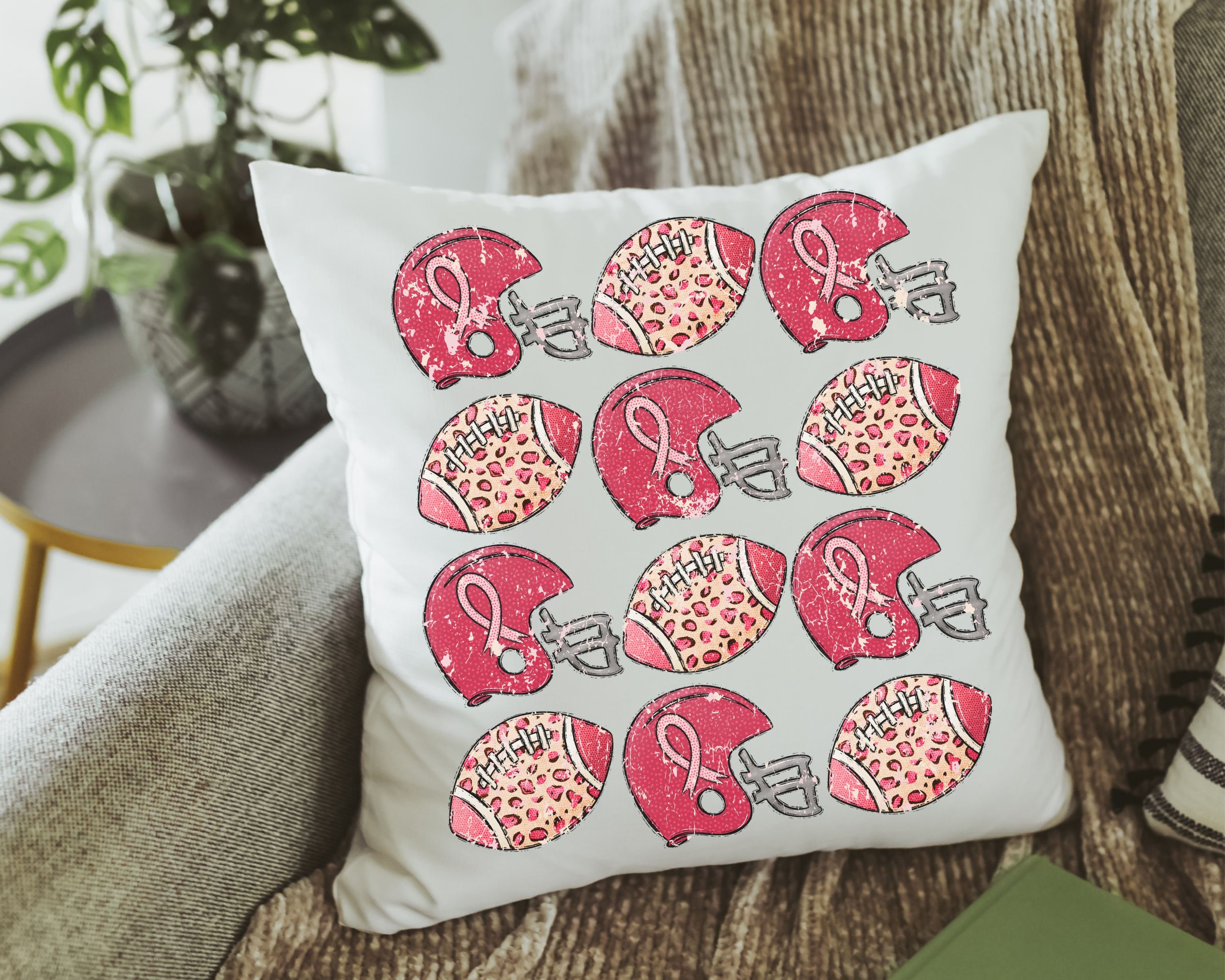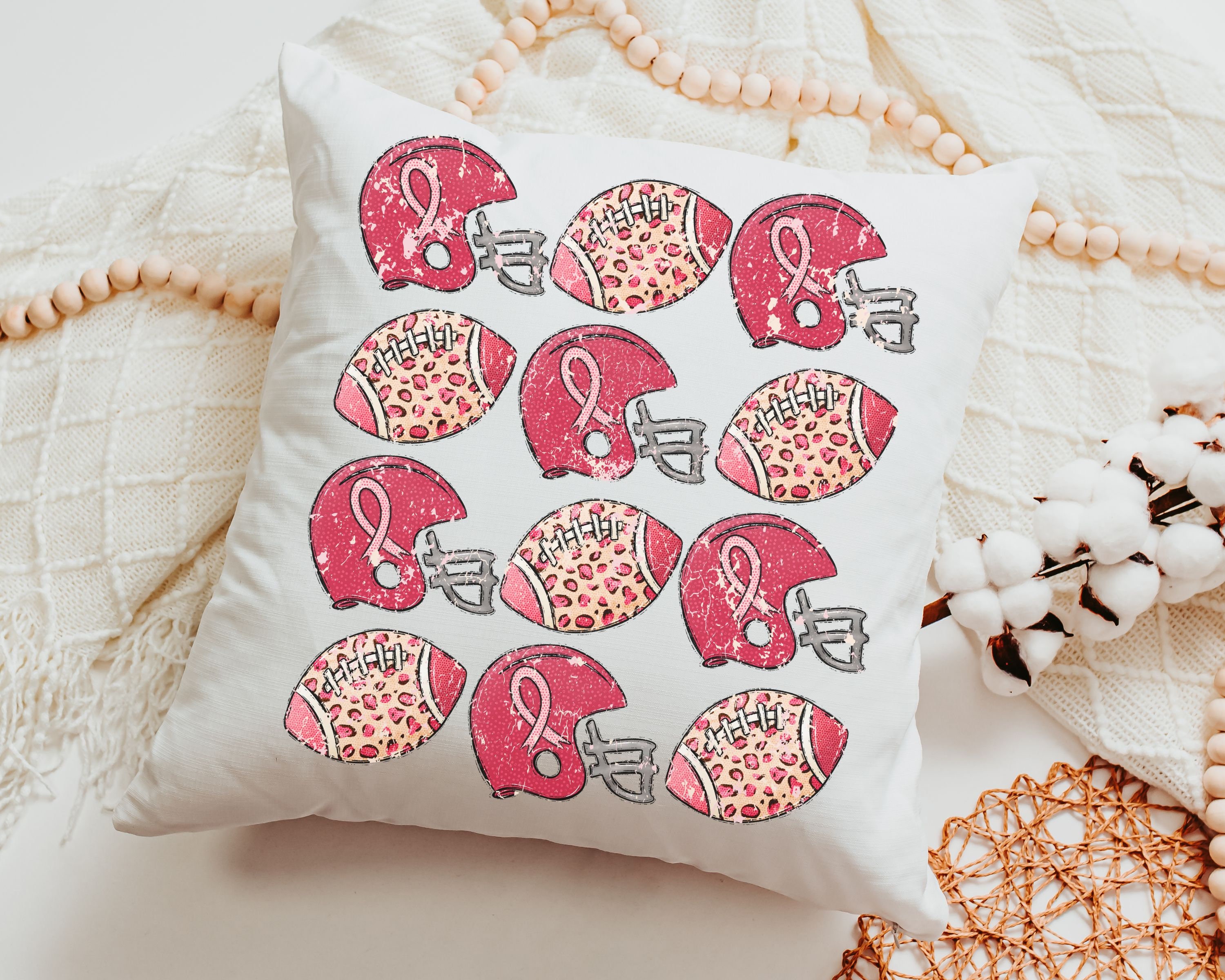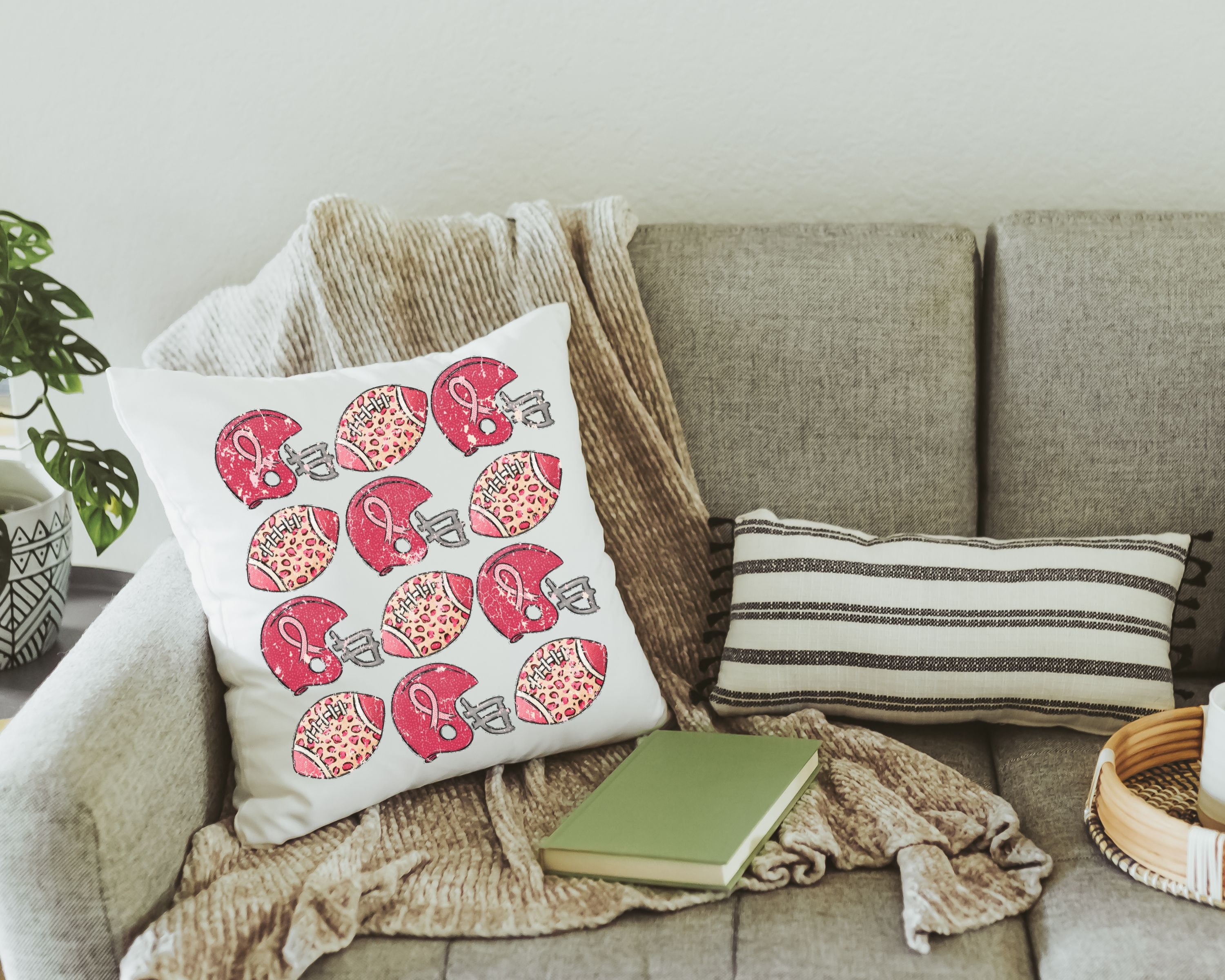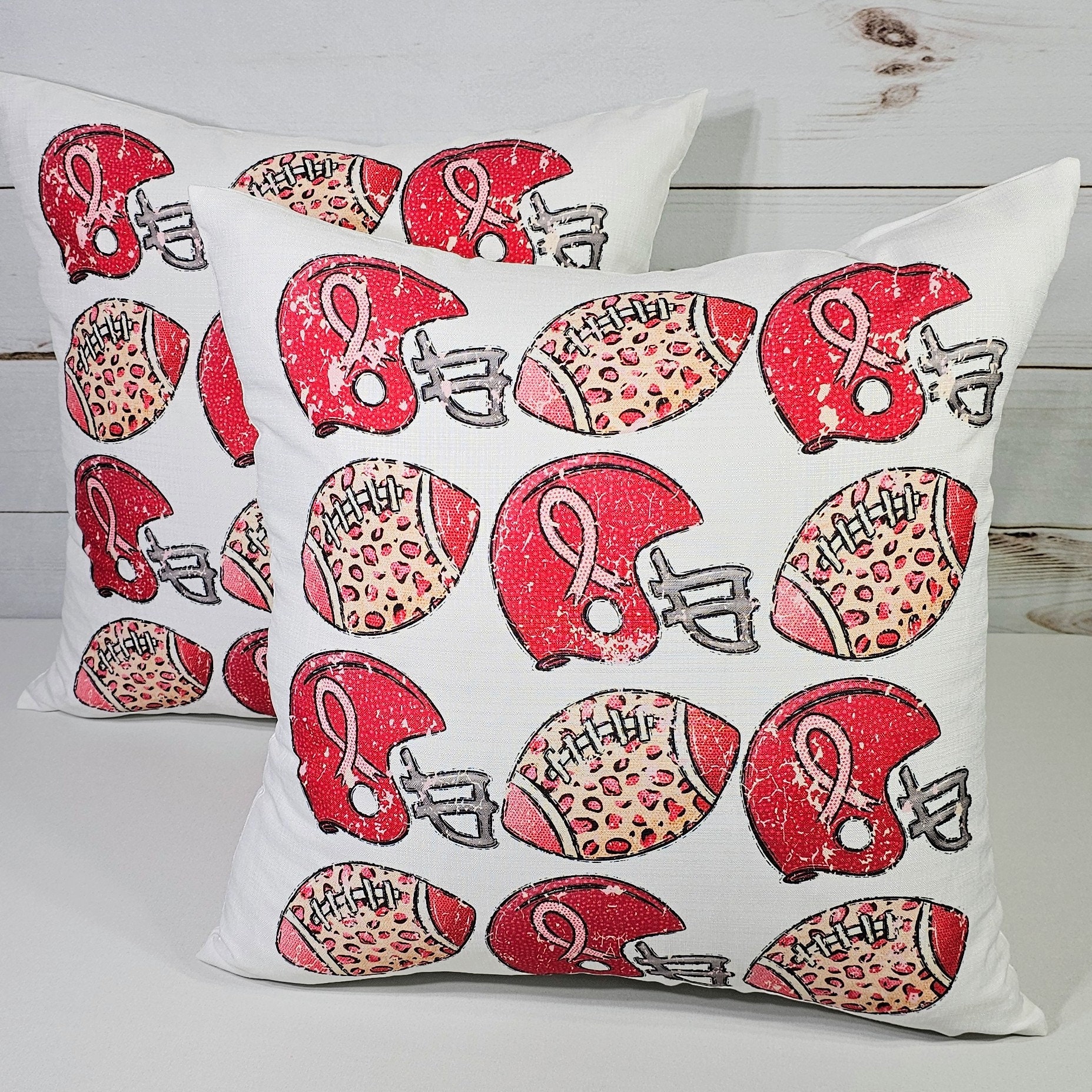 powderpuff football throw pillow for sofa, football mom gift, pink football decorations, breast cancer survivor gift, football gifts for Mom