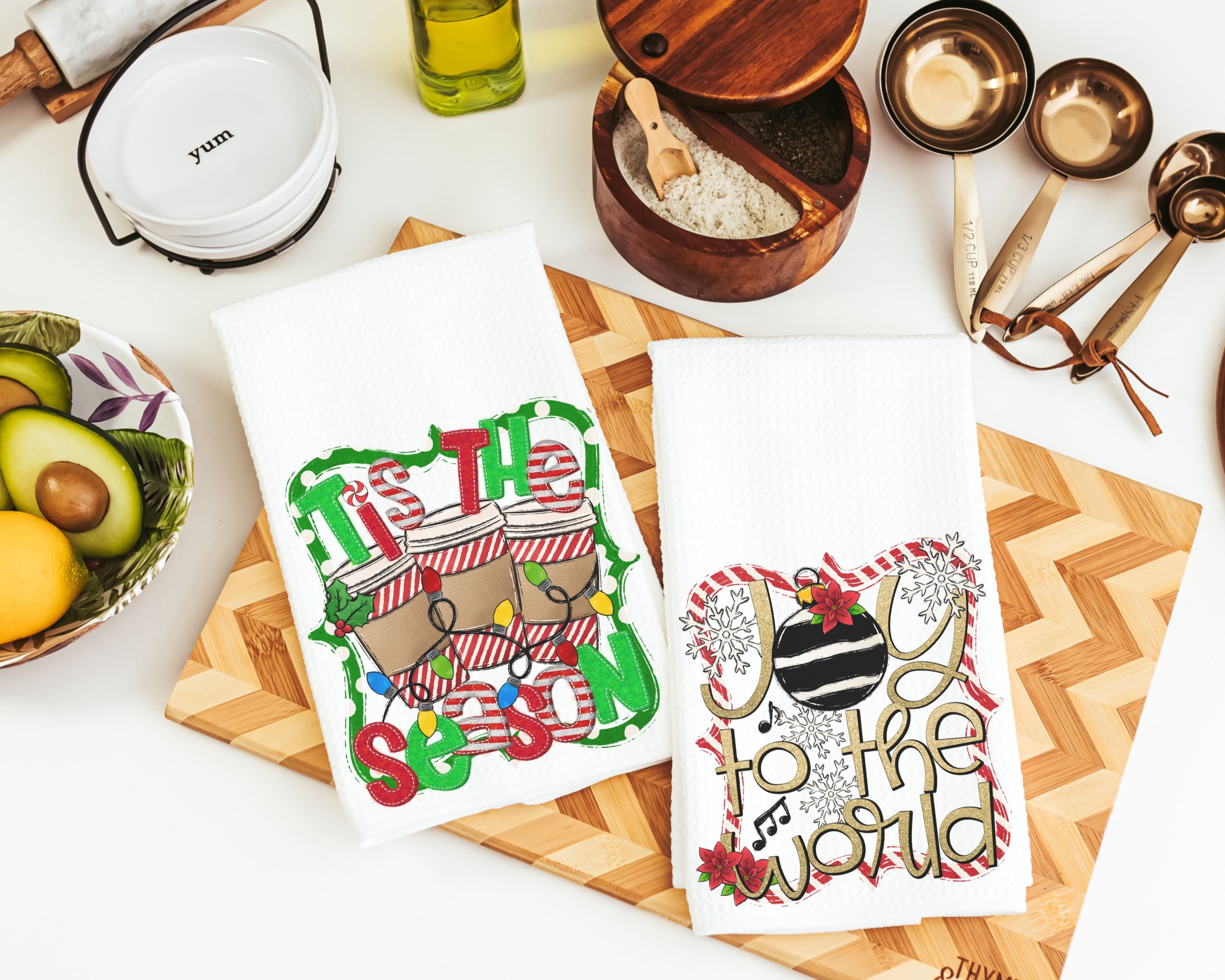 Add a touch of holiday cheer to your kitchen with our "Joy to the World" and "Tis the Season" Christmas kitchen towels. These towels are not only practical but also perfect for decorating your Christmas coffee bar. Purchase them separately or together as a set, and let the holiday spirit shine in your home.