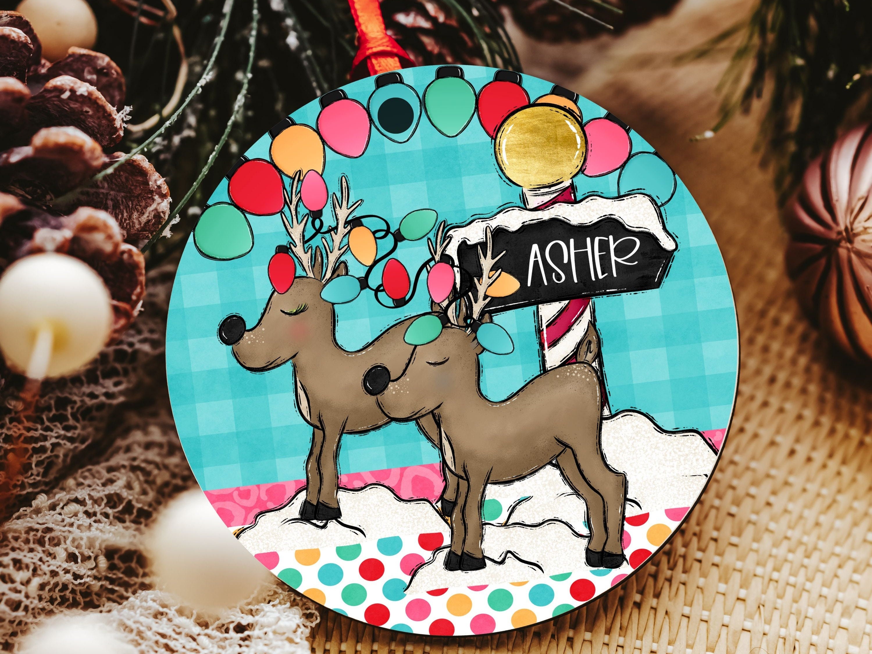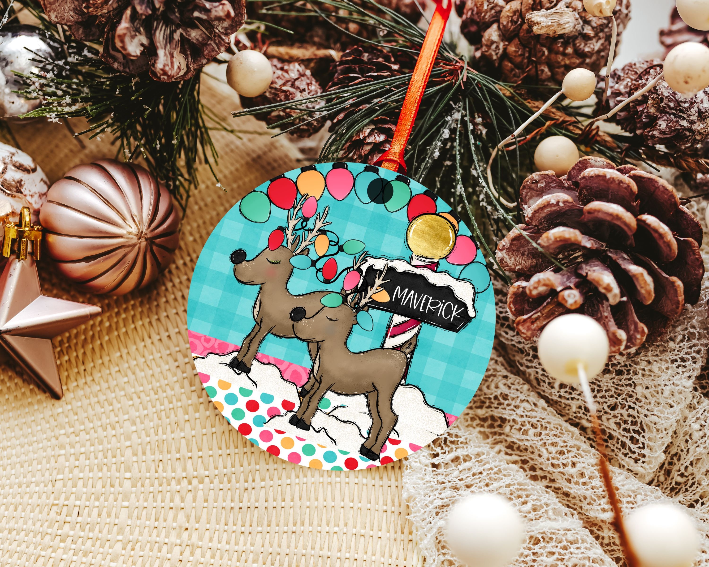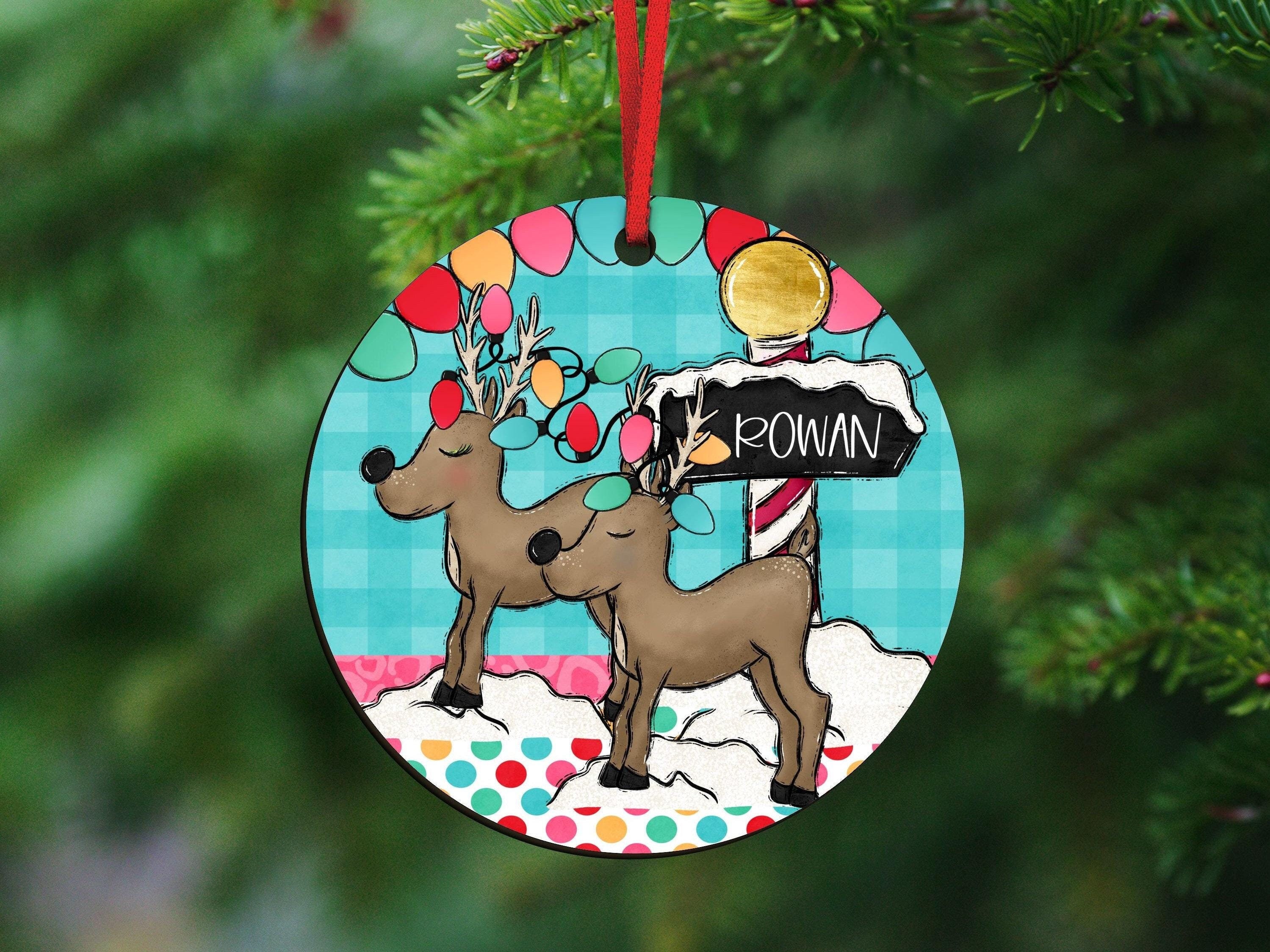 personalized reindeer Christmas ornament 2025, cute reindeer stocking tags with name, stocking stuffers for toddlers, kids name ornament