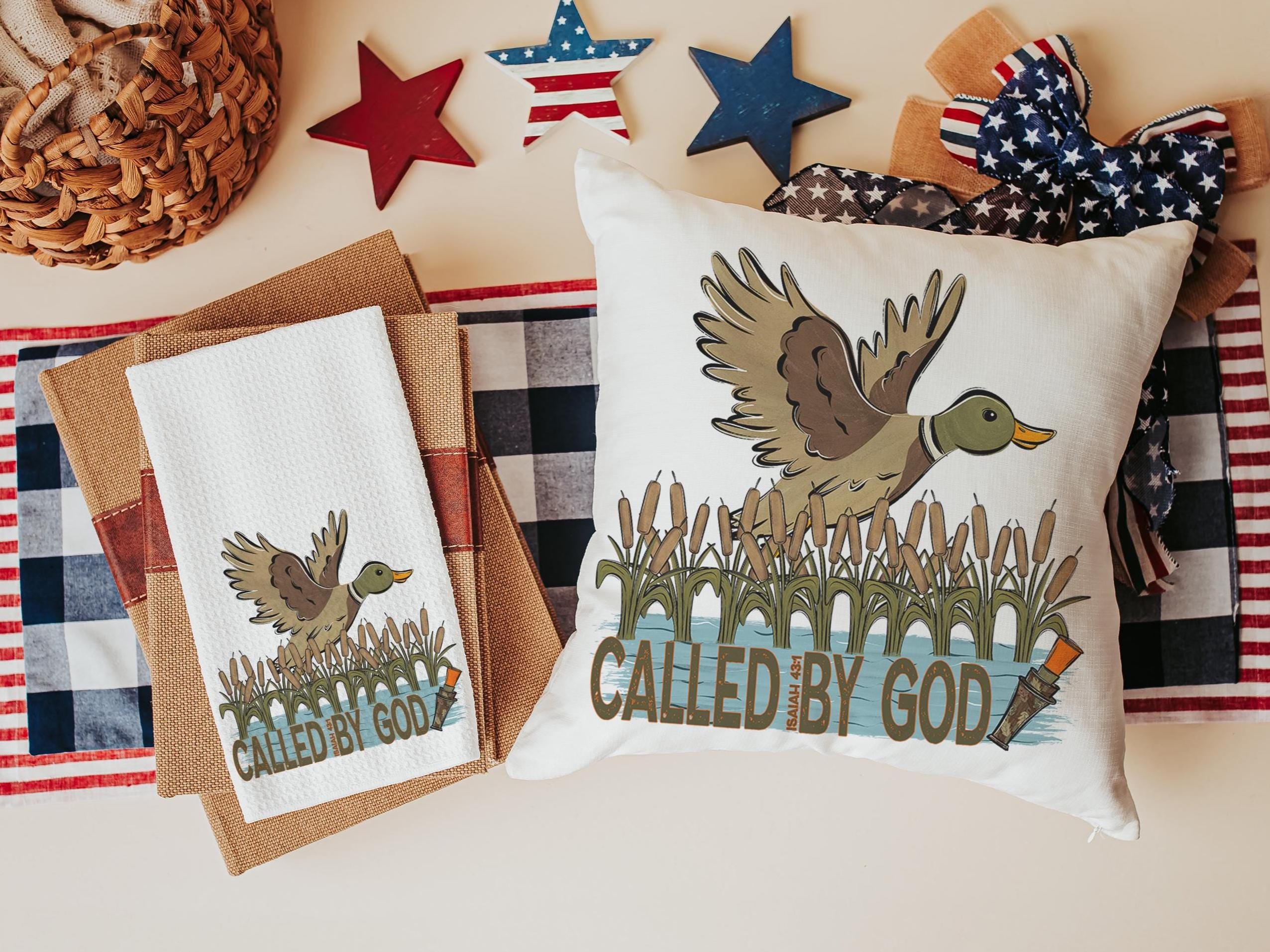Inspire faith with Called by God Isaiah 43:1 decorative pillows and matching towels — a meaningful addition to any home. Perfect for the bed or couch, these duck-themed designs make beautiful Christian gifts for men or uplifting kitchen accents for everyday encouragement. Available to purchase as pillows or towels, sold separately or as sets.