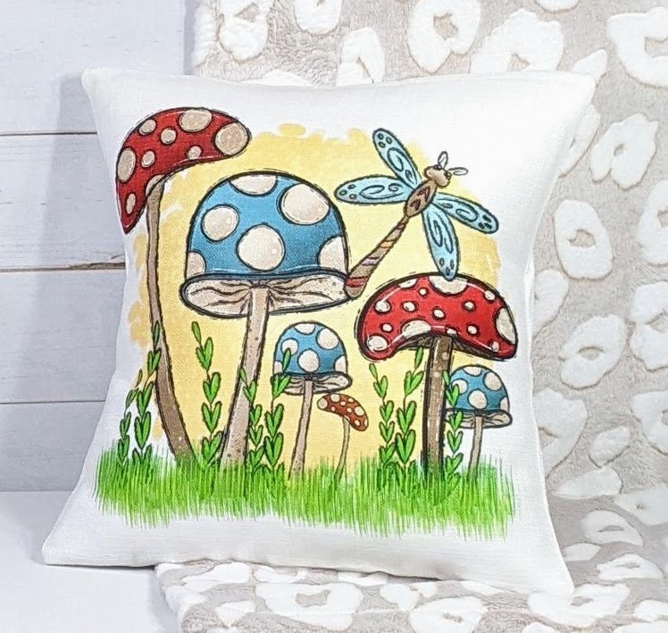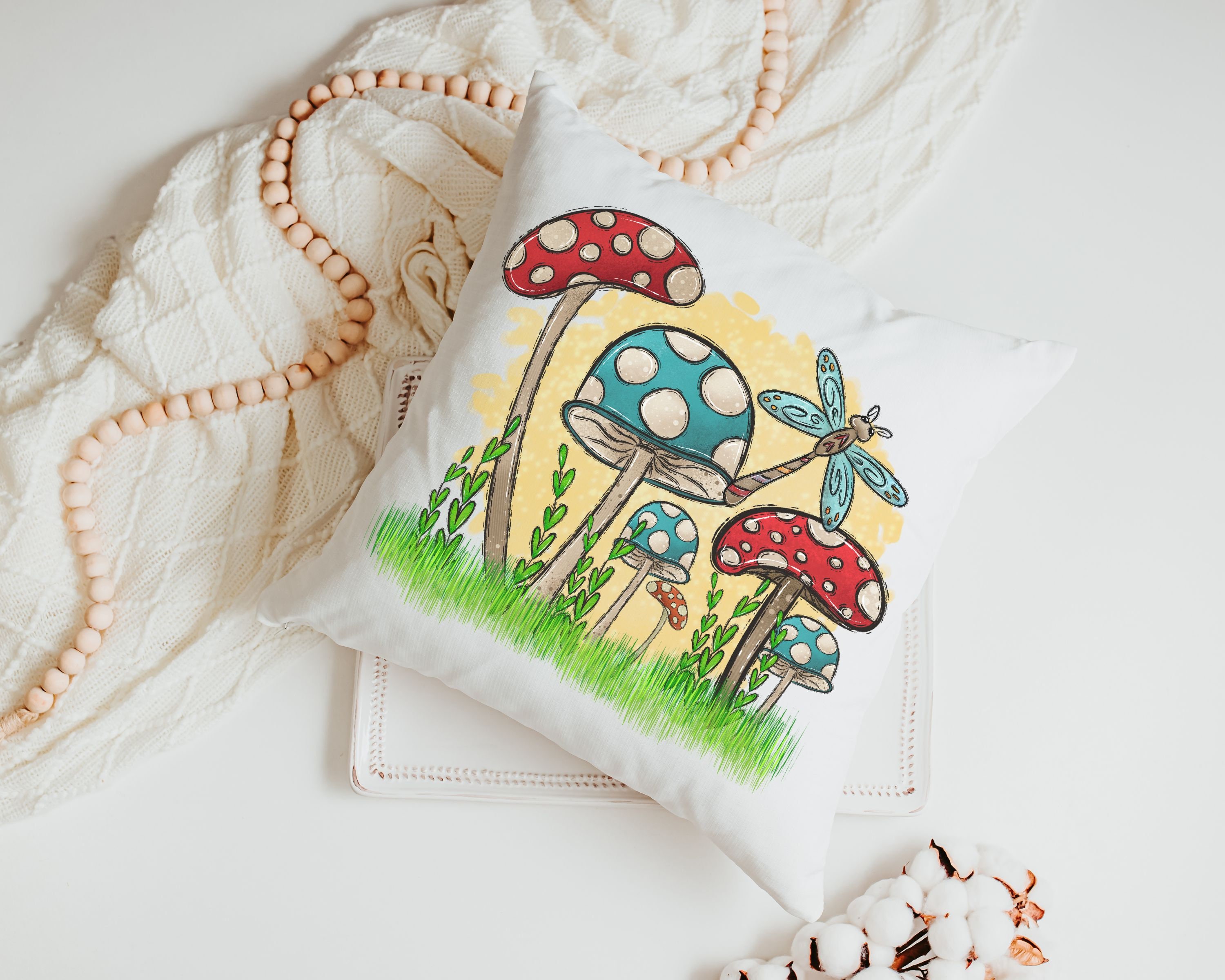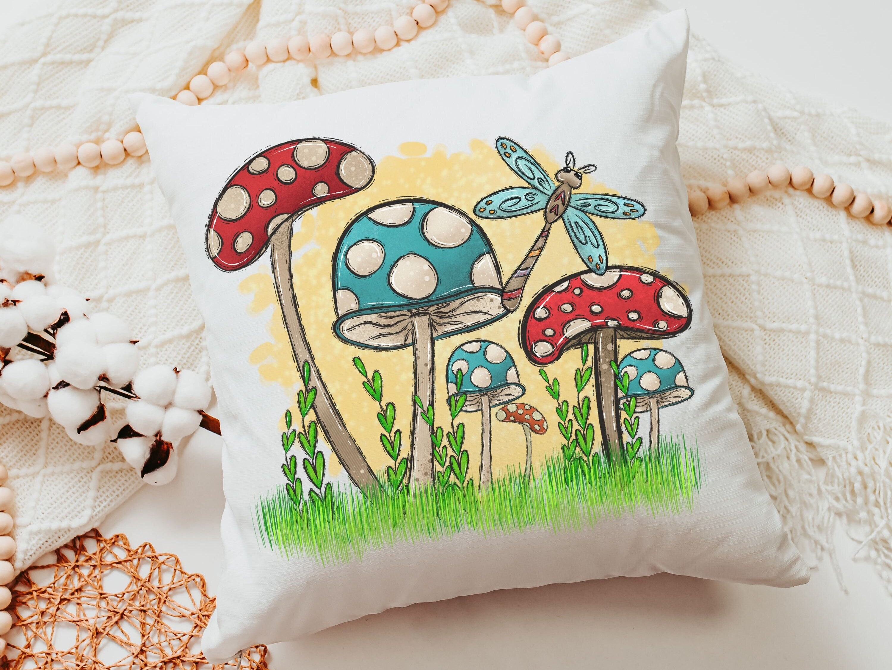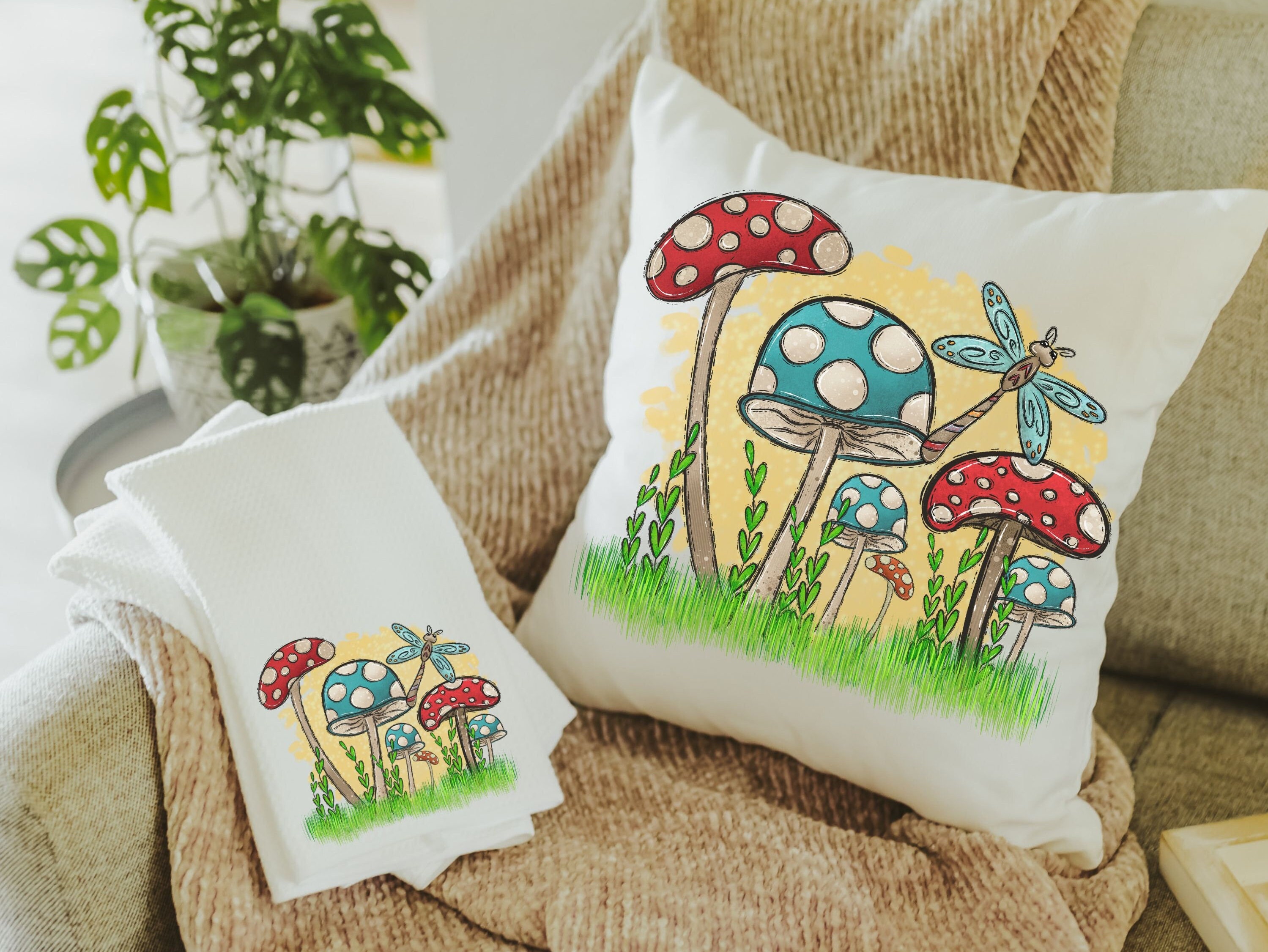 blue mushroom throw pillows for couch colorful mushroom kitchen towels for RV, red mushroom pillow cover 18 x 18, mushroom gifts for women