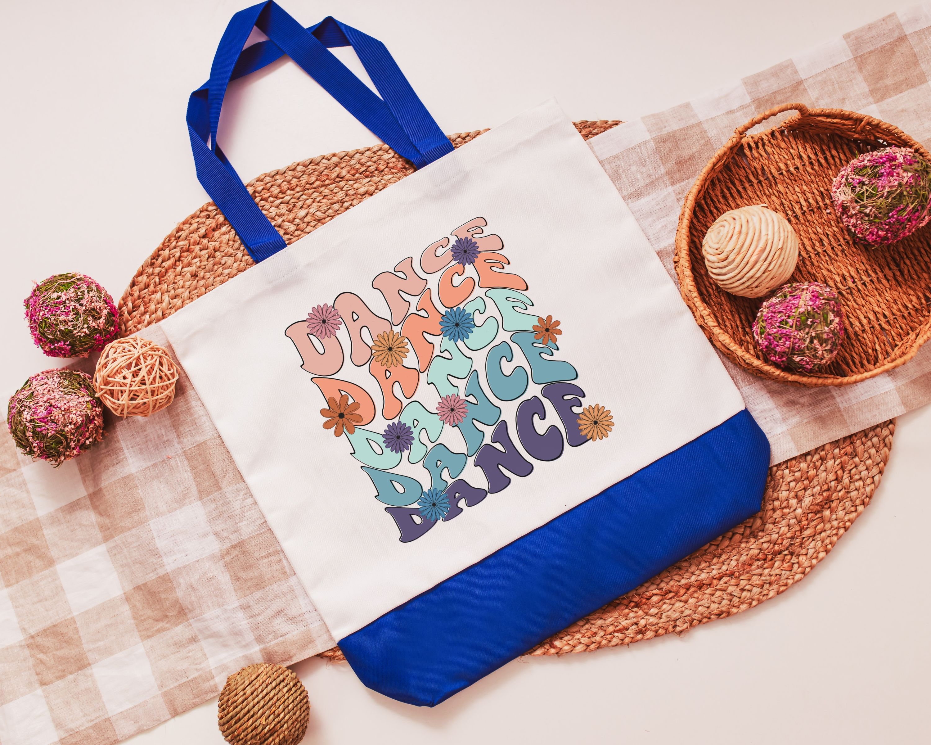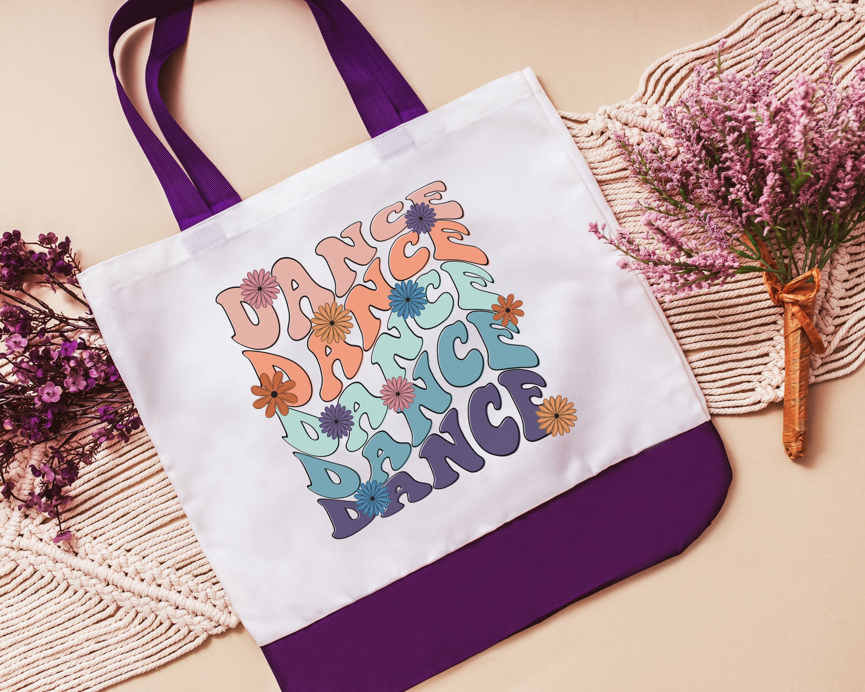 This retro inspired flower tote bag is the perfect accessory for any dancer! It's great for carrying all your dance essentials and makes for a perfect Easter basket gift, dance team, senior gift, or dance mom gift. It's large enough to store things you need for practice and shows and is a great way to make a statement at college. This tote bag will have you standing out from the crowd.