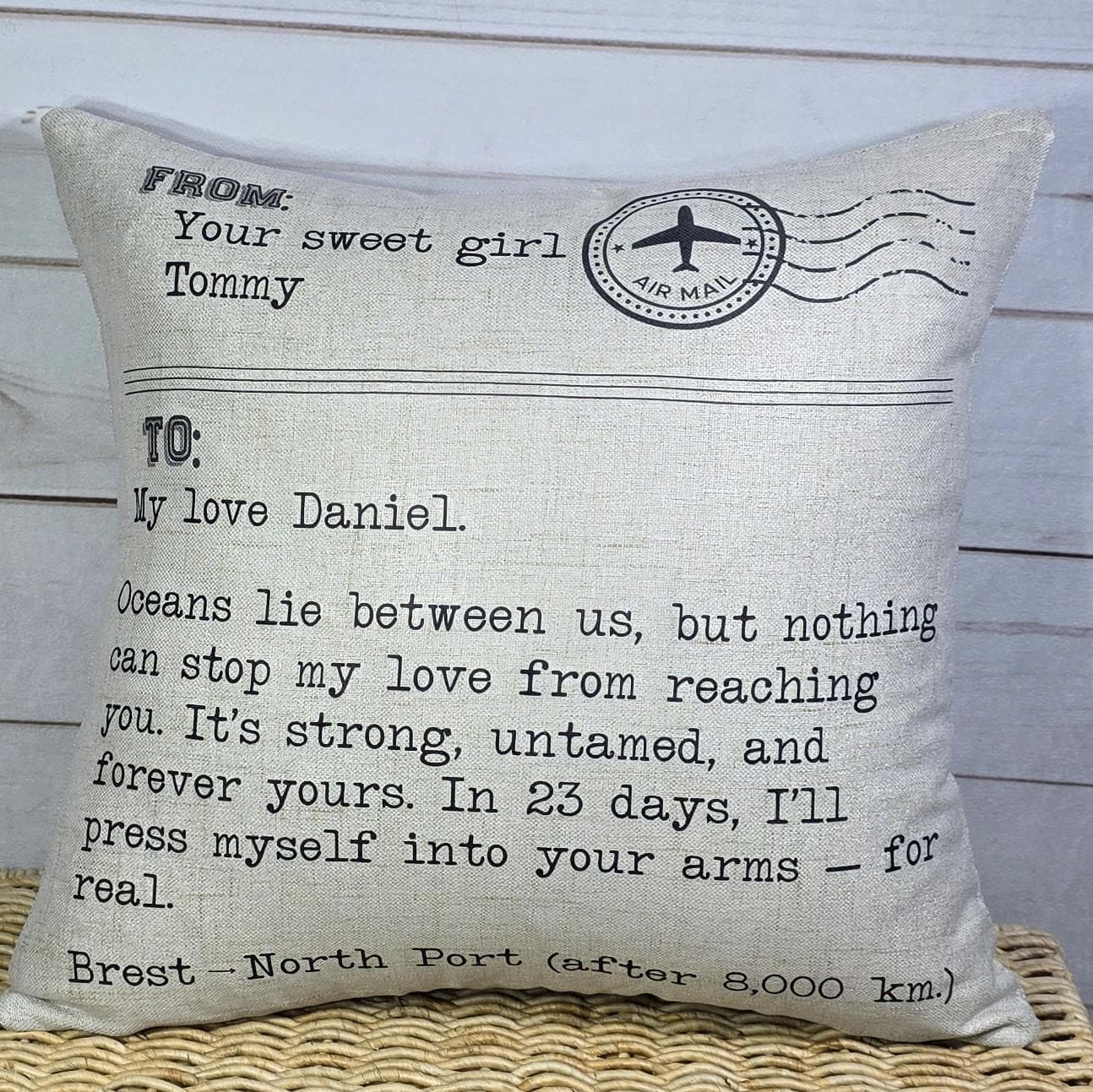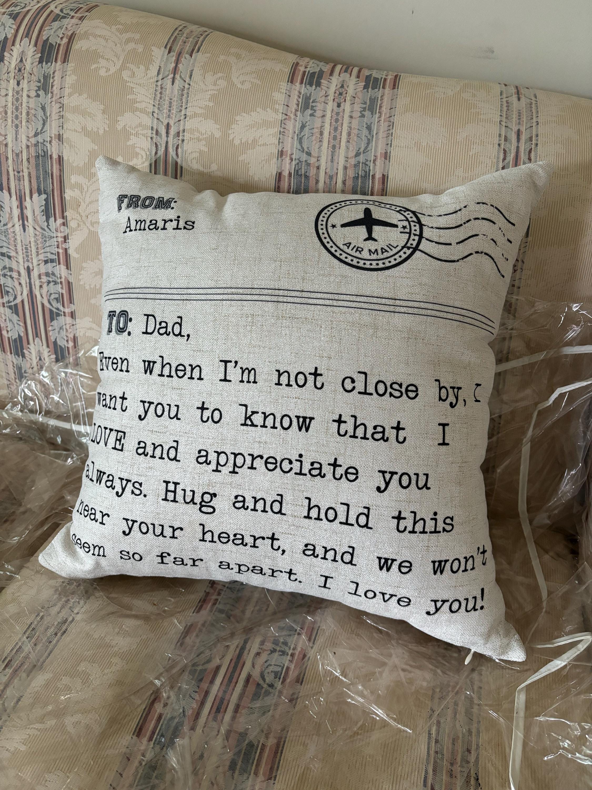 This is such a sweet gesture! Very nice job! Easy to read! Nice size pillow! Highly recommend!