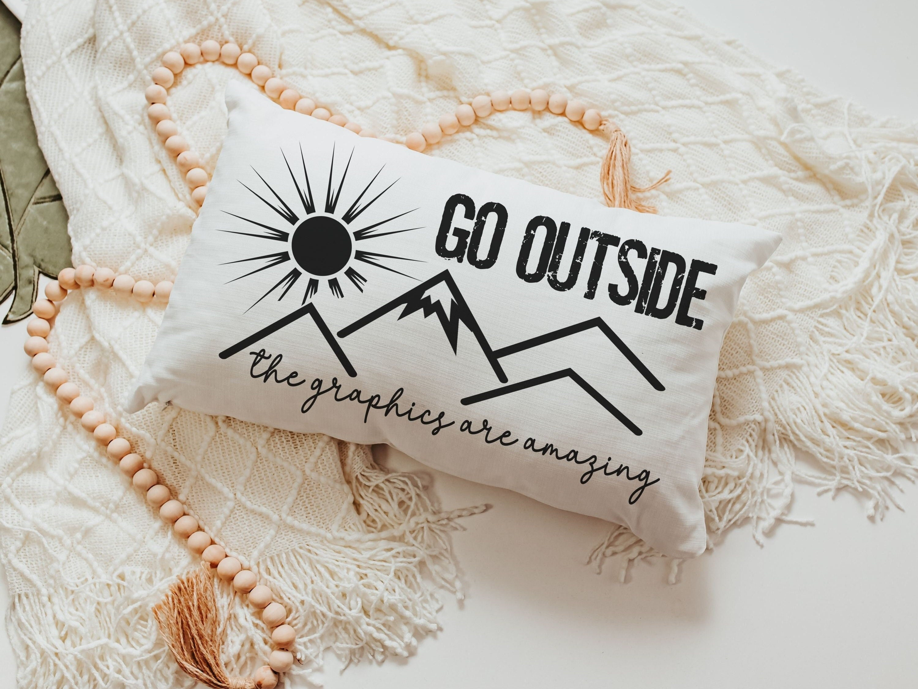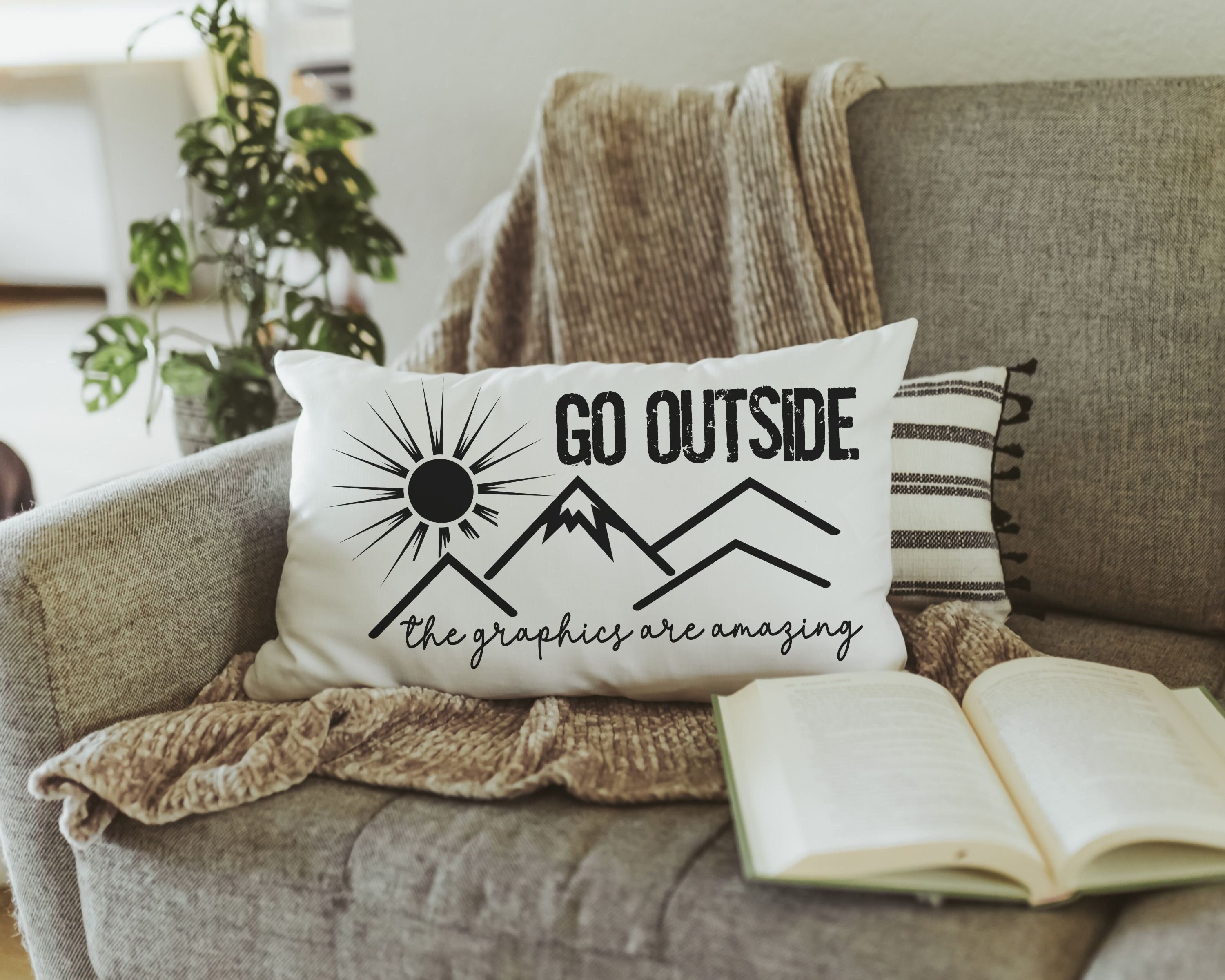go outside lumbar throw pillow for bed, gamer girl gift, nature lover gift, adventure awaits pillow for couch, birthday gift for best friend