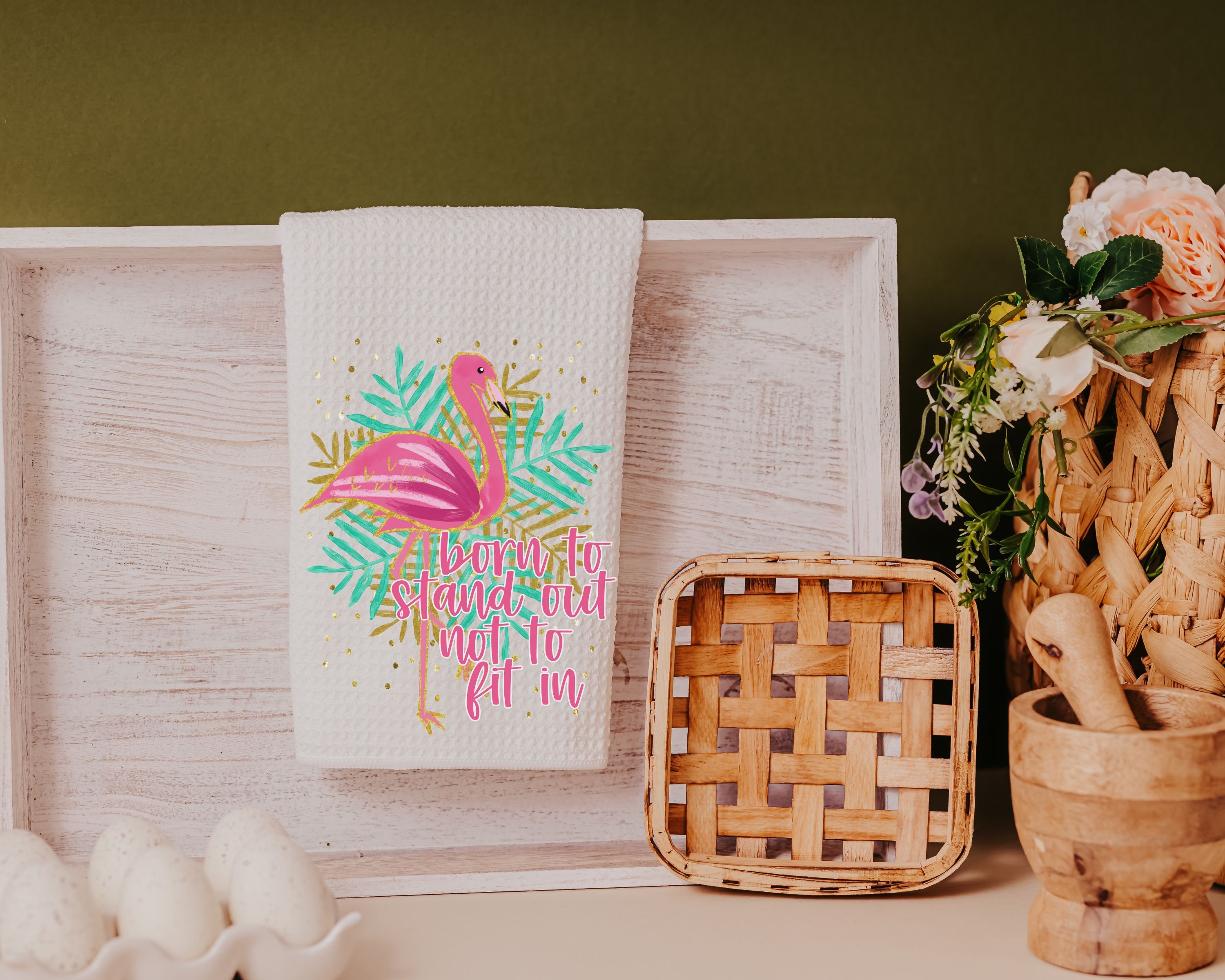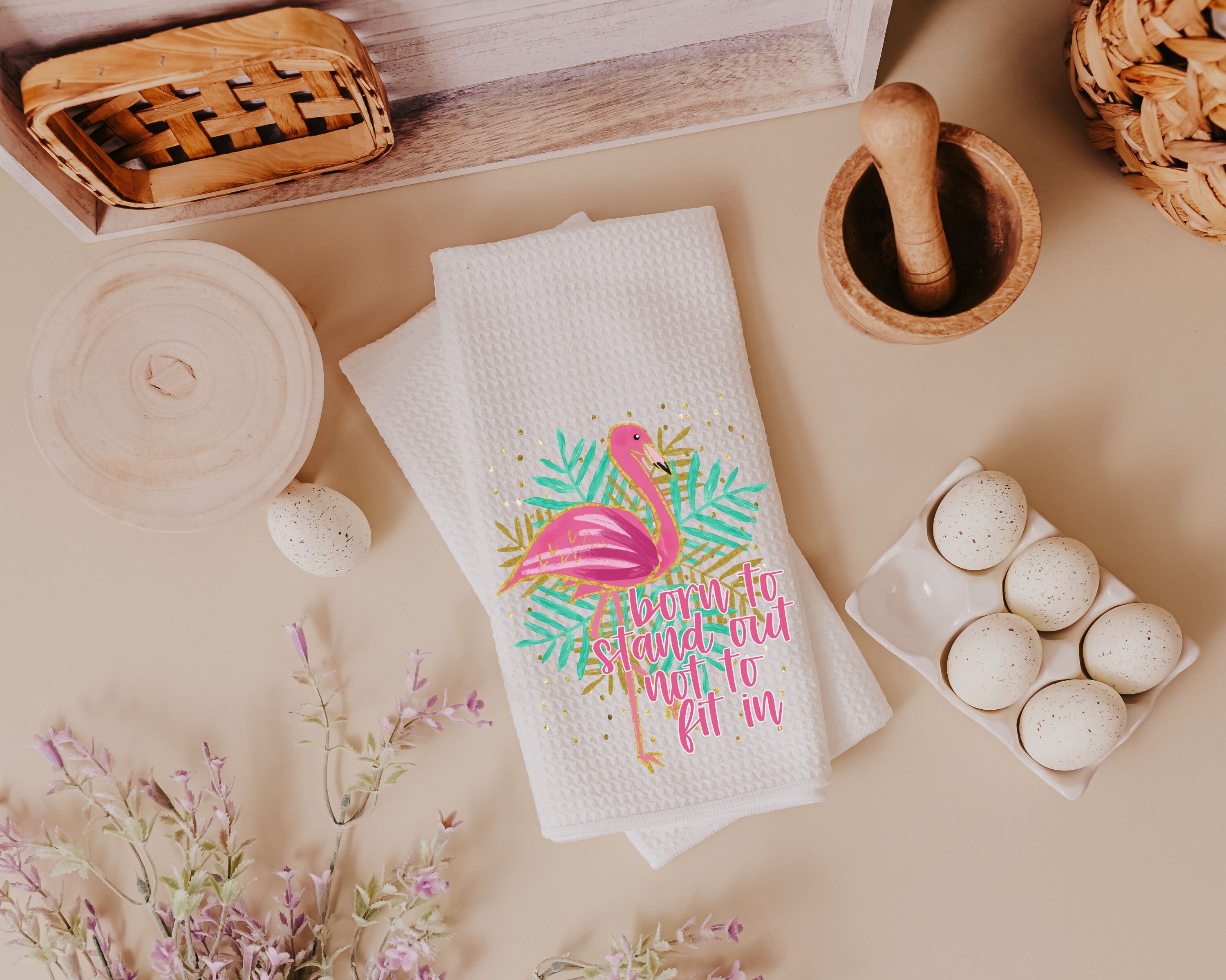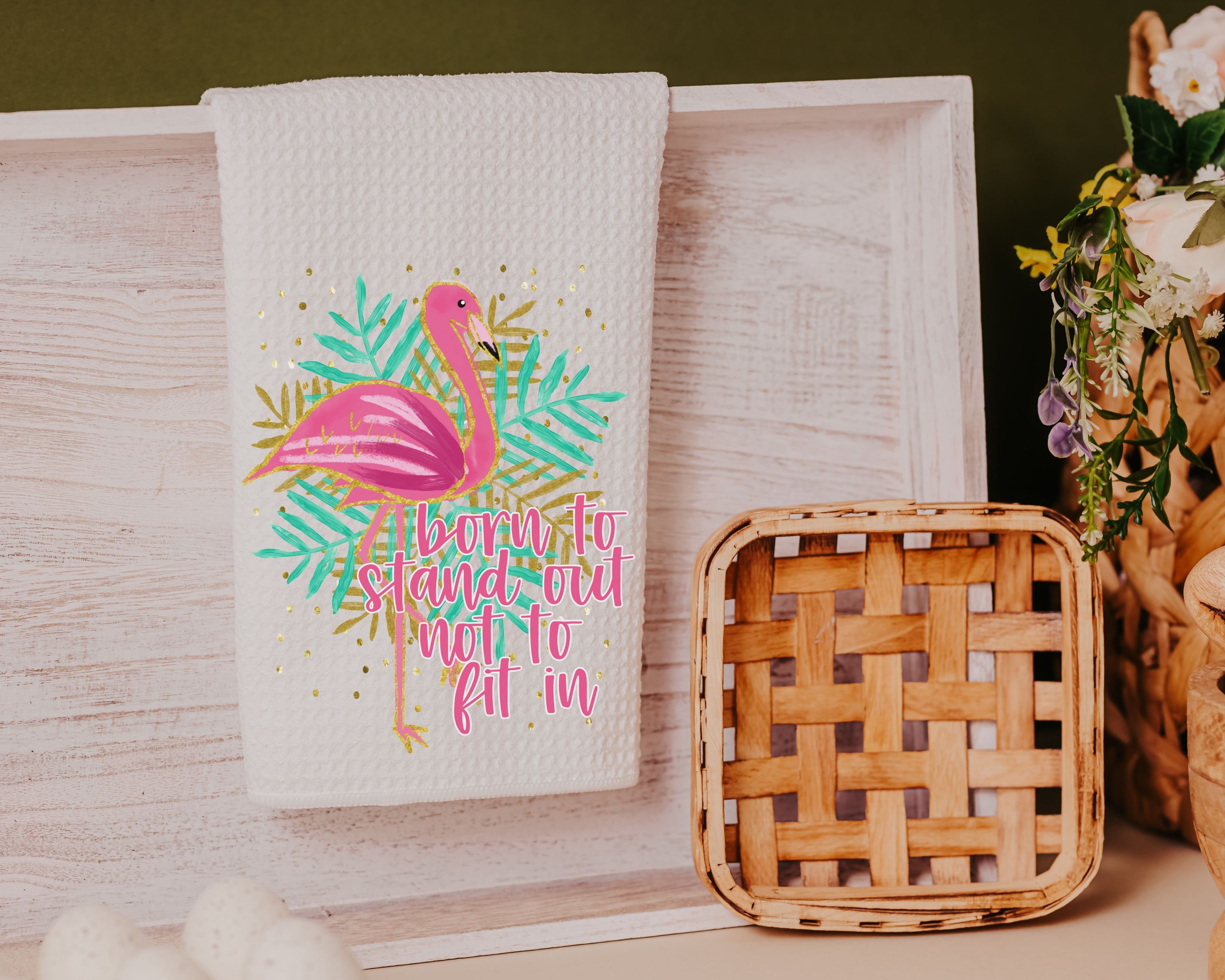 born to stand out flamingo hand towels for bathroom, tropical kitchen towels, flamingo kitchen decor, beach house gifts, flamingo gifts for