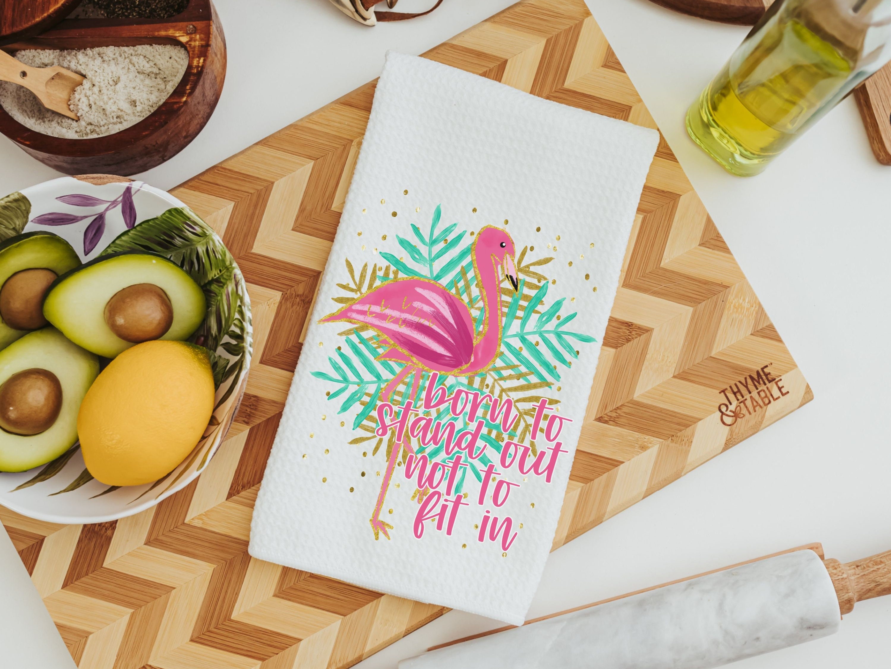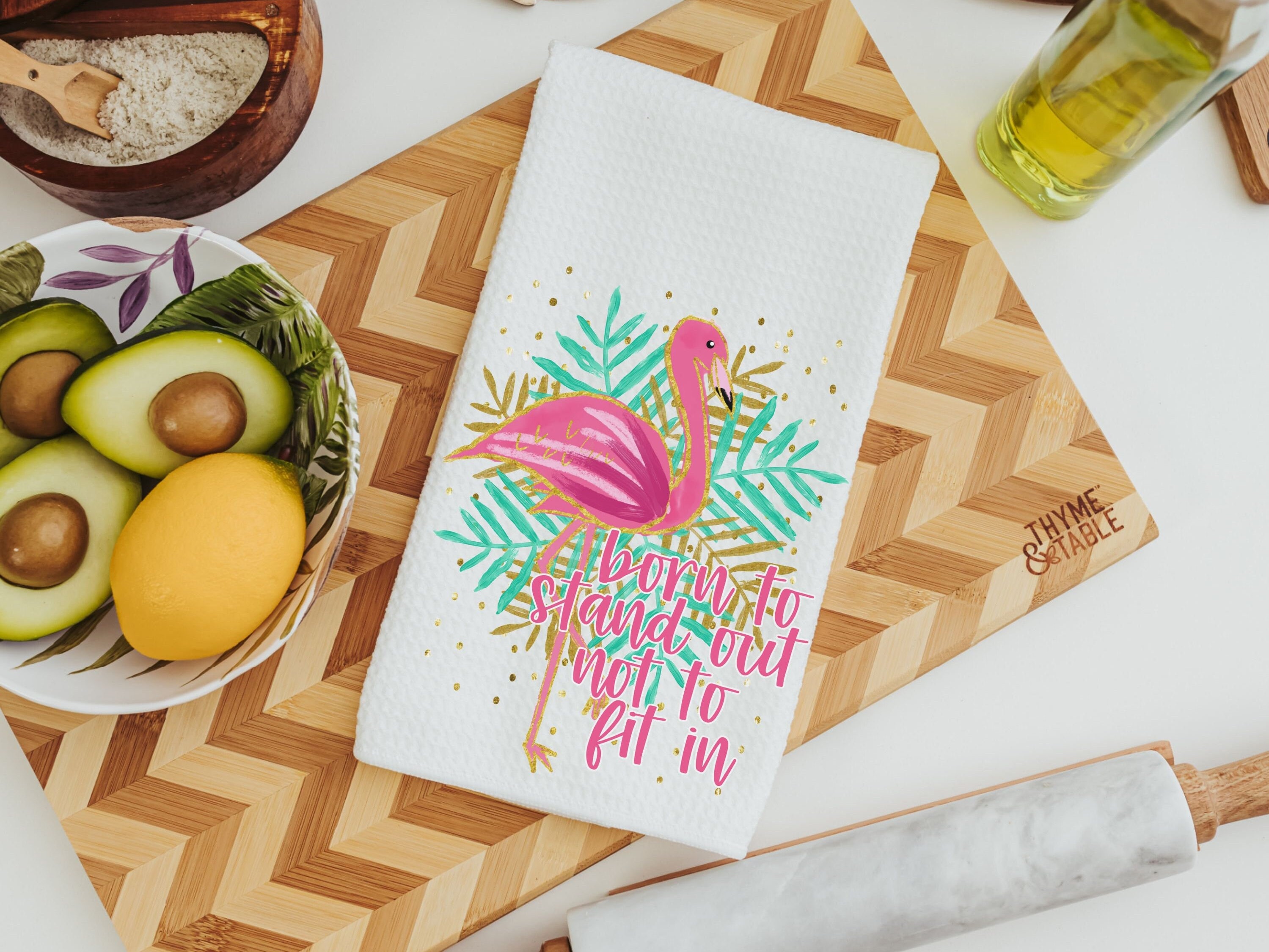 You were Born to Stand Out Not Fit In with these charming flamingo hand towels, perfect for adding a touch of tropical flair to your bathroom. Whether you're looking to enhance your kitchen decor with a splash of flamingo charm or searching for unique beach house gifts, these towels are sure to delight. Ideal for flamingo enthusiasts and as the best gifts for women who appreciate a fun and vibrant aesthetic, these towels are born to stand out in any space.