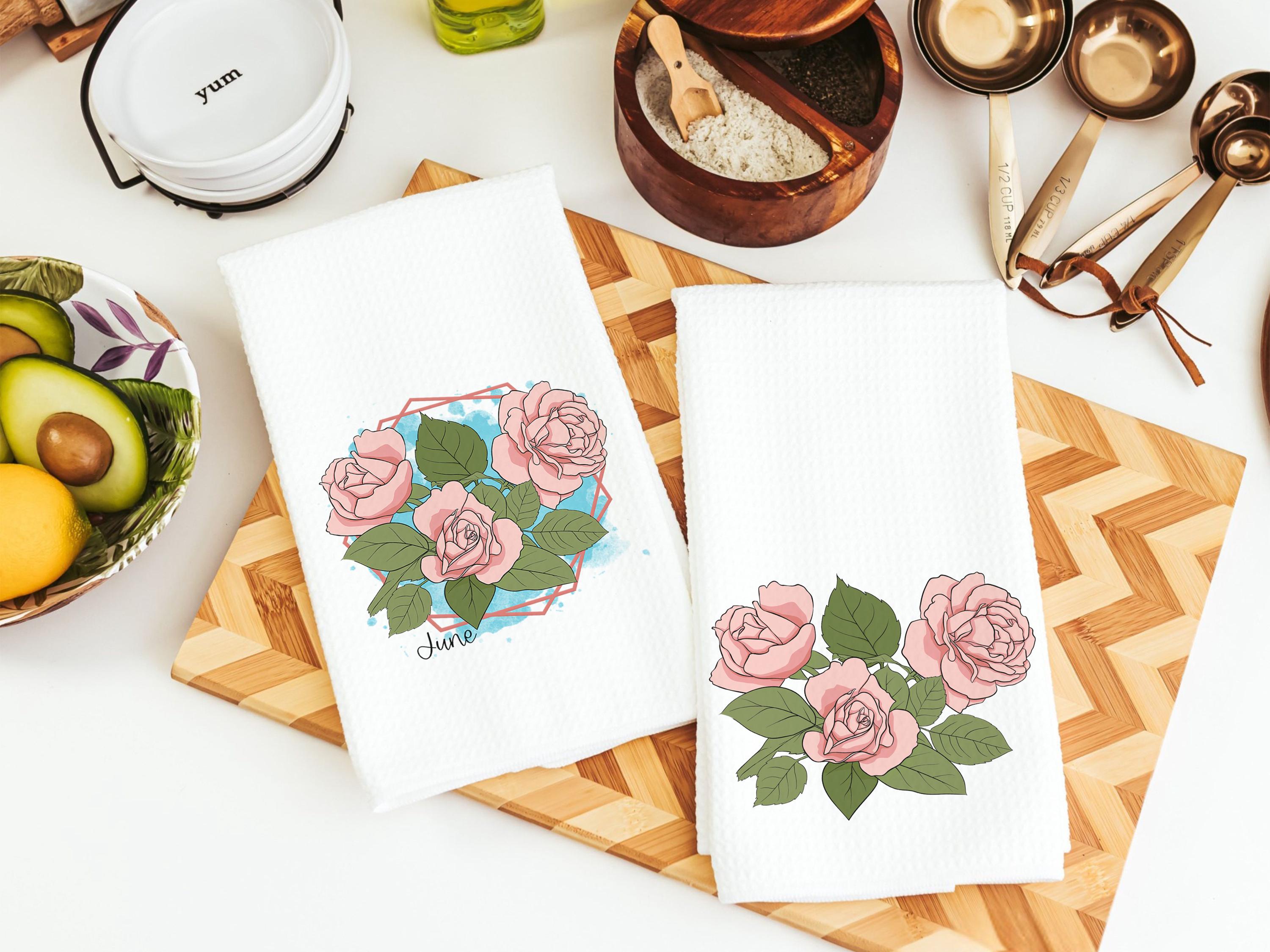 Surprise her with a custom June birth flower throw pillow and coordinating rose towels—a beautiful way to bring floral charm to her kitchen or sofa. A thoughtful gift for sisters, plant moms, or anyone who loves cottagecore room decor. Available as a set or sold separately.