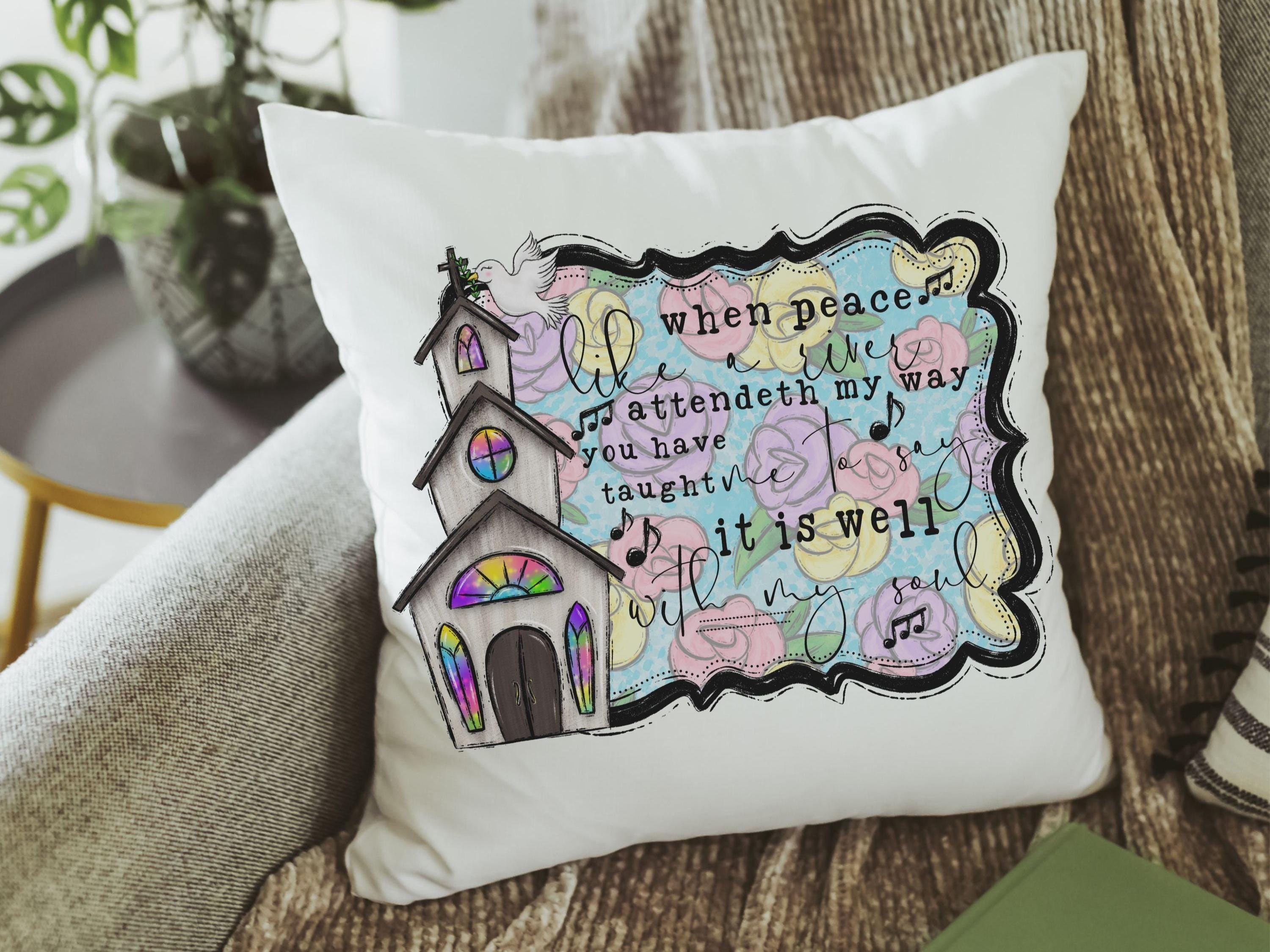 it is well with my soul hymn pillow for couch, floral Christian gifts for women faith throw pillow covers 18x18, religious gifts for Mom