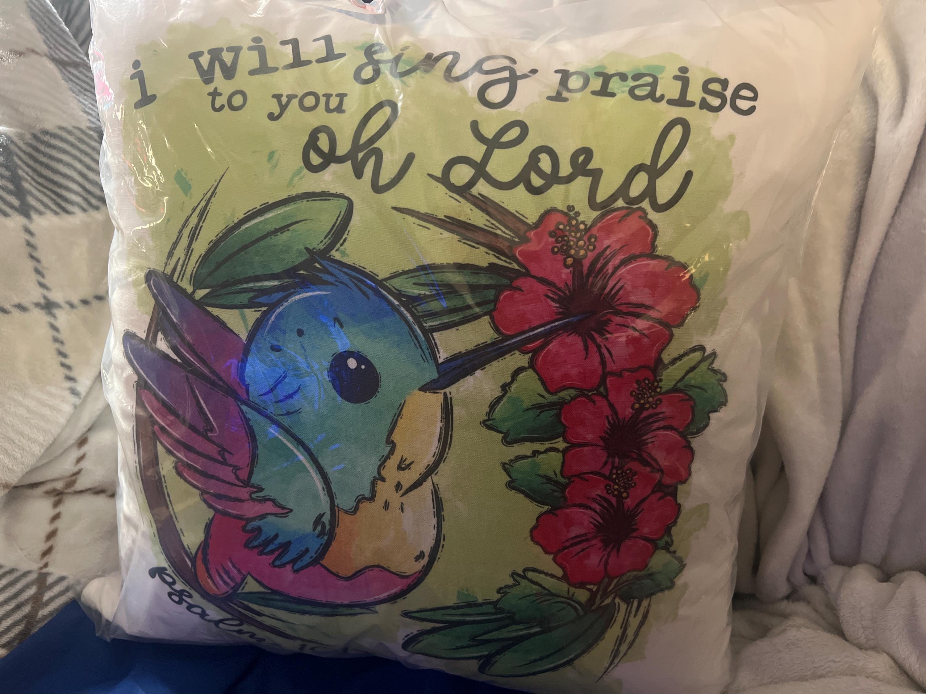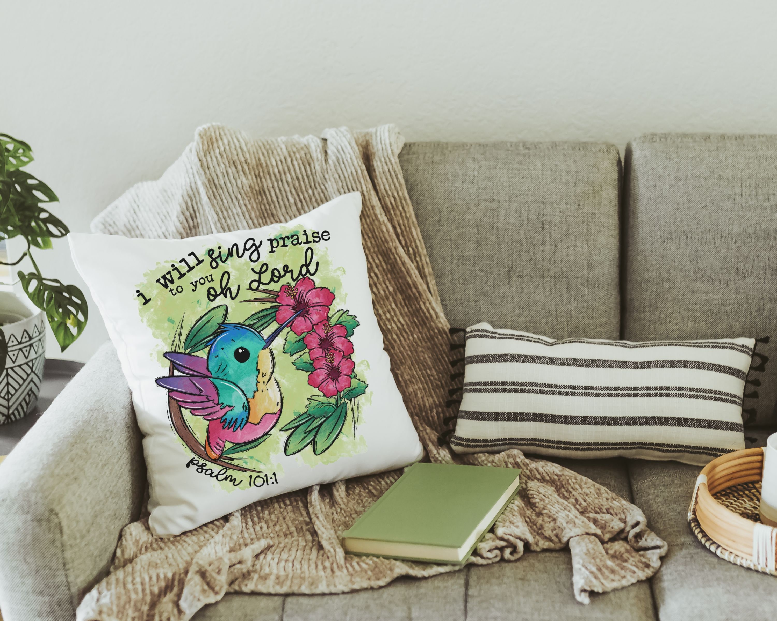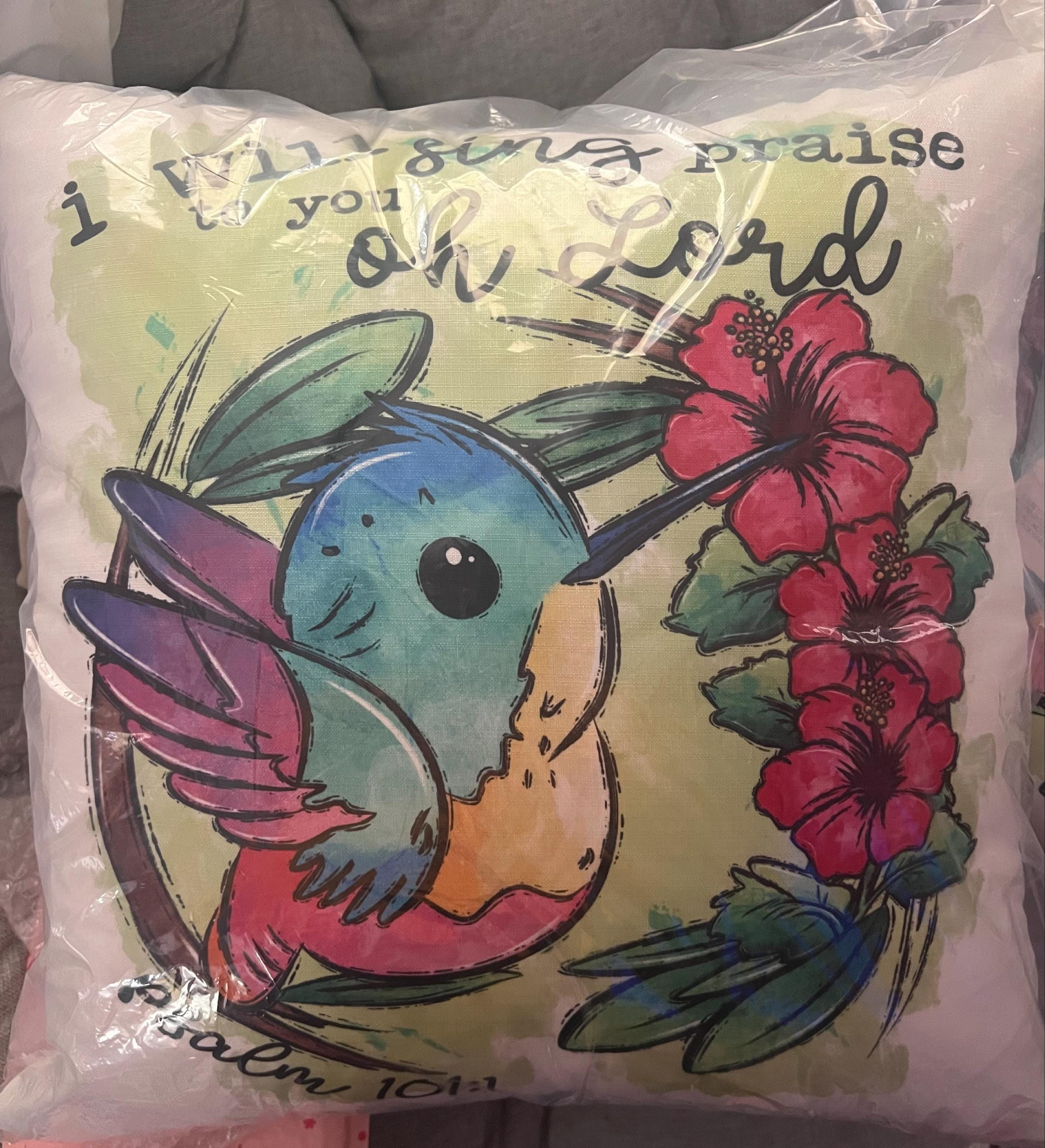 Psalm 101 I will sing praise to you oh Lord hummingbird throw pillow for nursery, Christian gifts for women faith gifts for her, tropical