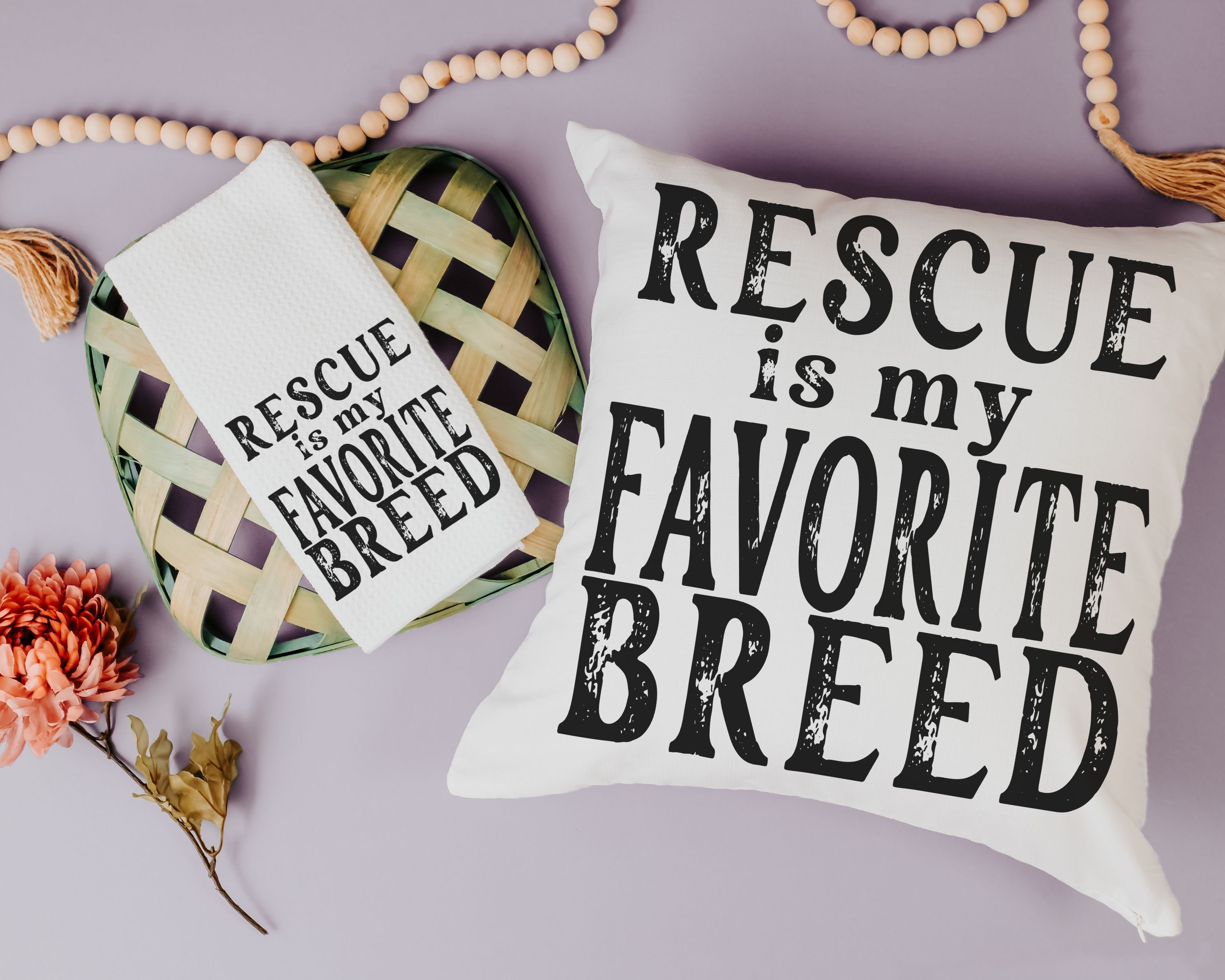 rescue is my favorite breed dog mom gift set for women, rescue dog decor for home, cute dog throw pillow for sofa, dog lover gift for her