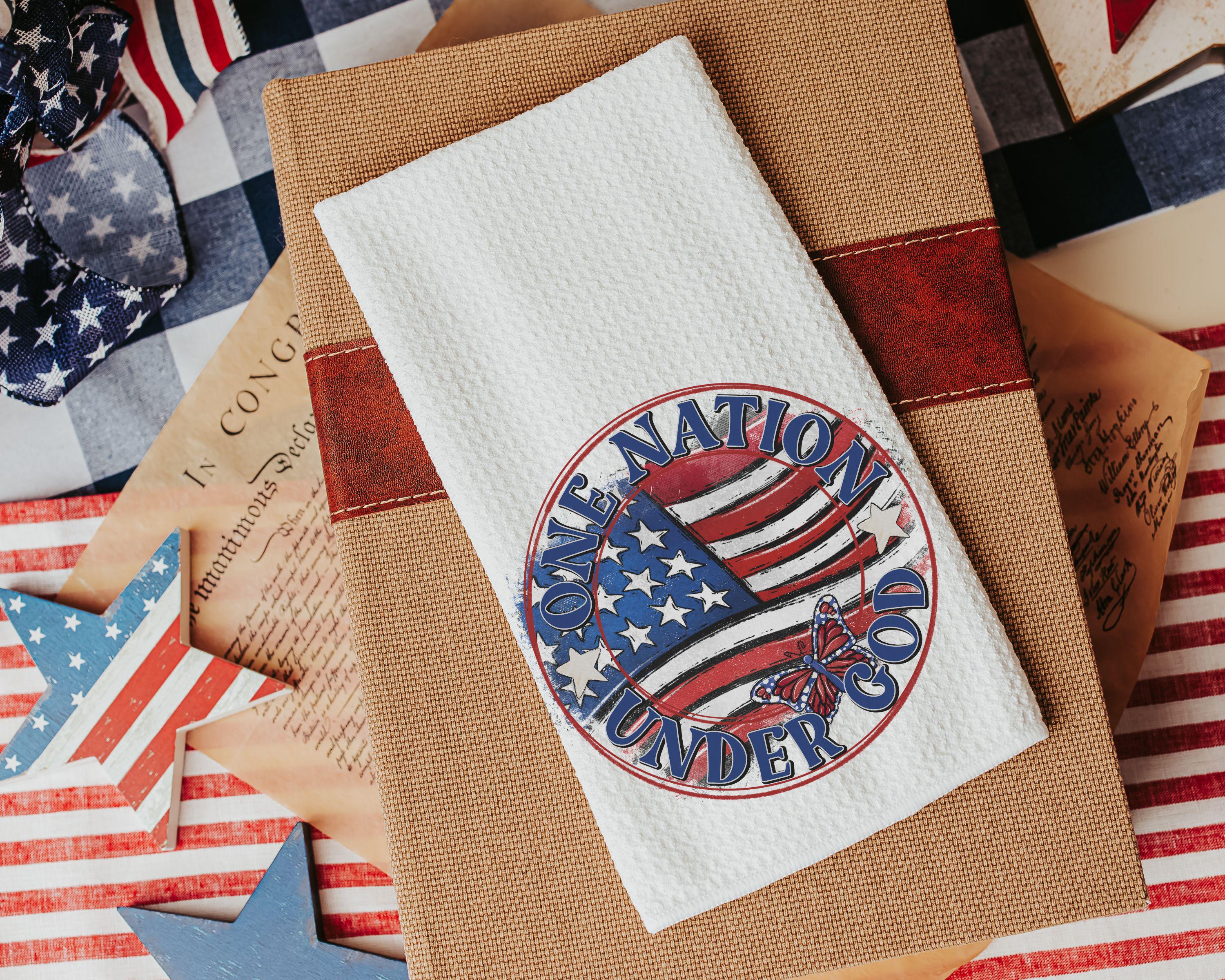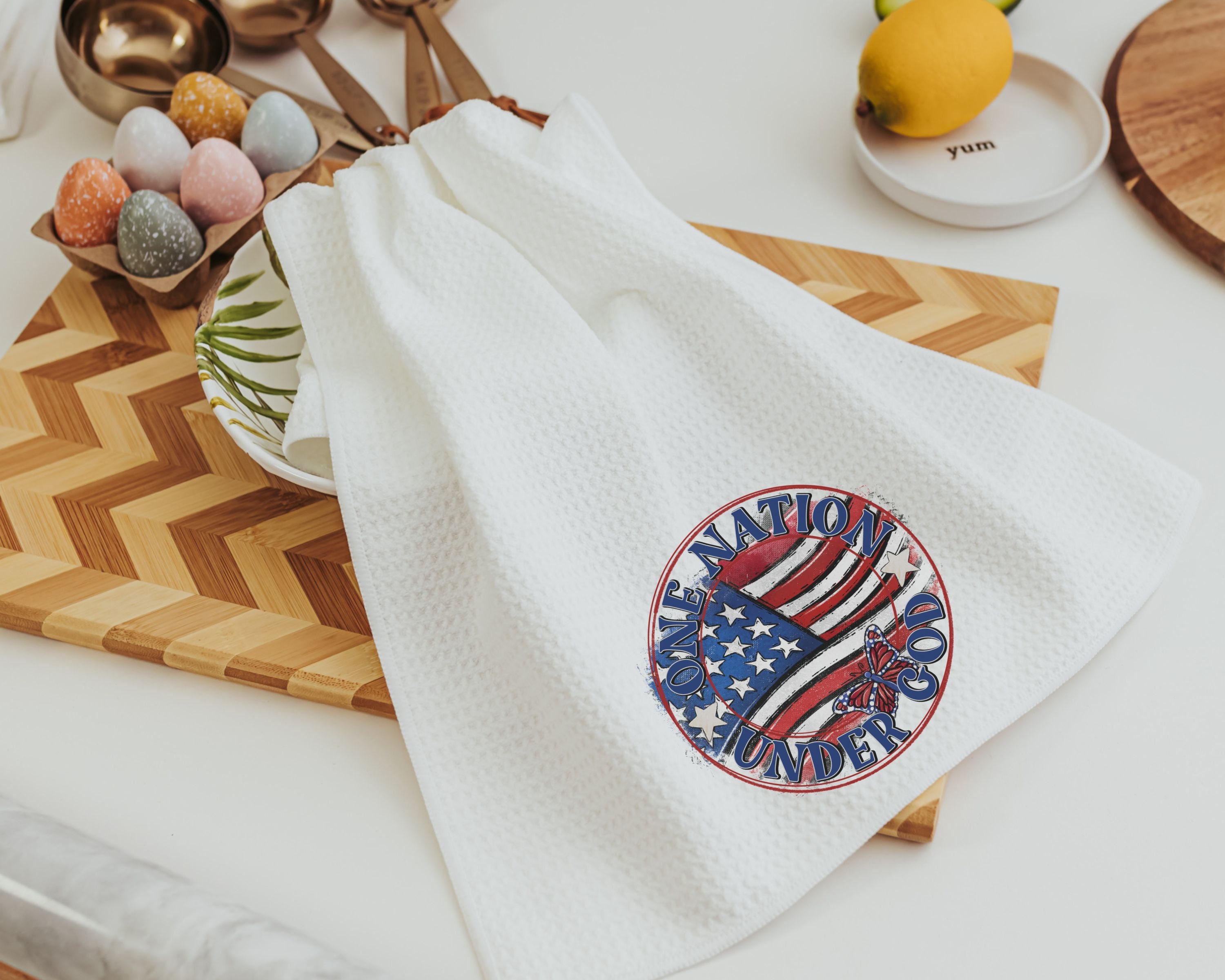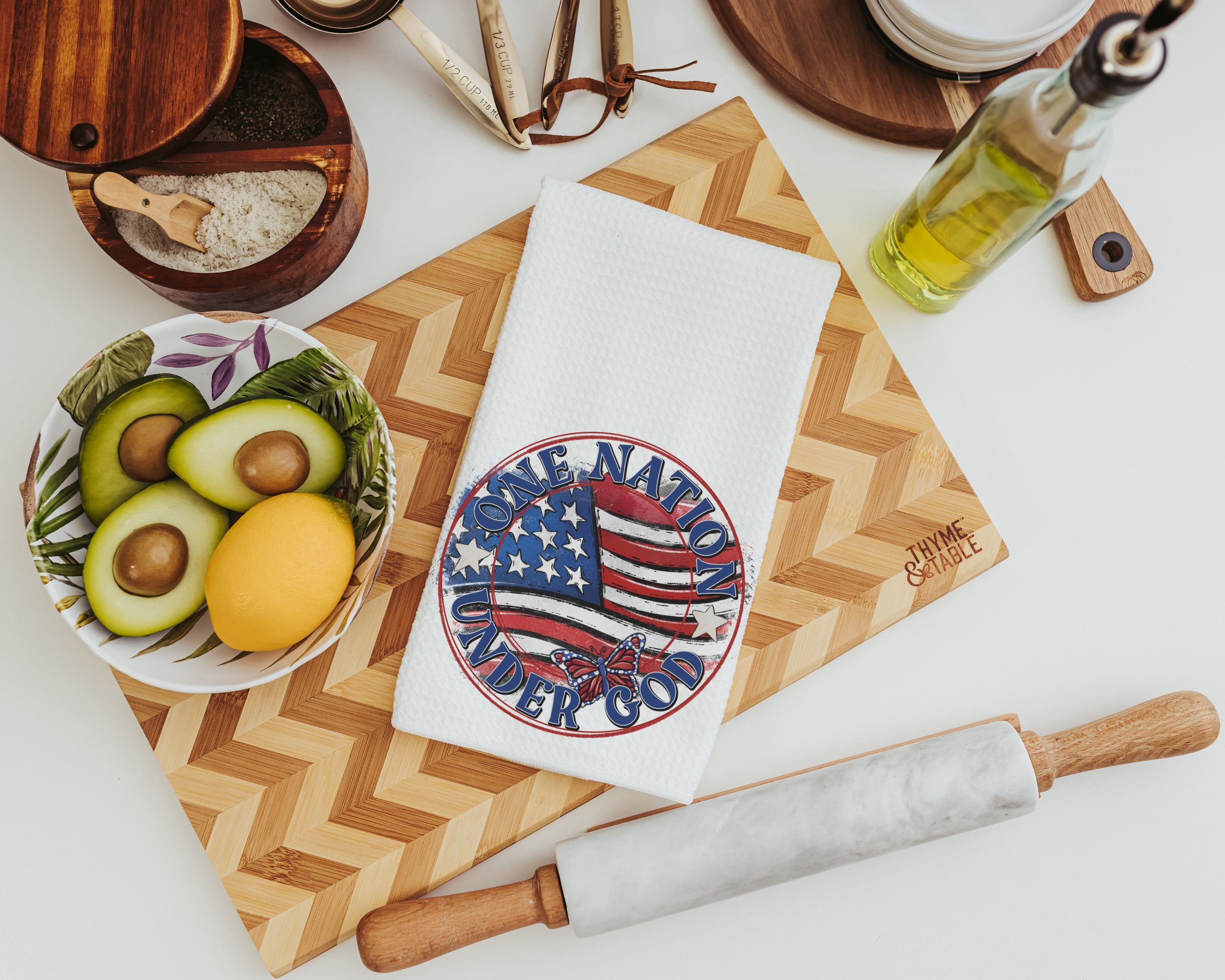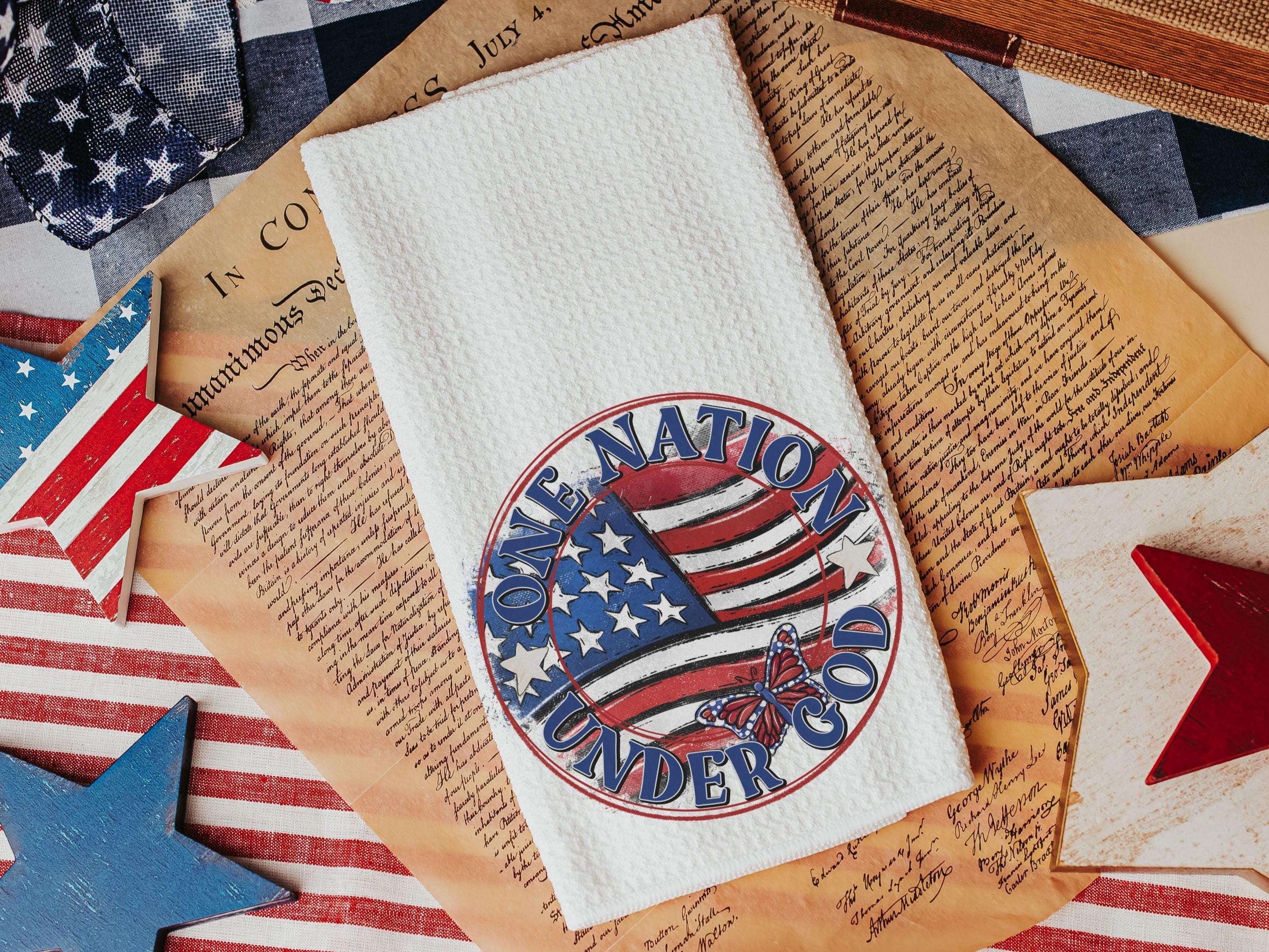 one nation under God American flag kitchen towel, 4th of July kitchen decor, patriotic decor for home, Pledge of Allegiance decor, hostess