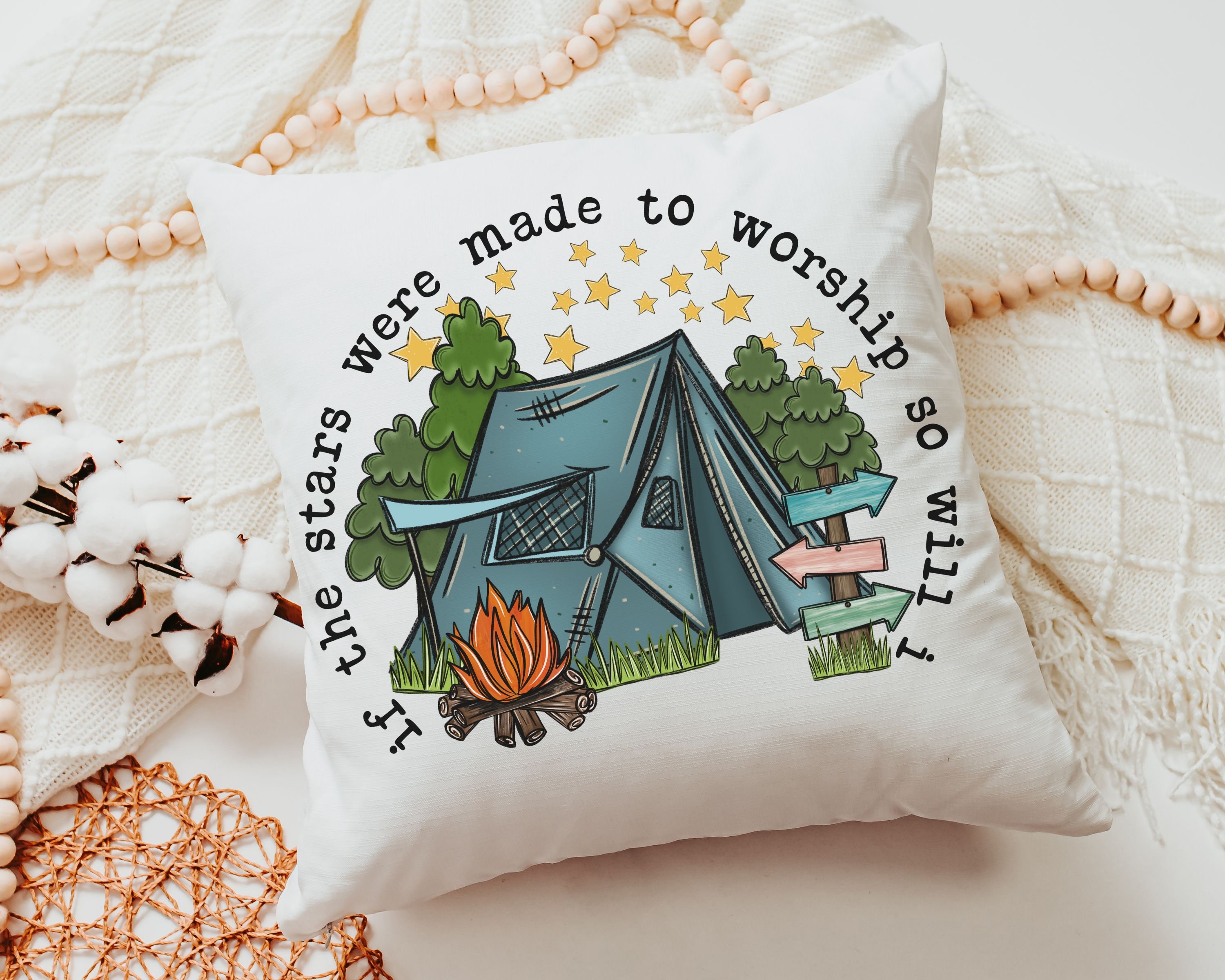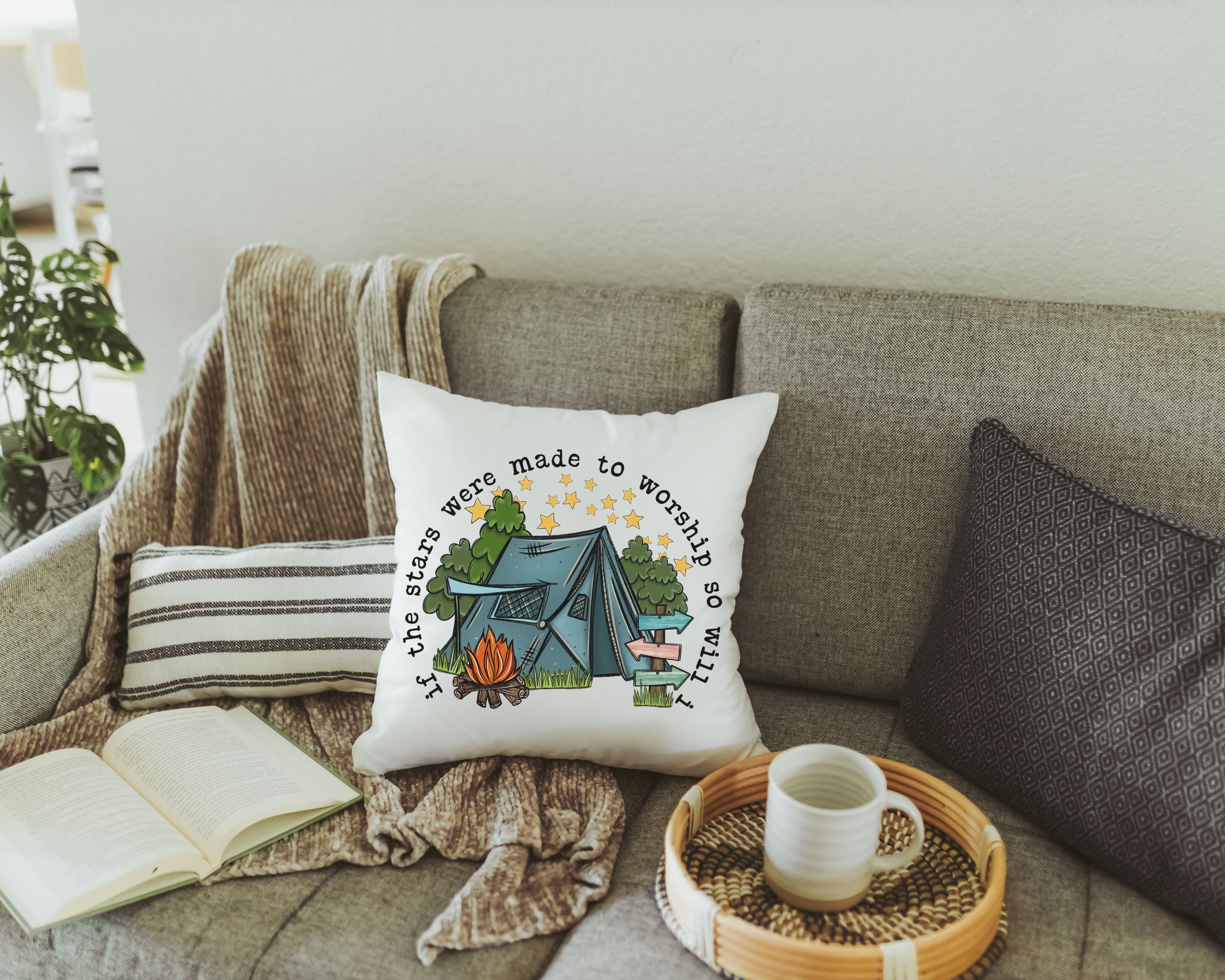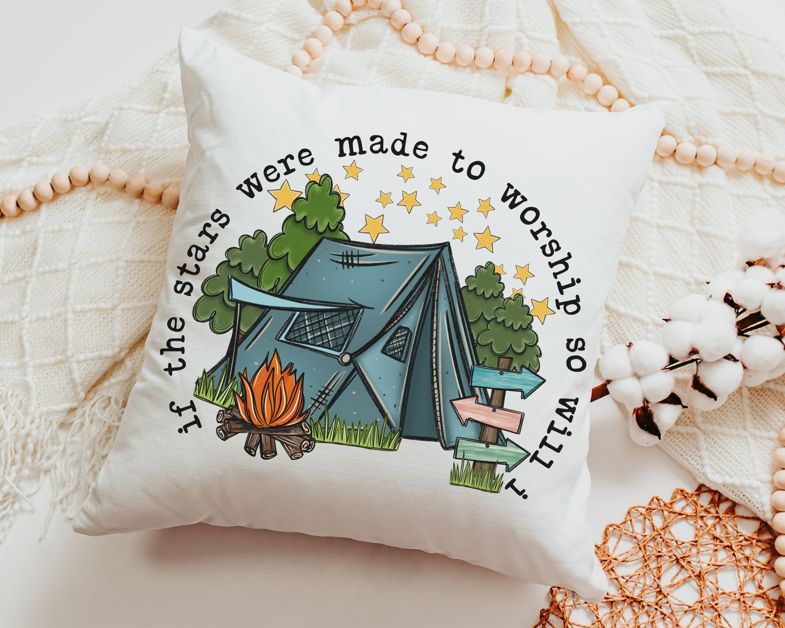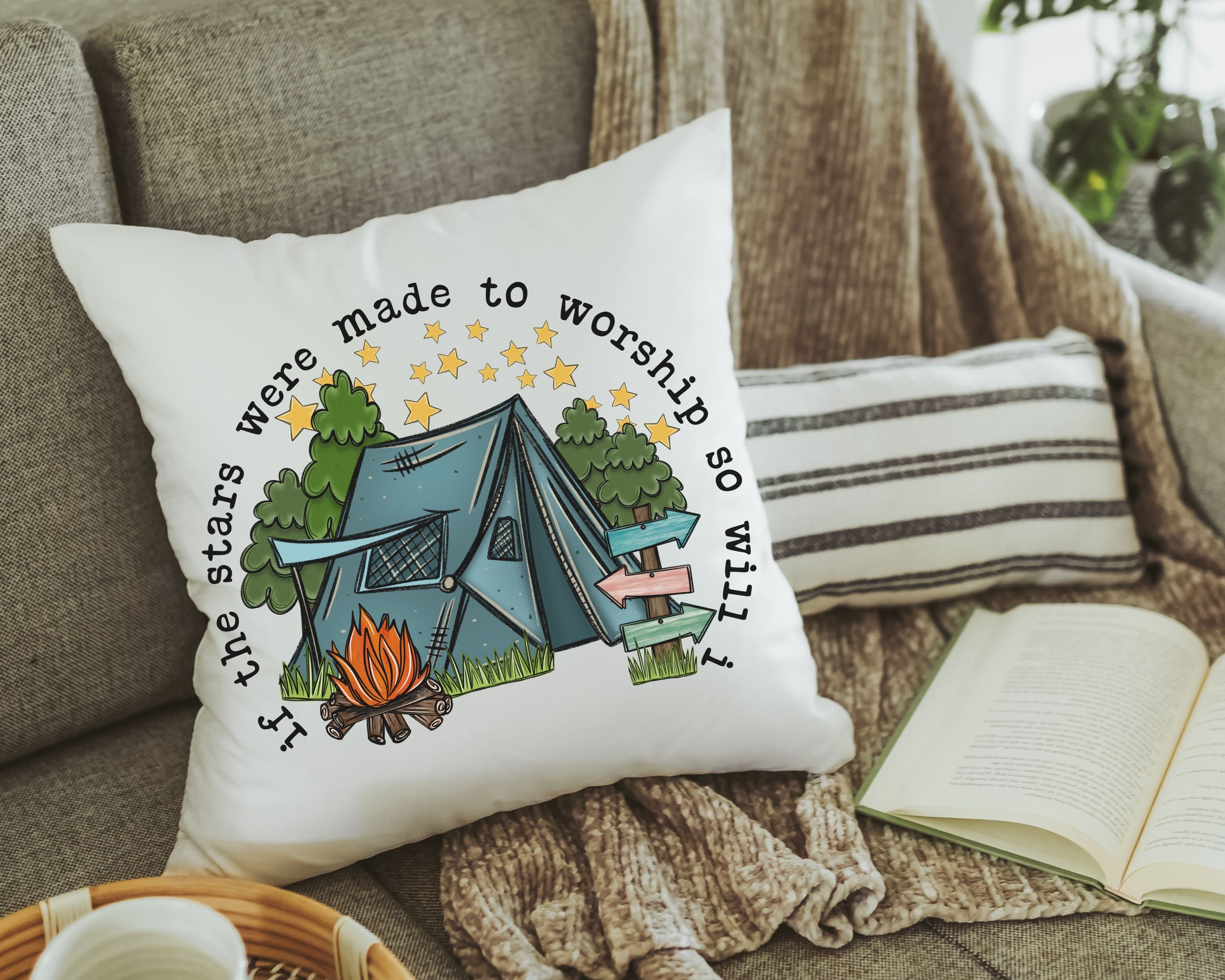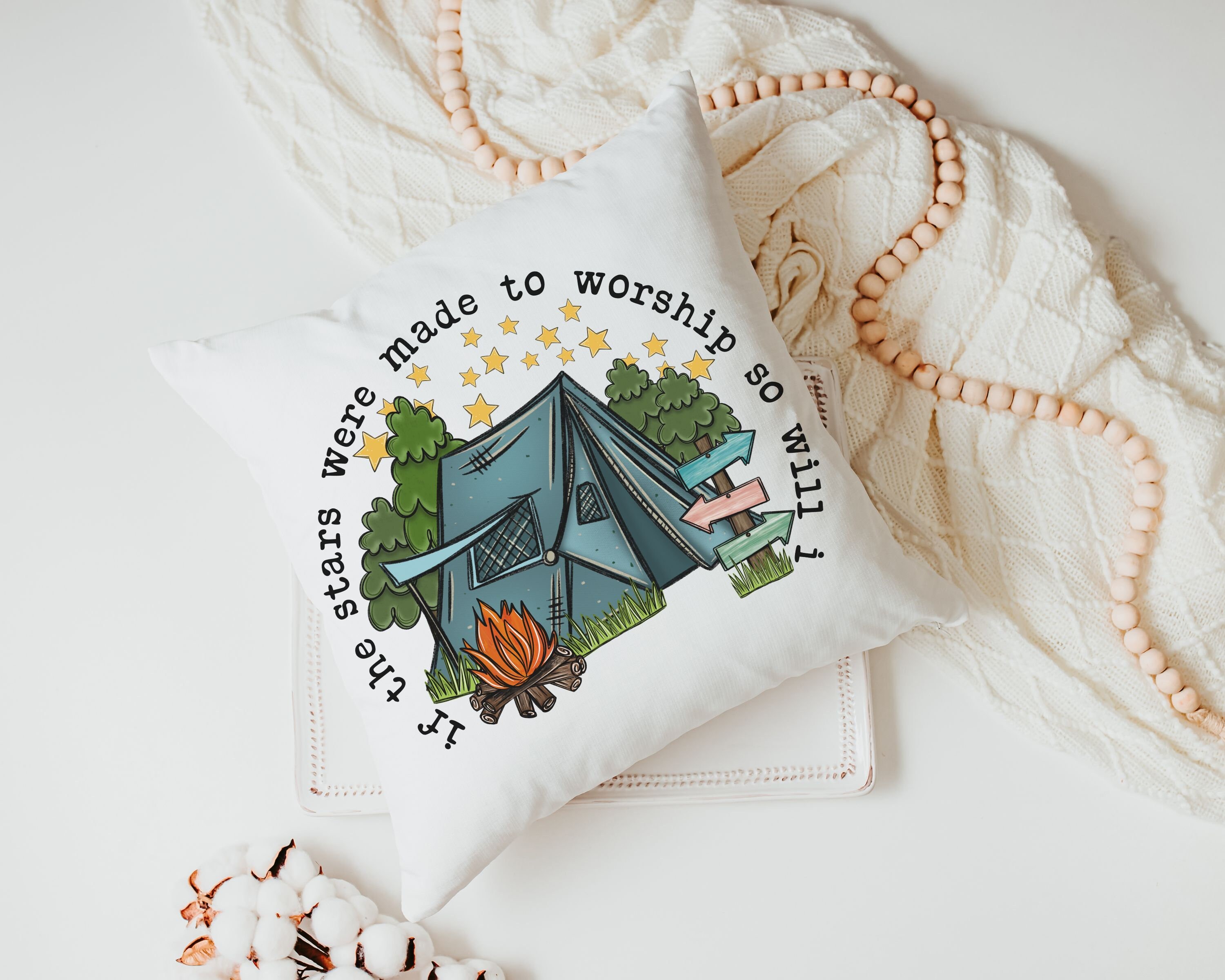 made to worship under the stars camping throw pillow for bench, Christian gifts for home, RV accessories for inside, camper decor pillow