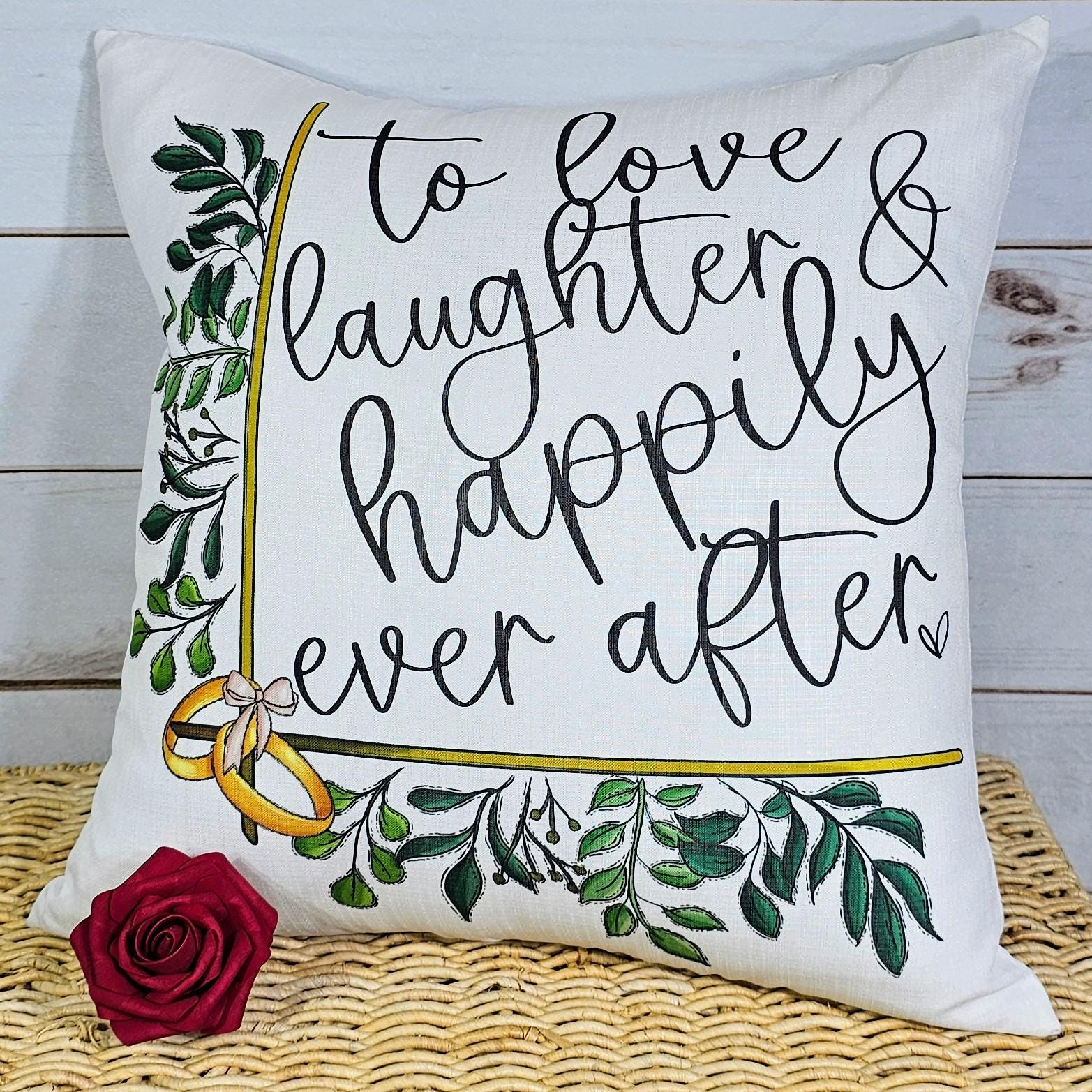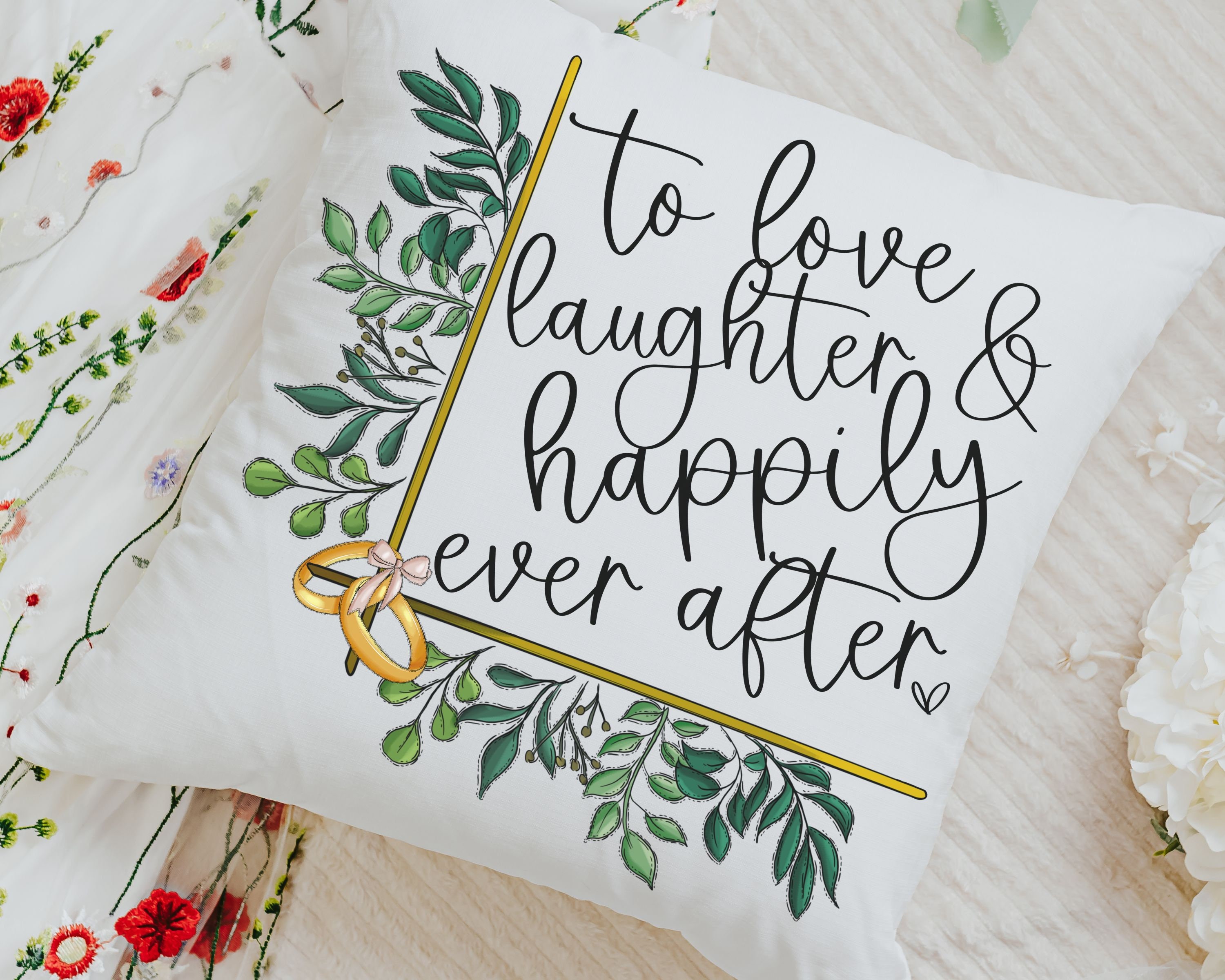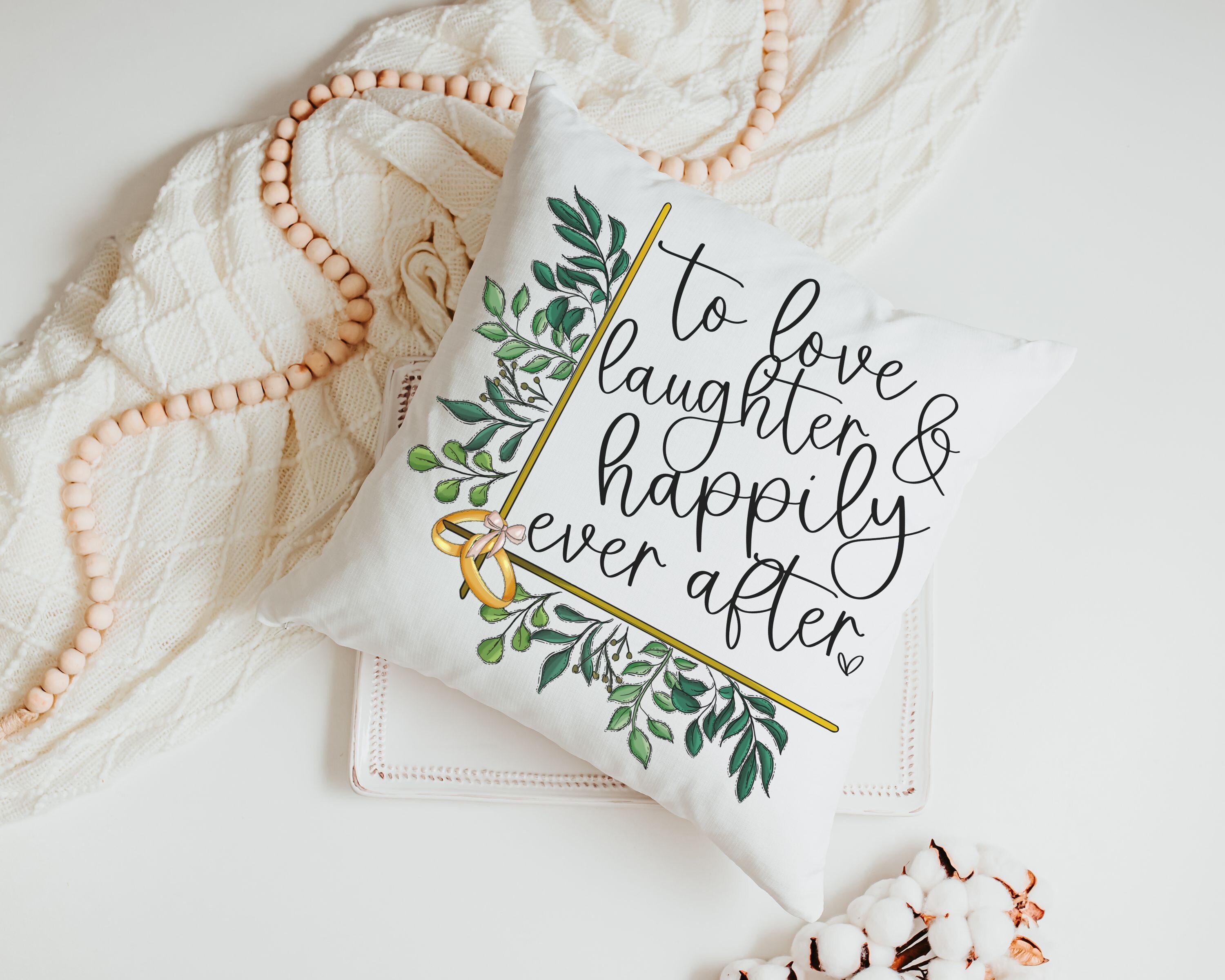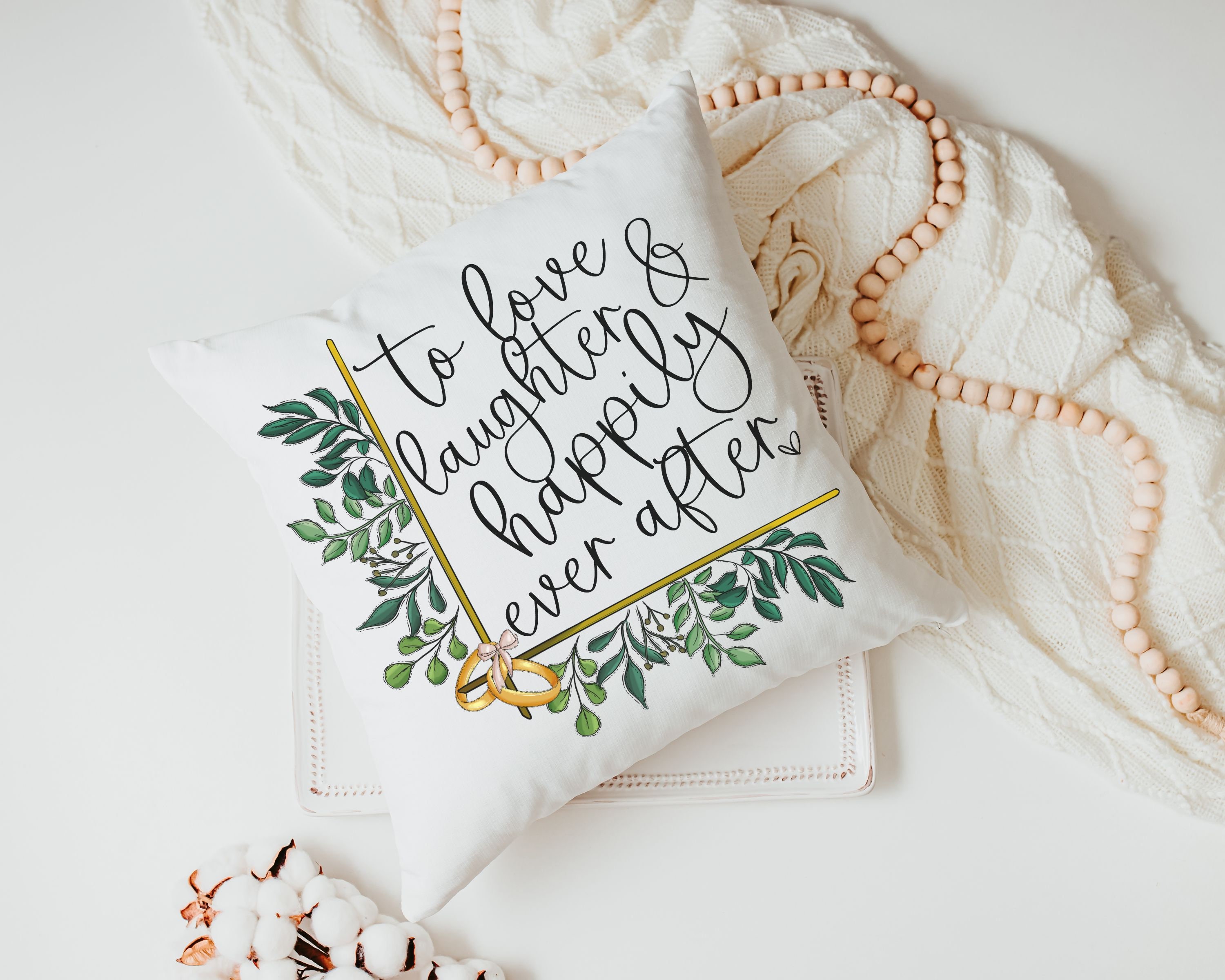greenery wedding throw pillow for bedroom, happily ever after bridal shower gift, unique engagement gifts for couple, wedding day gift for