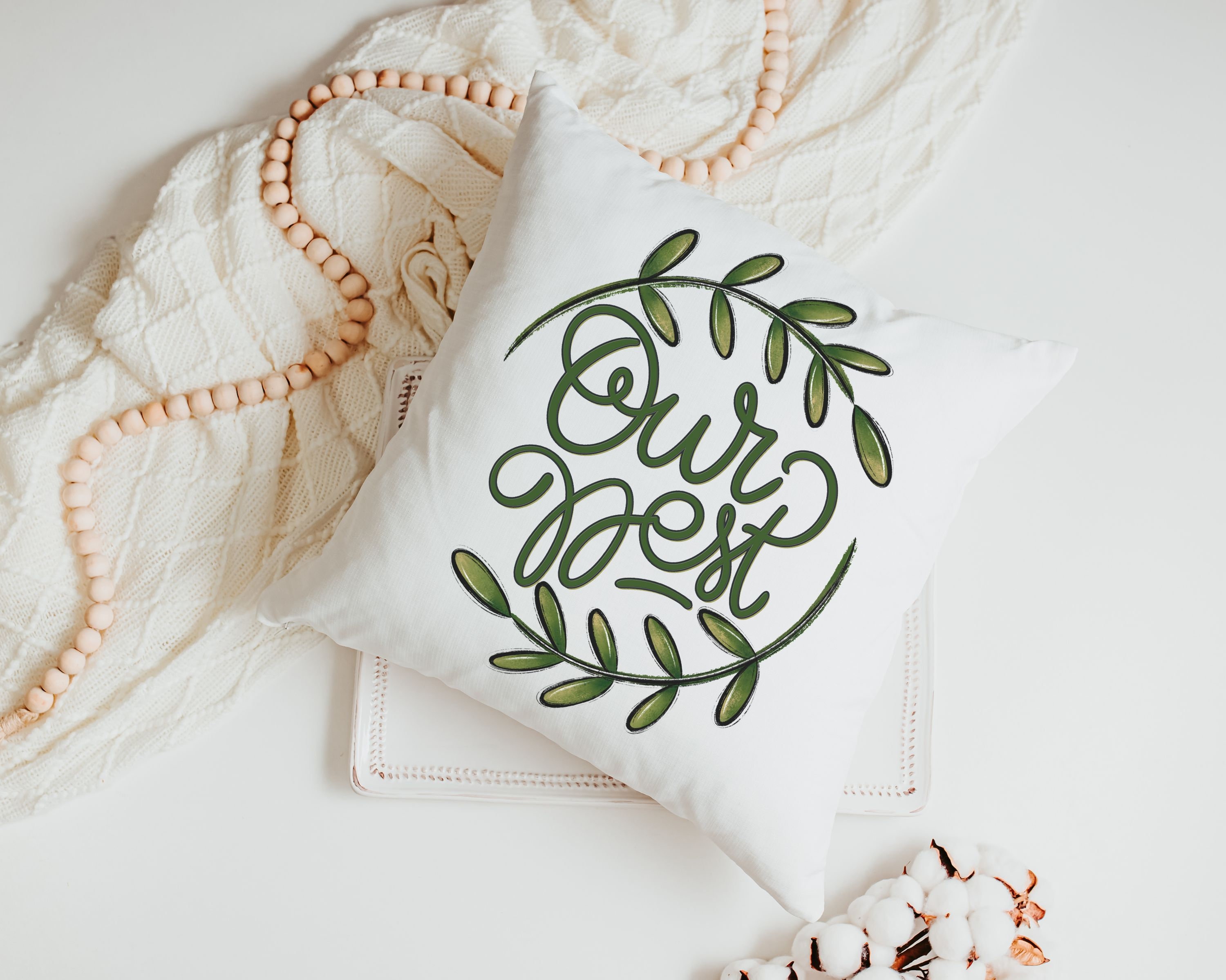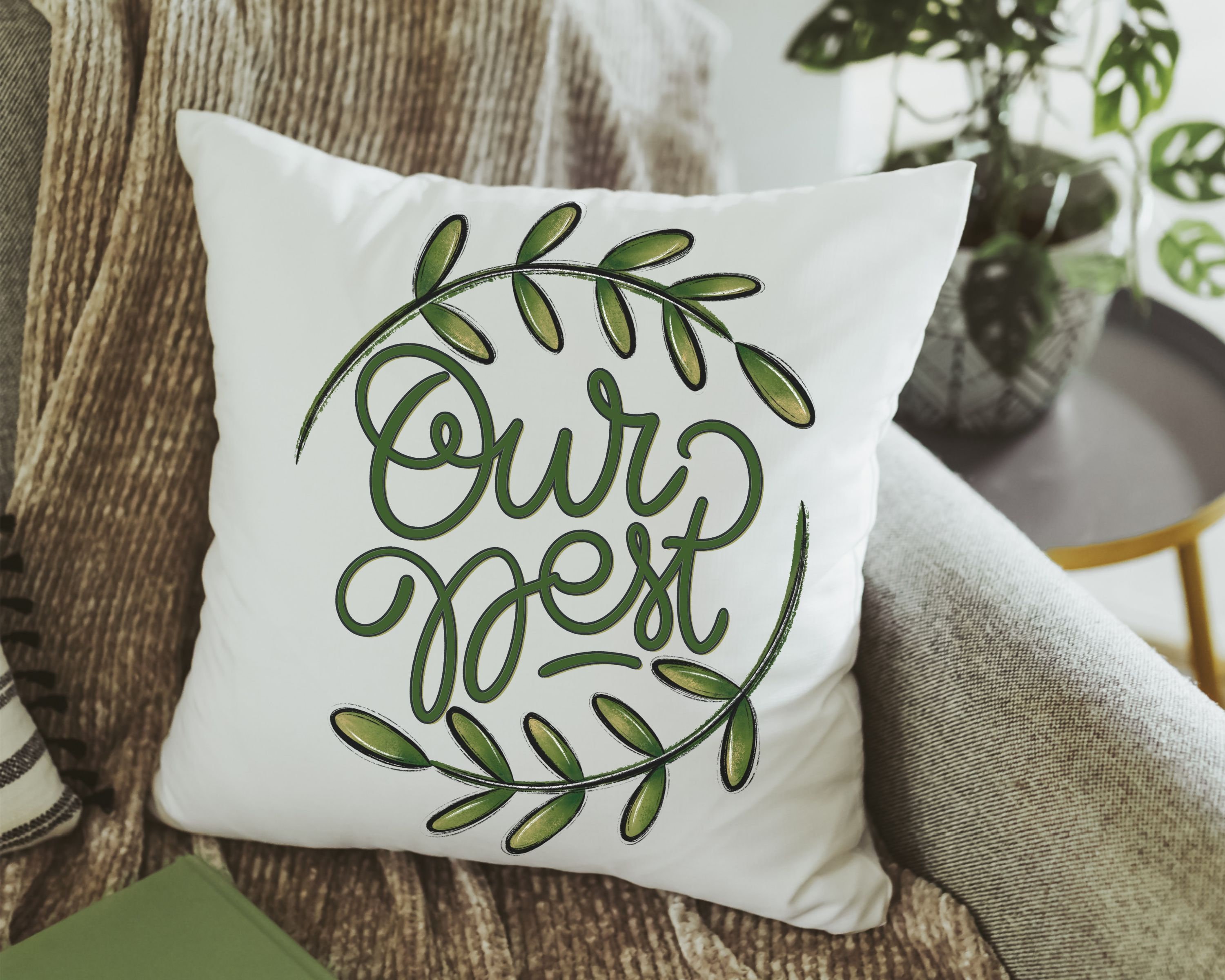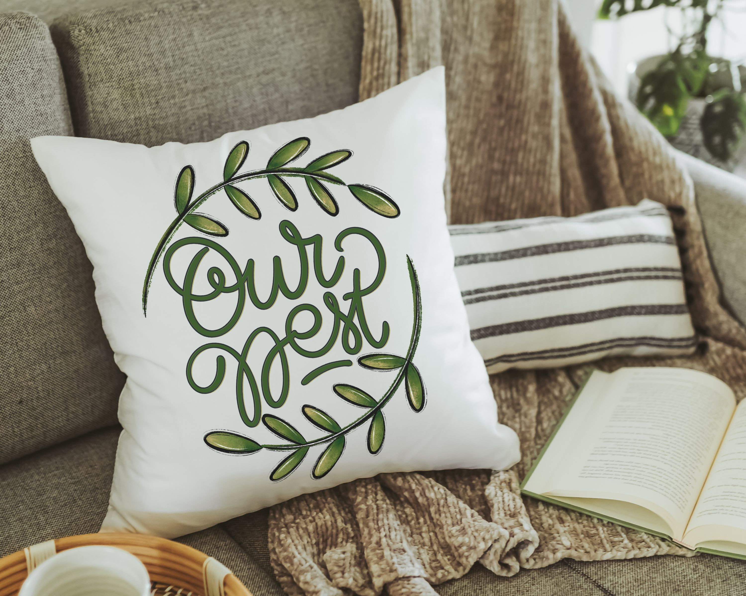 Decorate your home with our "Our Nest" botanical throw pillows and matching towels. This beautiful set is a thoughtful housewarming gift for couples or friends, celebrating their new home or engagement. Each piece can be purchased separately or as a set.