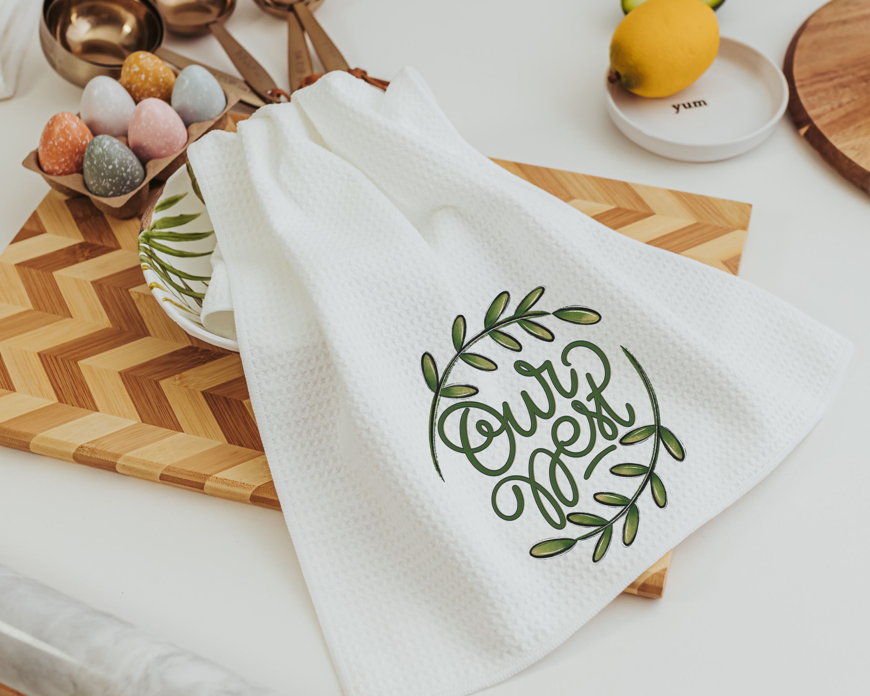 botanical throw pillow for sofa, our nest kitchen towels for friends, new home housewarming gift set for couple, greenery wedding gifts for