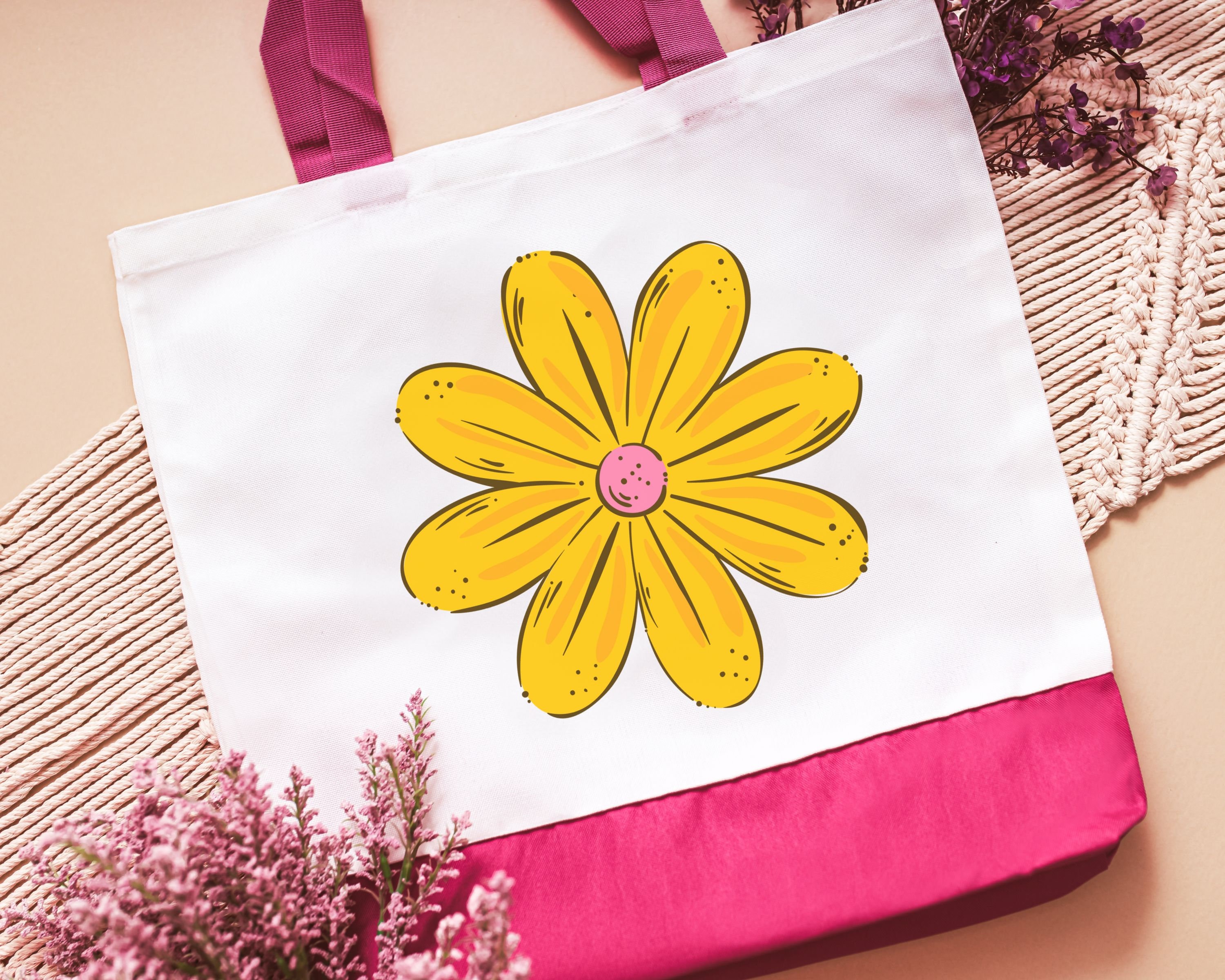 Step out in style with our yellow daisy tote bag, designed for women who appreciate both fashion and functionality. This reusable bag is not just practical; it's a thoughtful gift for teacher appreciation or any young adult who loves a touch of floral charm. Perfect for library trips and carrying books. Make a statement with this beautiful daisy tote.
