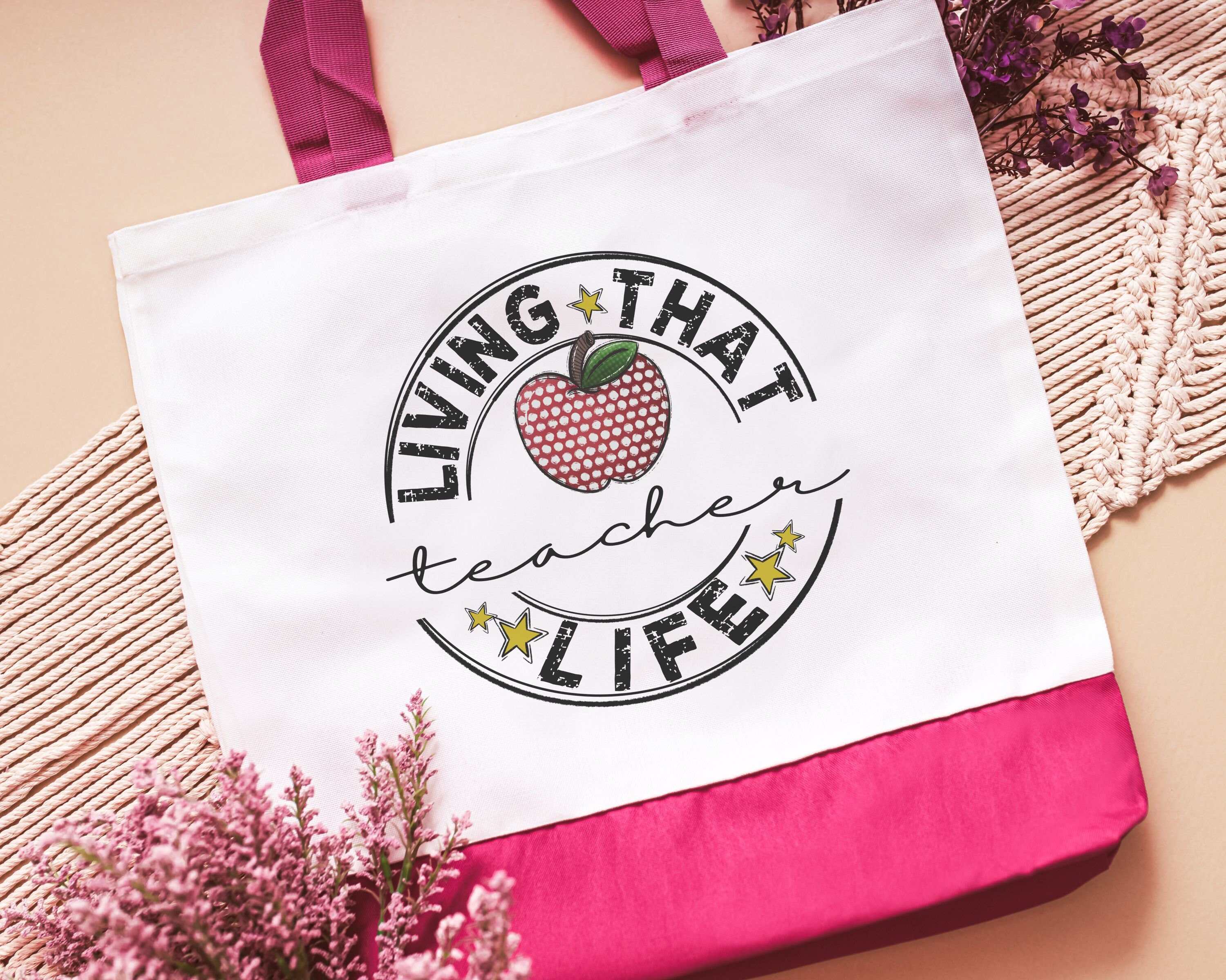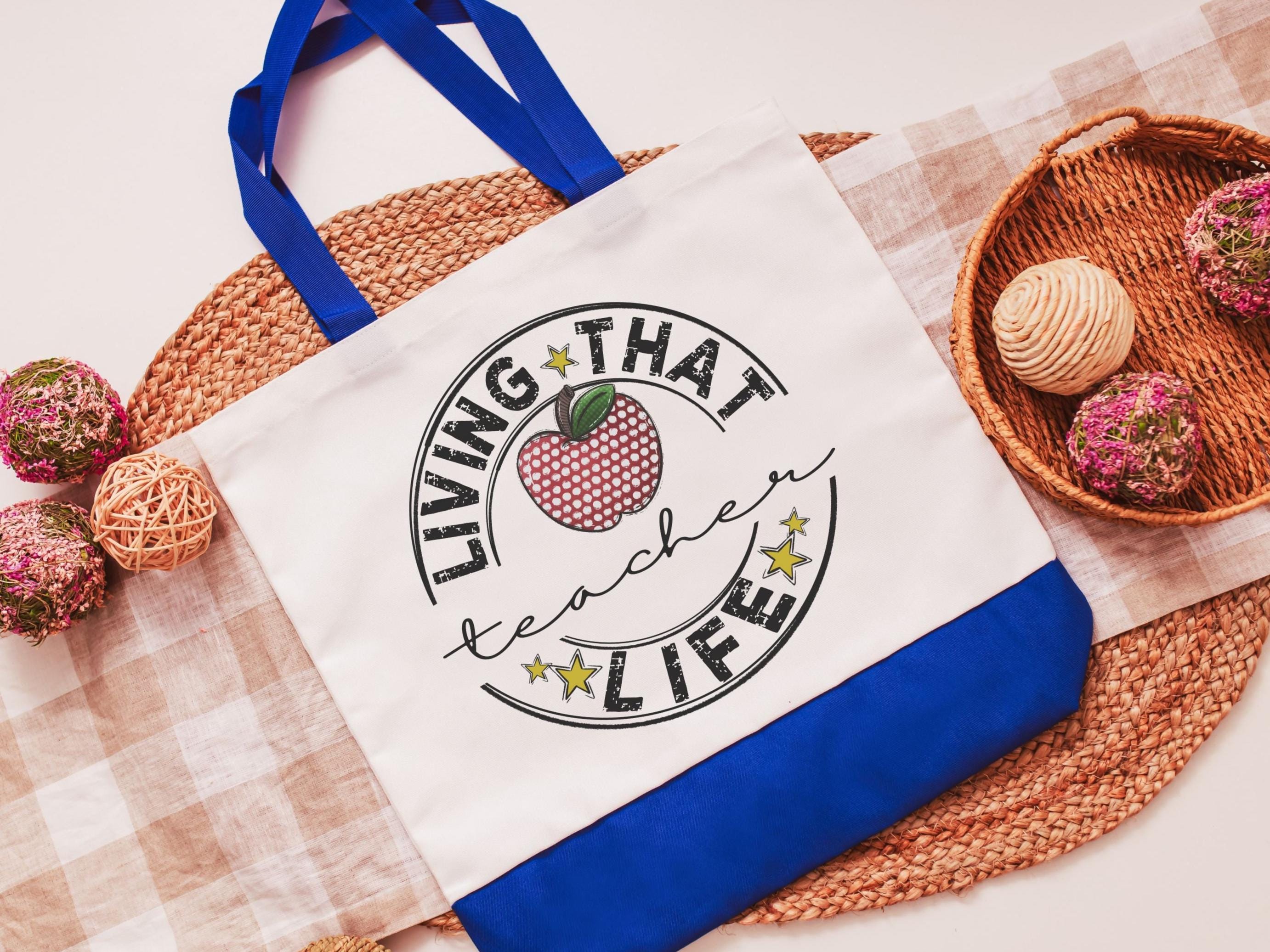 Enjoy the teacher life with our living that teacher life tote bag, perfect for carrying books and essentials with ease. Ideal for the hardworking preschool teacher in your life, this reusable shopping bag makes a thoughtful and eco-friendly gift. Perfect for showing appreciation and adding a touch of style to daily errands.