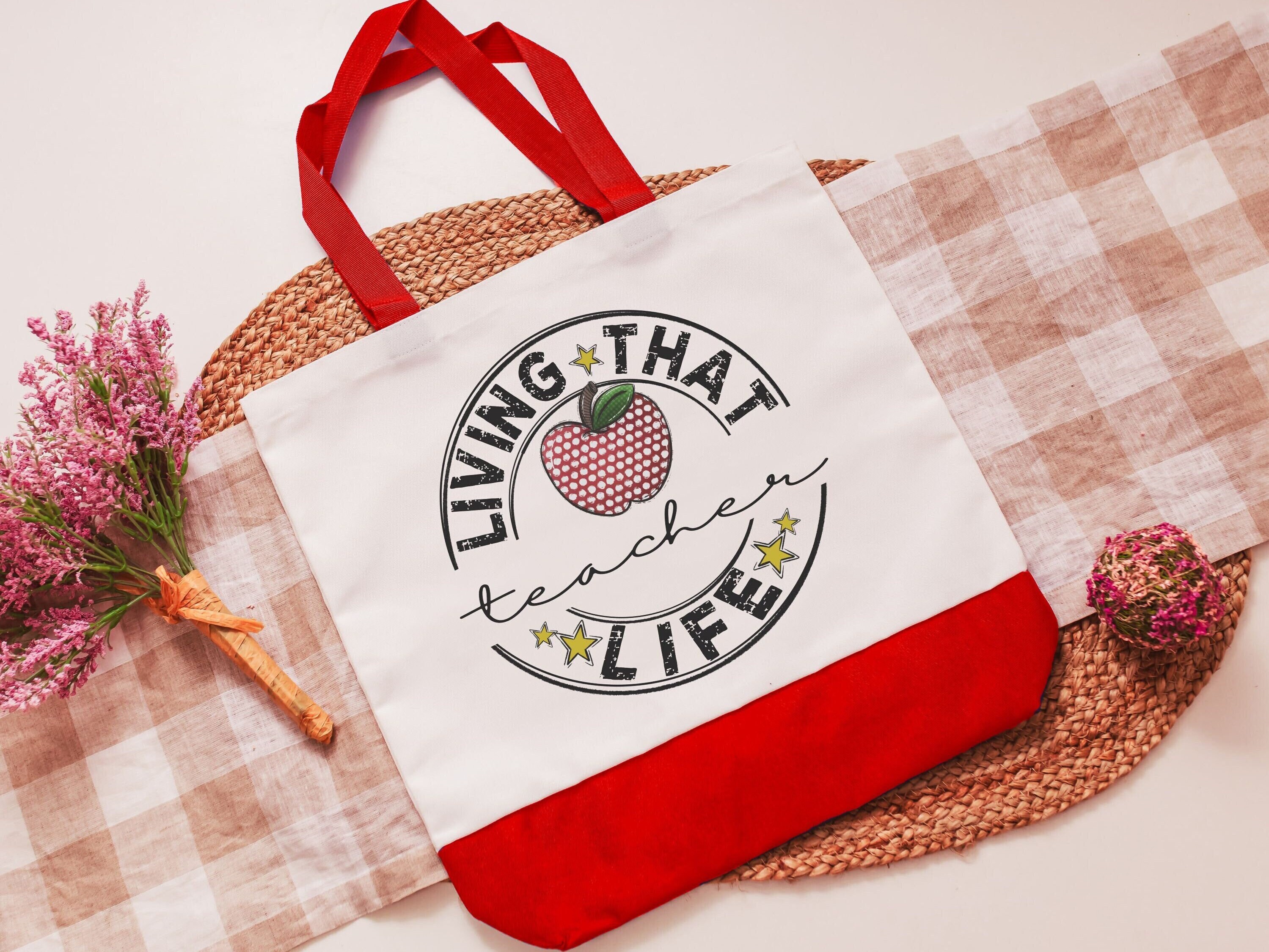 teacher life tote bag for books, cute teacher gifts for her, reusable shopping bag, preschool teacher appreciation gifts for women, eco