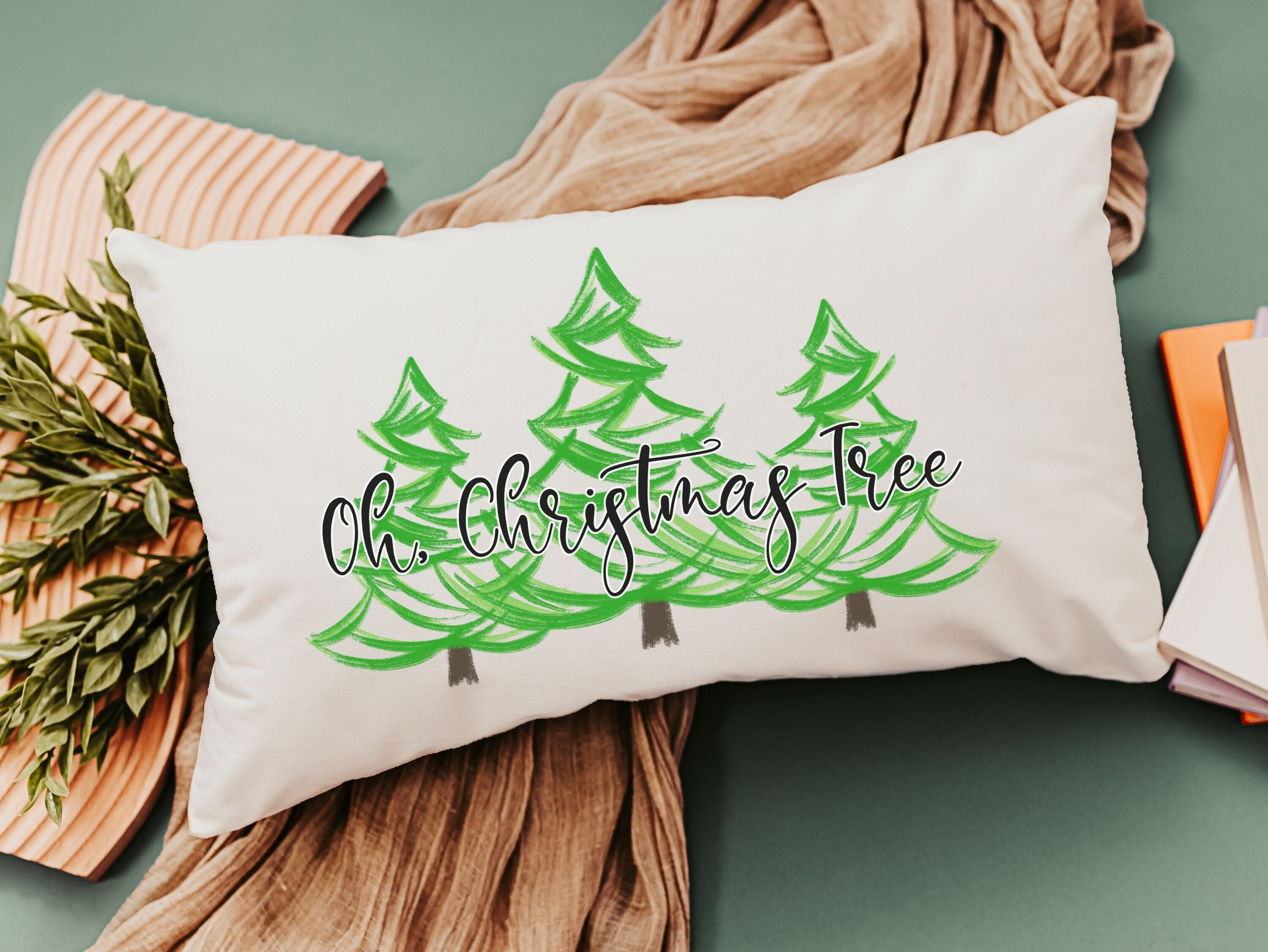 oh Christmas tree lumbar throw pillows for couch, whimsical Christmas lumbar pillows for chair, cute Christmas housewarming gift for couple