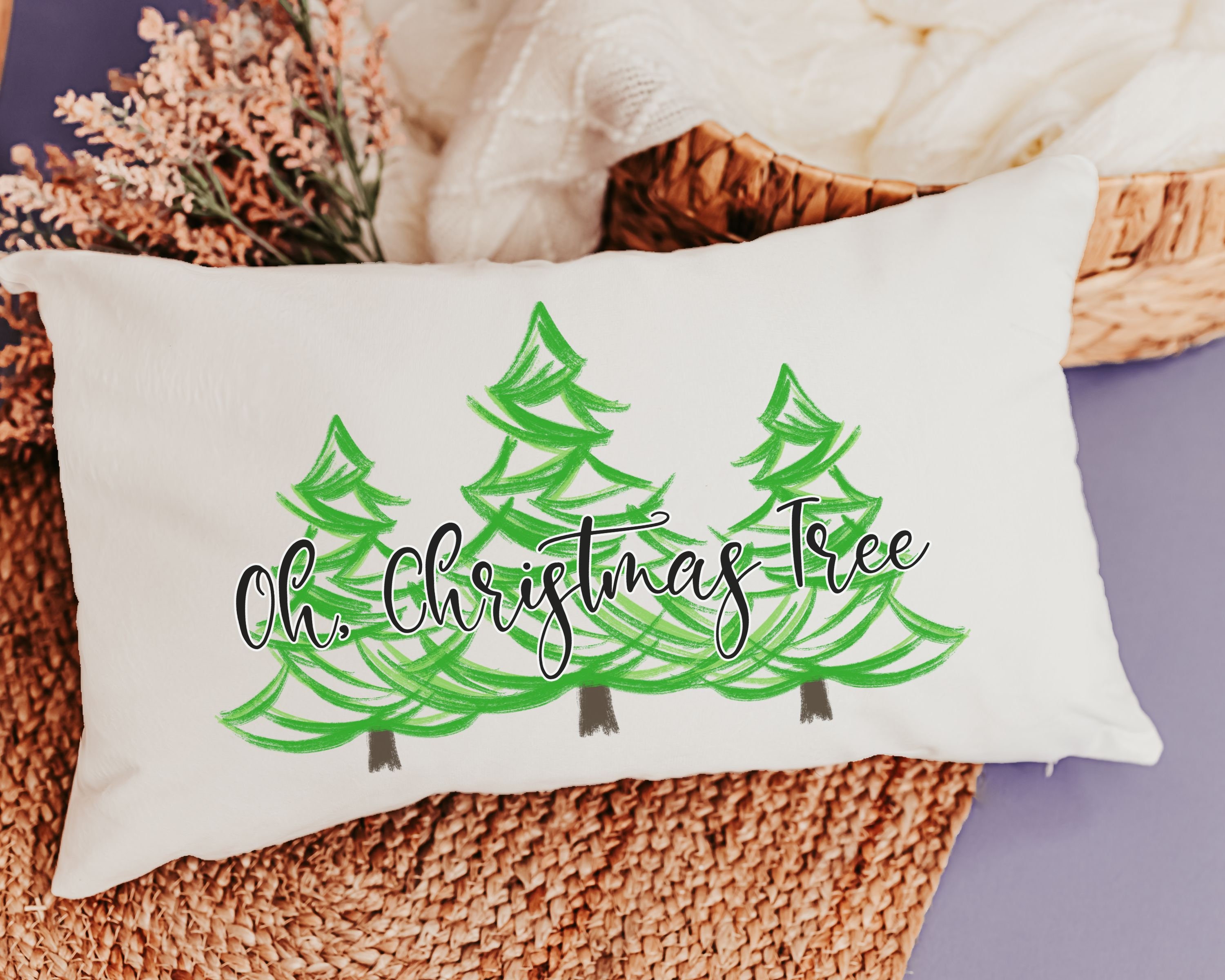 Bring festive charm to your home with our "Oh Christmas Tree" Lumbar Throw Pillows, perfect for the couch or chair. These whimsical Christmas pillows make a cute housewarming gift for couples or Christmas gifts for new homeowners. Ideal for adding holiday cheer, they also make thoughtful hostess gifts for the season!