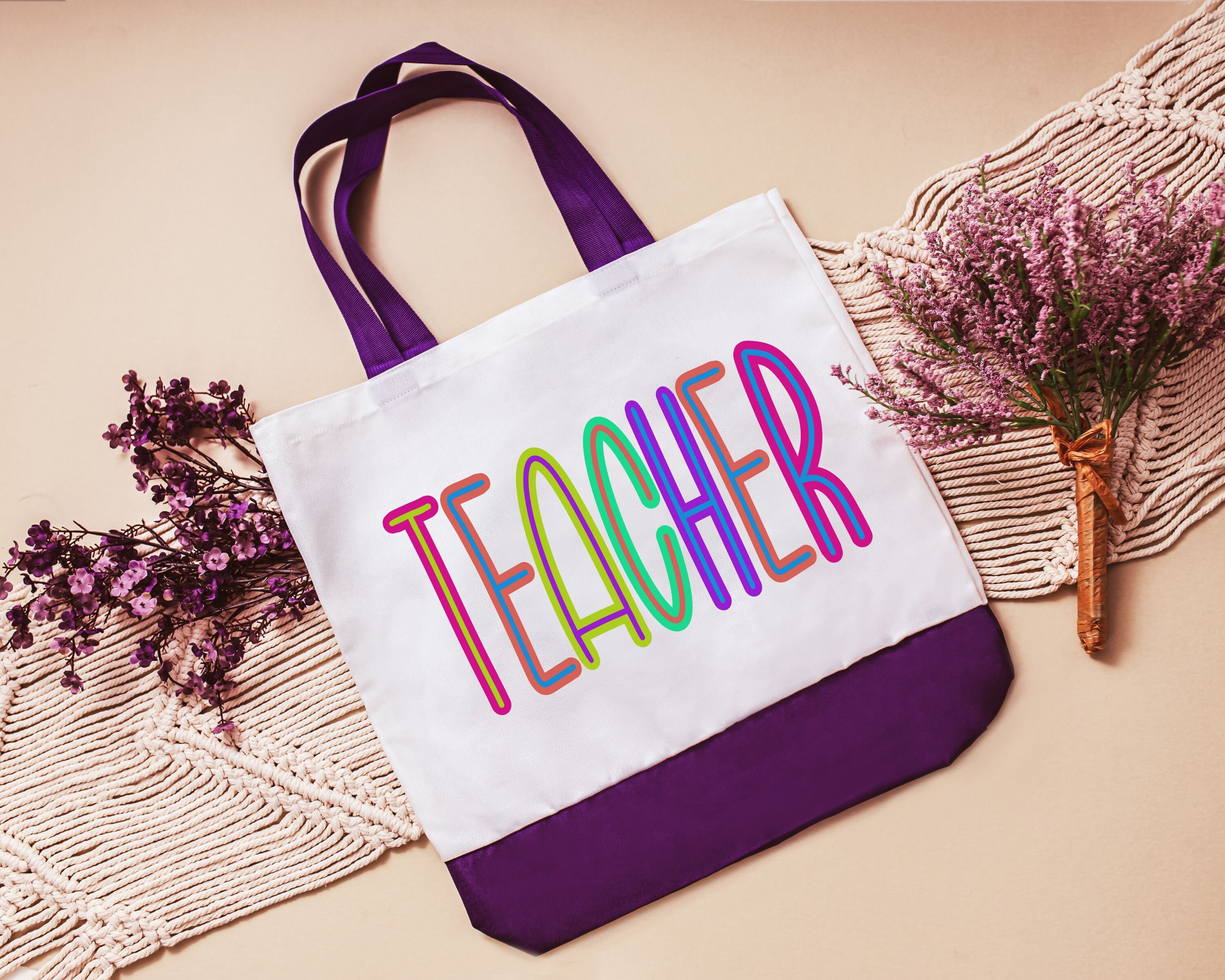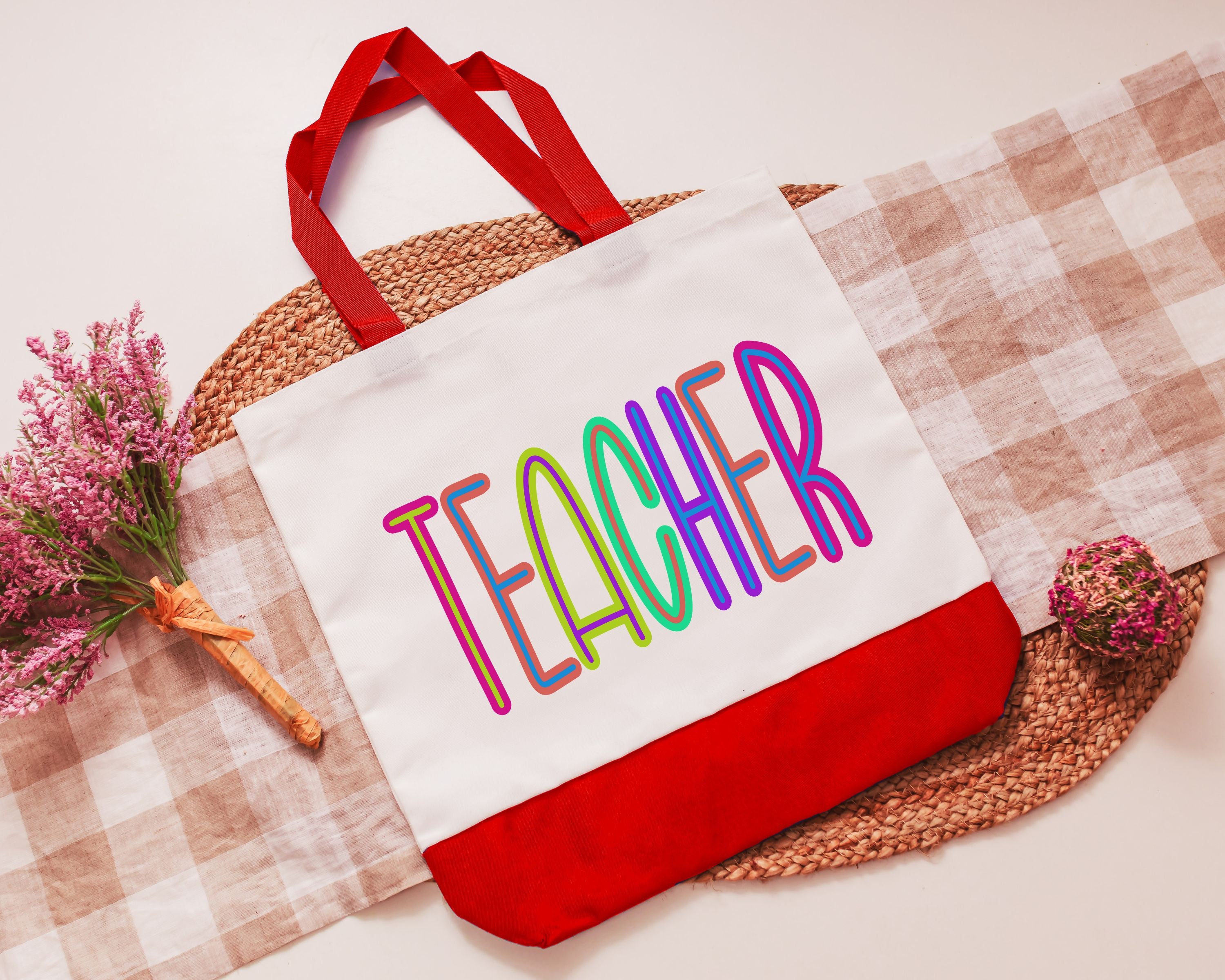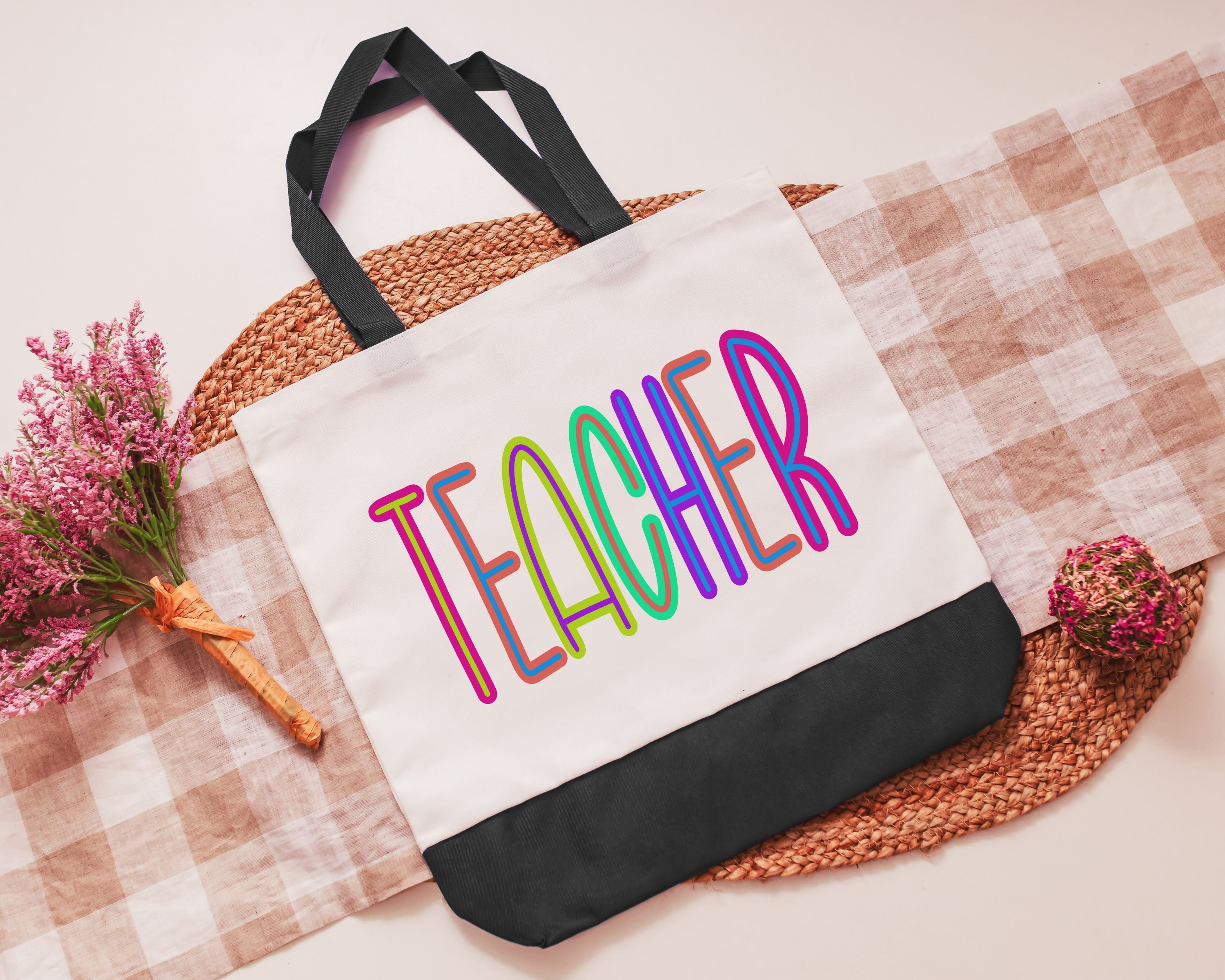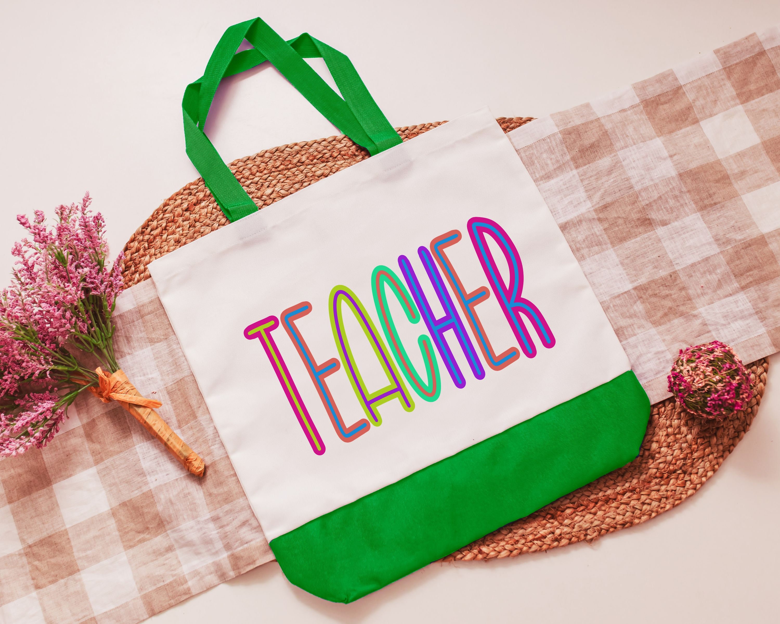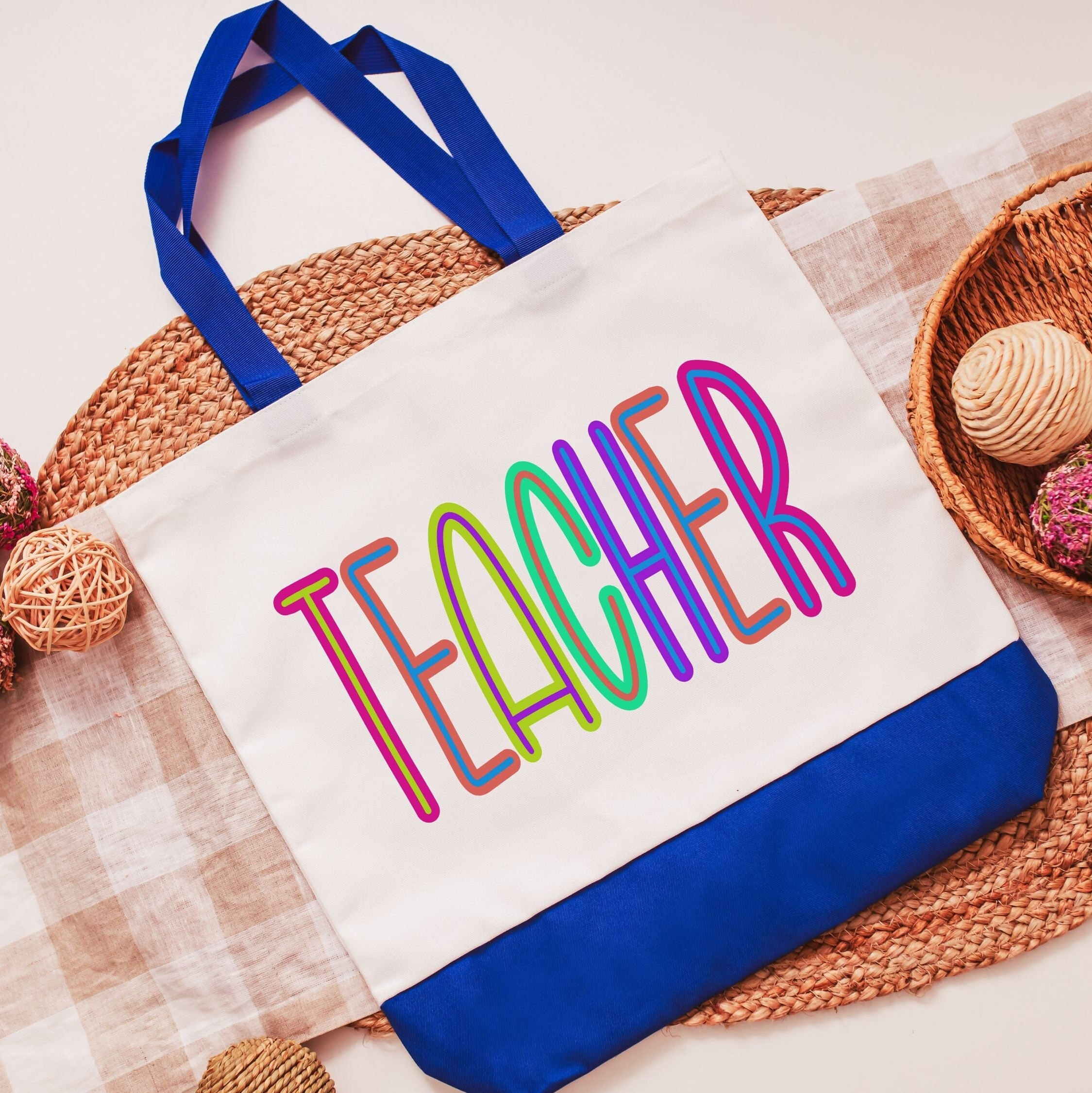 cute teacher tote bag for books, best gifts for teacher appreciation gifts from students, neon tote bag for school, preschool teacher gifts