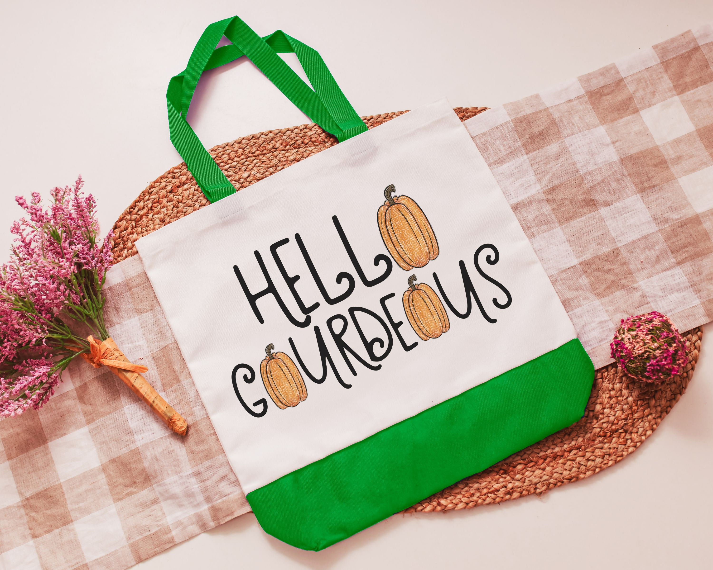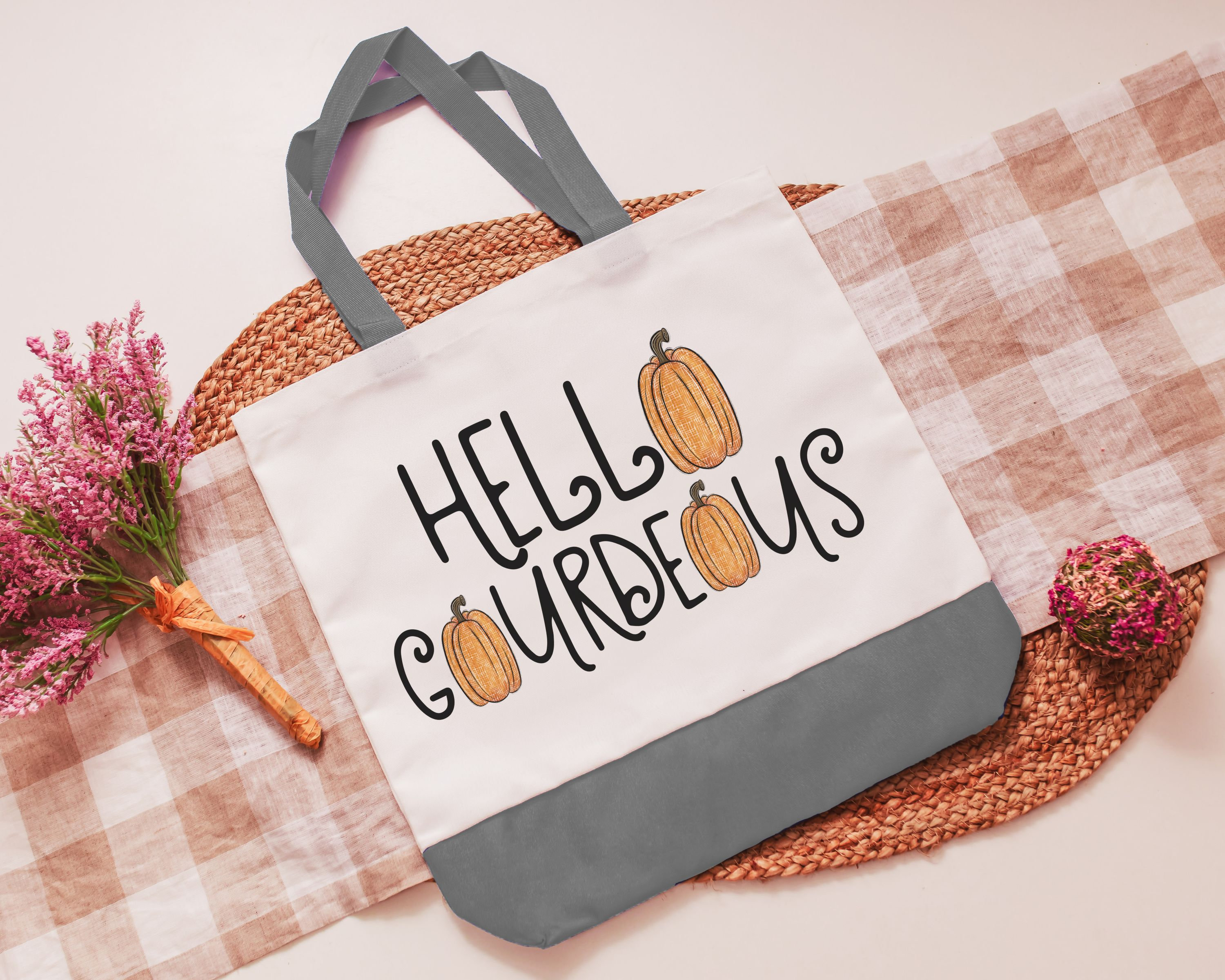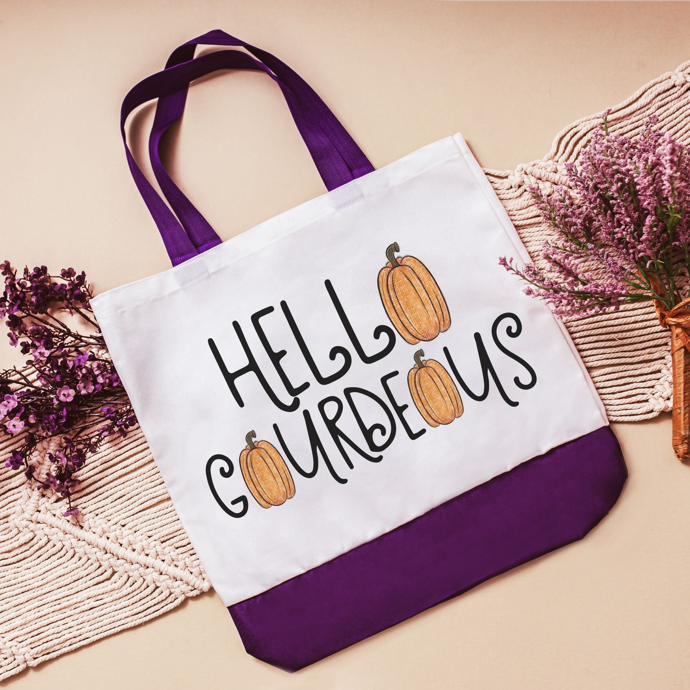 hello gourdgeous pumpkin tote bag for women, fall style gift, boo basket stuffers for teens, fall host gift, Halloween candy bag for adults