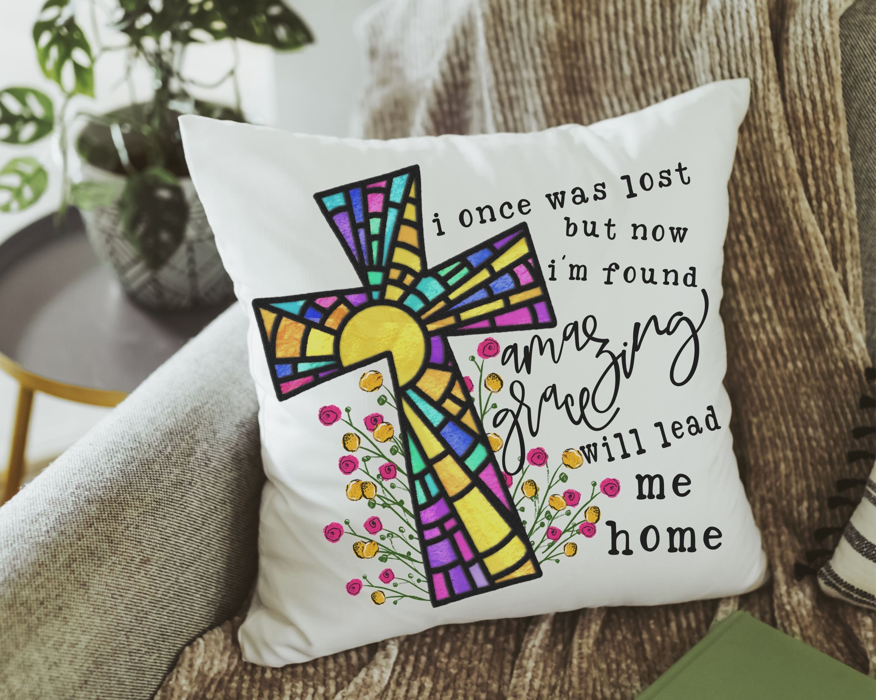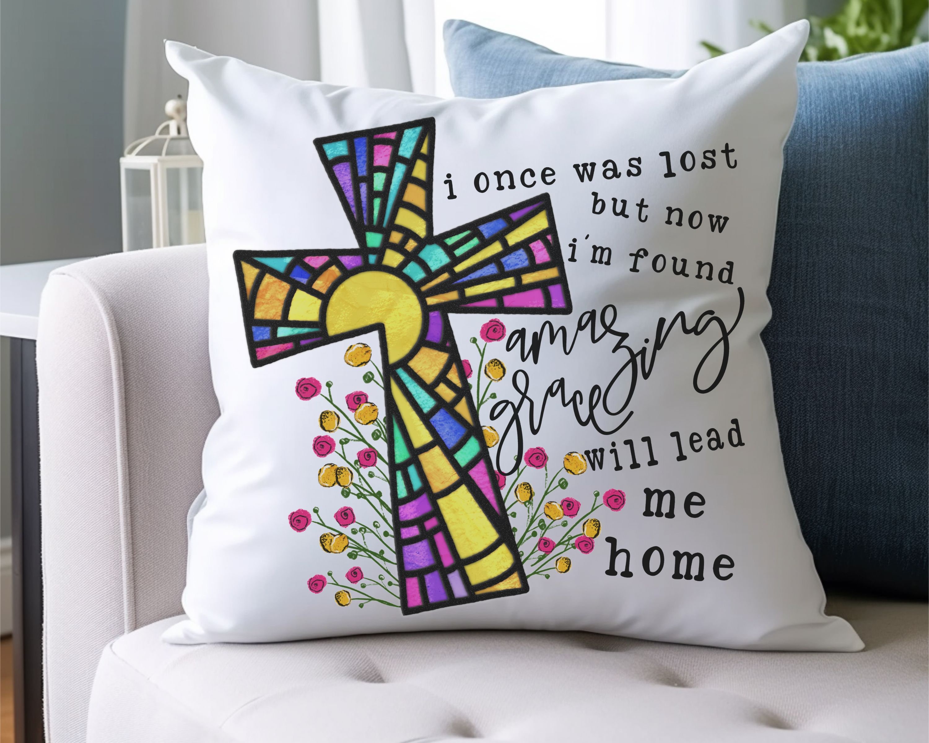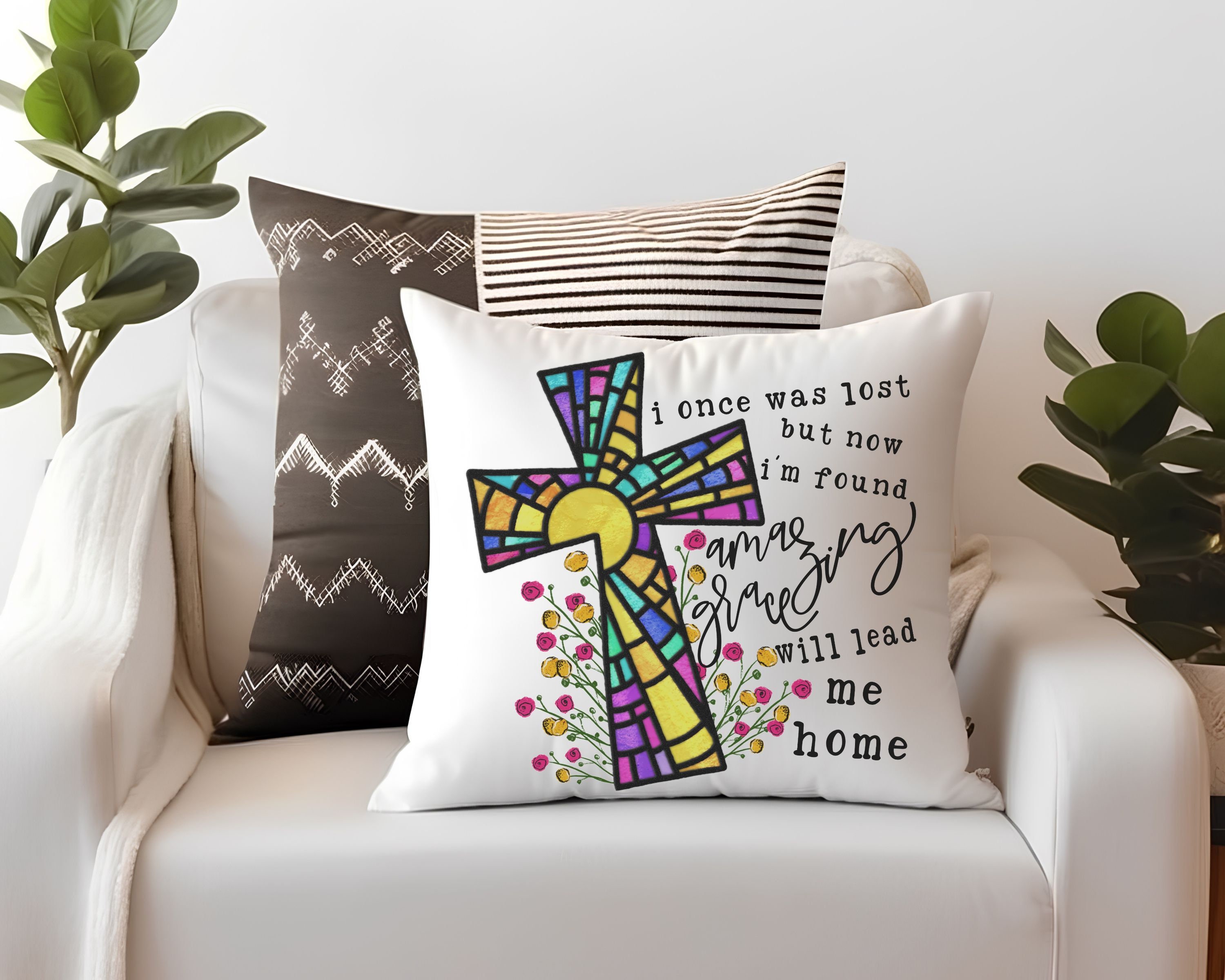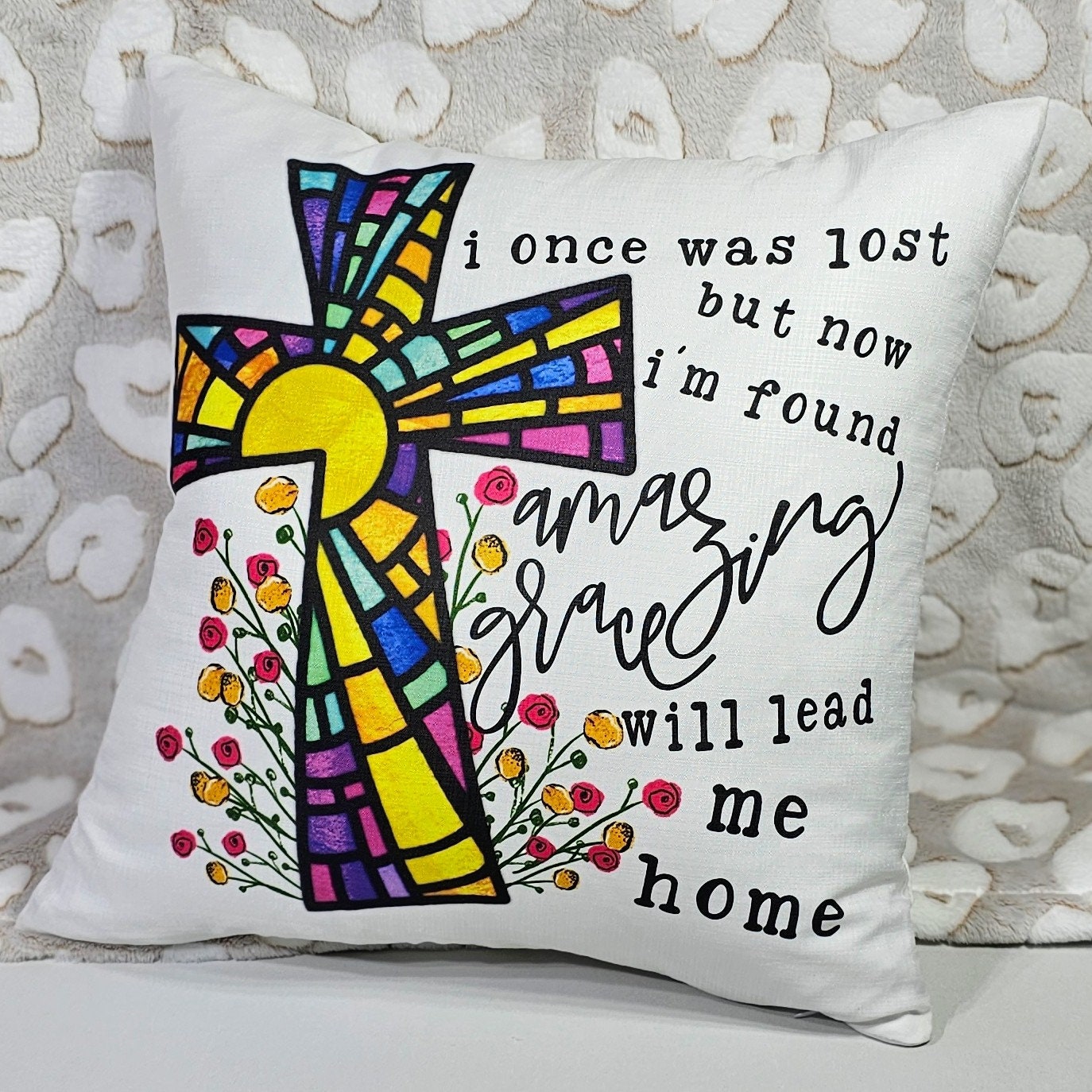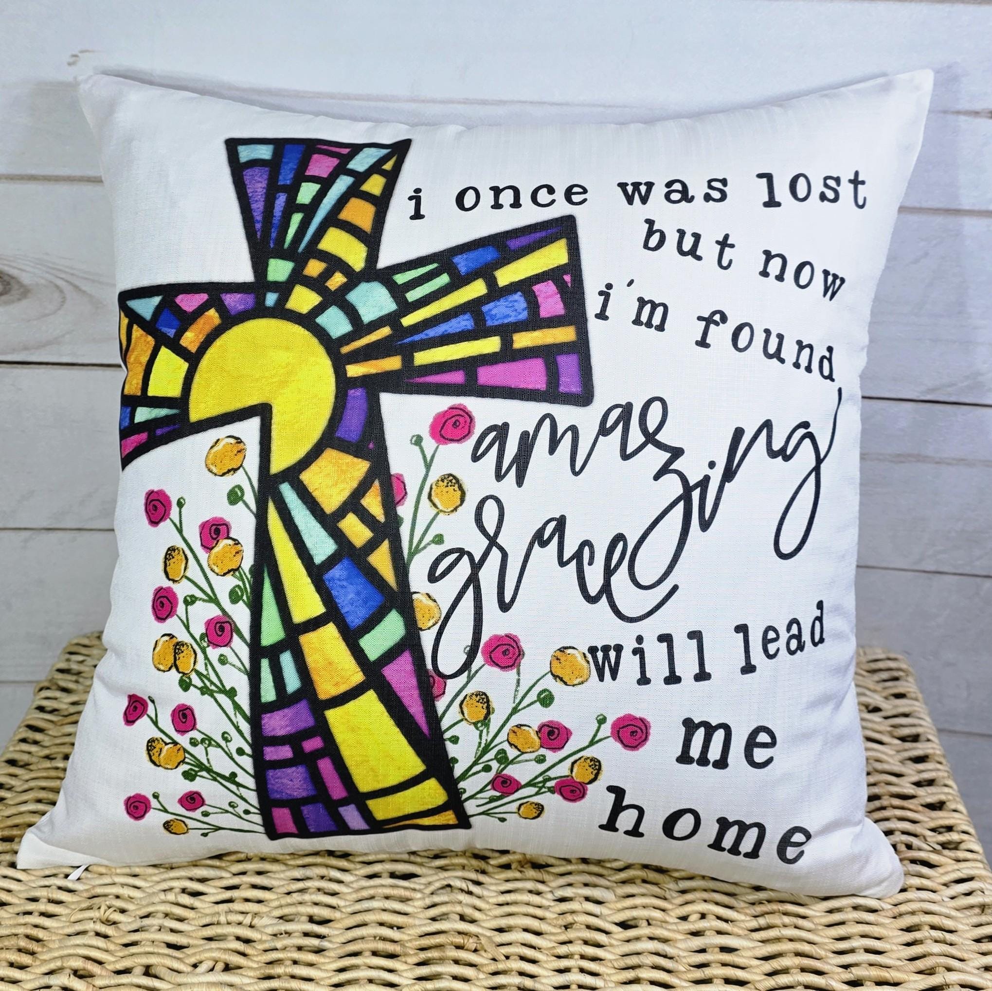 amazing grace floral decorative pillows for bed, Christian gifts for women sisters in Christ, stained glass cross throw pillows for couch