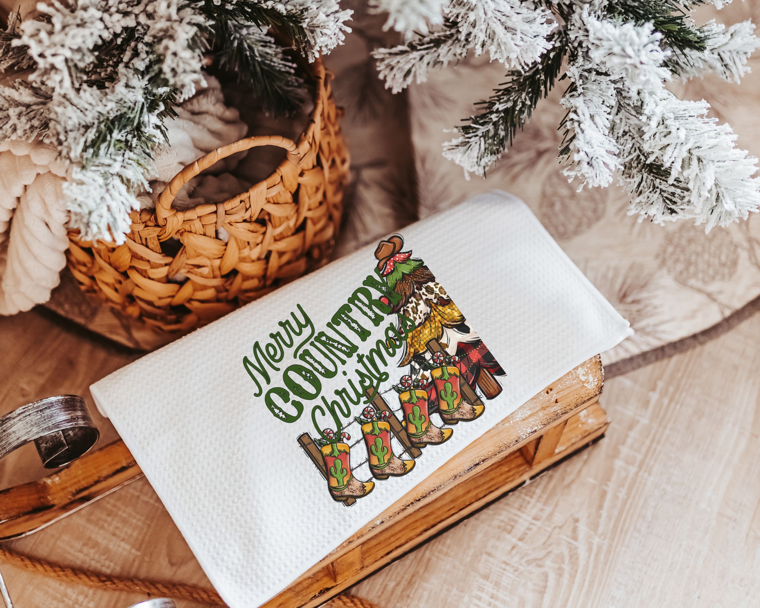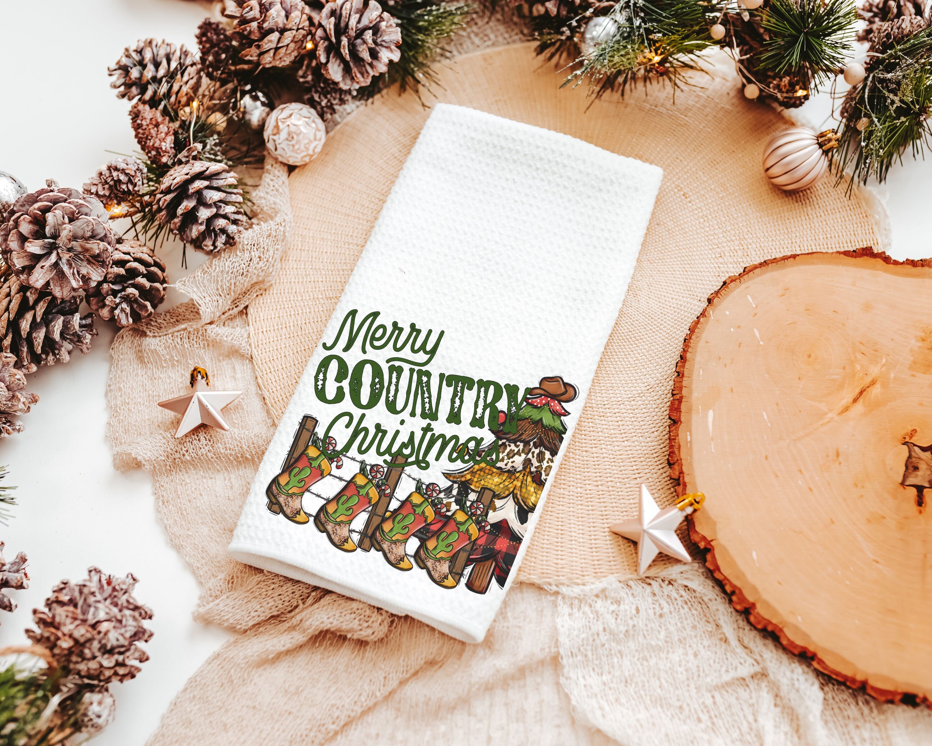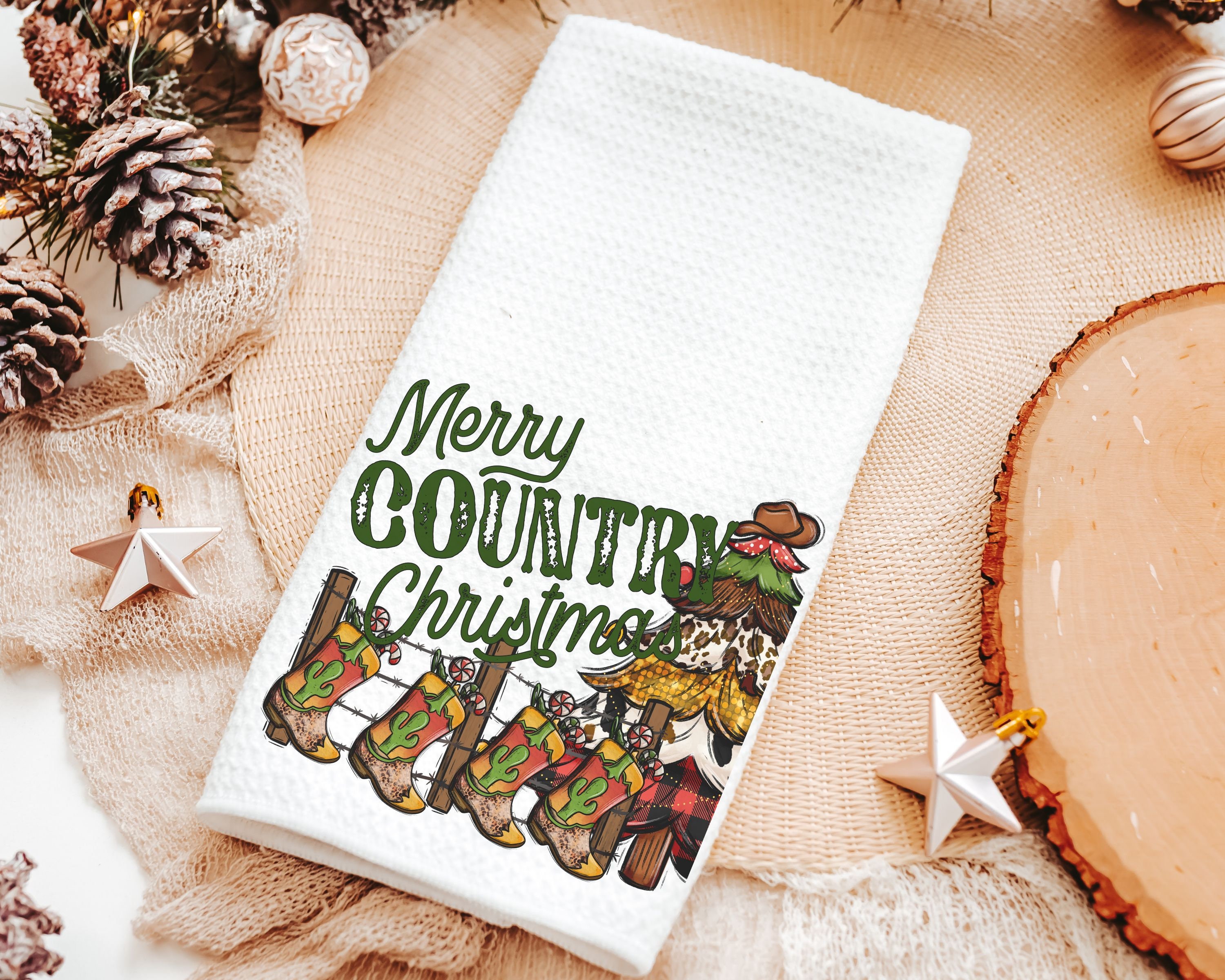merry country Christmas throw pillows for sofa, cowboy Christmas tree Christmas kitchen towels, western Christmas decor for home, hostess