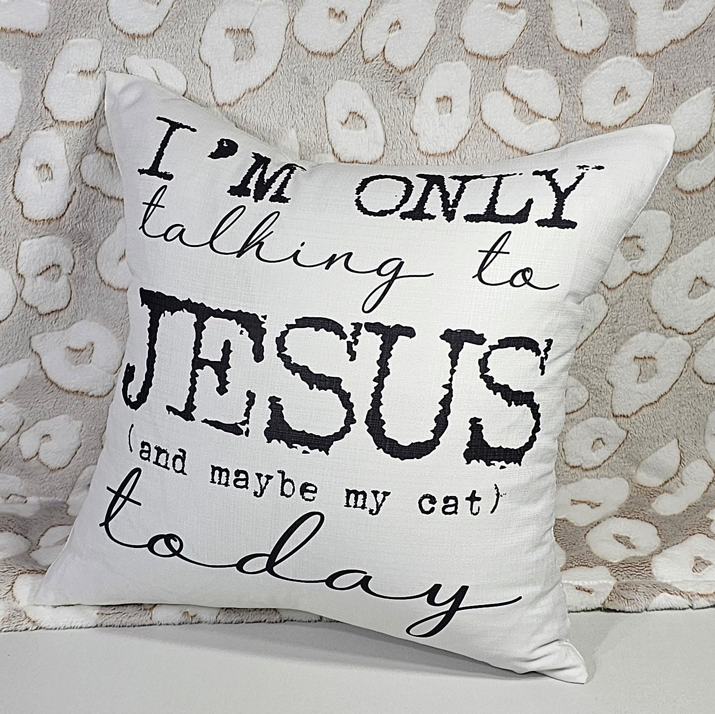 I'm only talking to Jesus today Christian throw pillow for chair, cute Christmas gifts for cat lovers, funny cat throw pillow covers 18x18