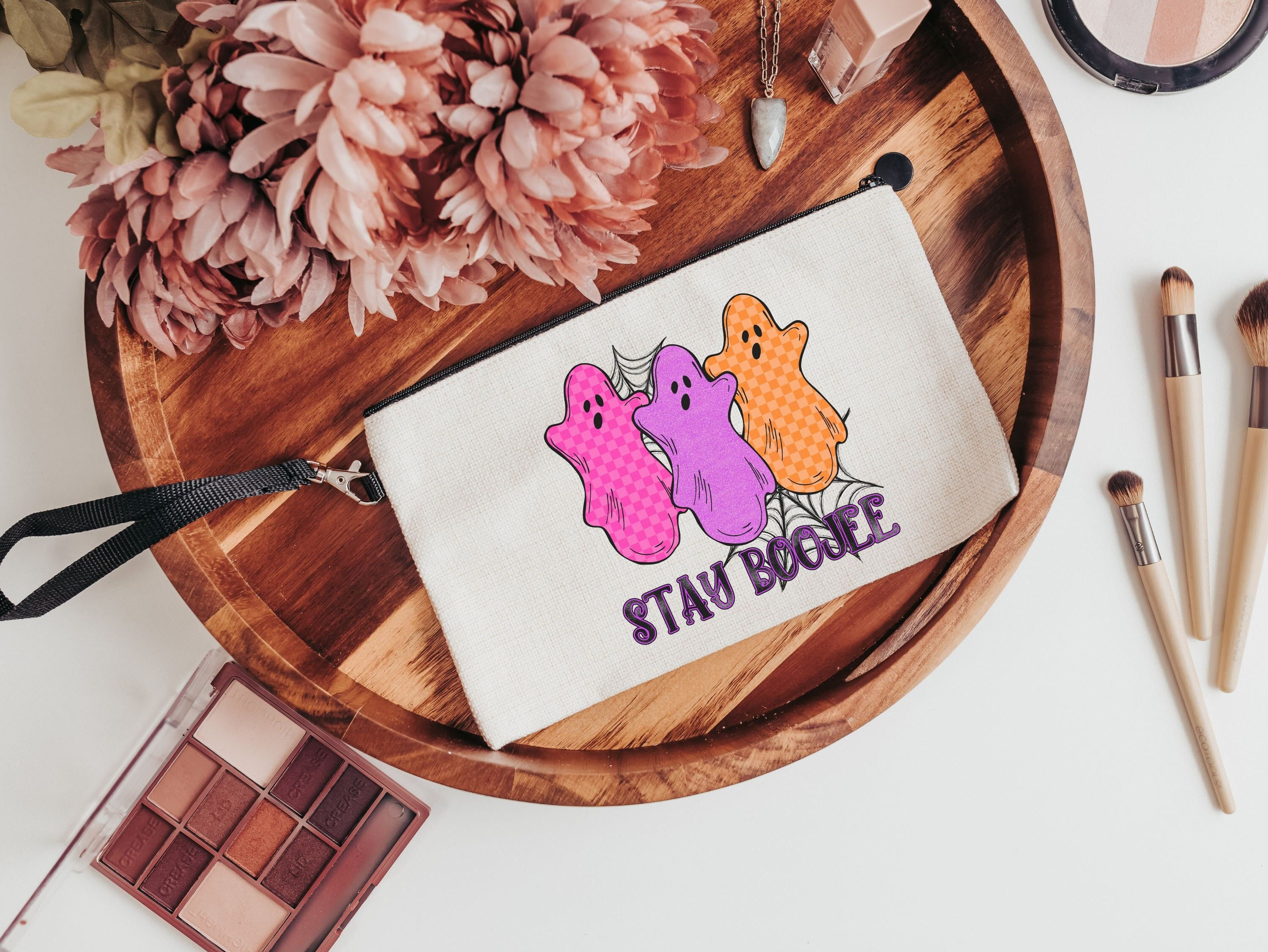 stay boojee trendy Halloween makeup bag cute ghost cosmetic bag for purse, Halloween gifts for tweens, October birthday gifts for her, hot