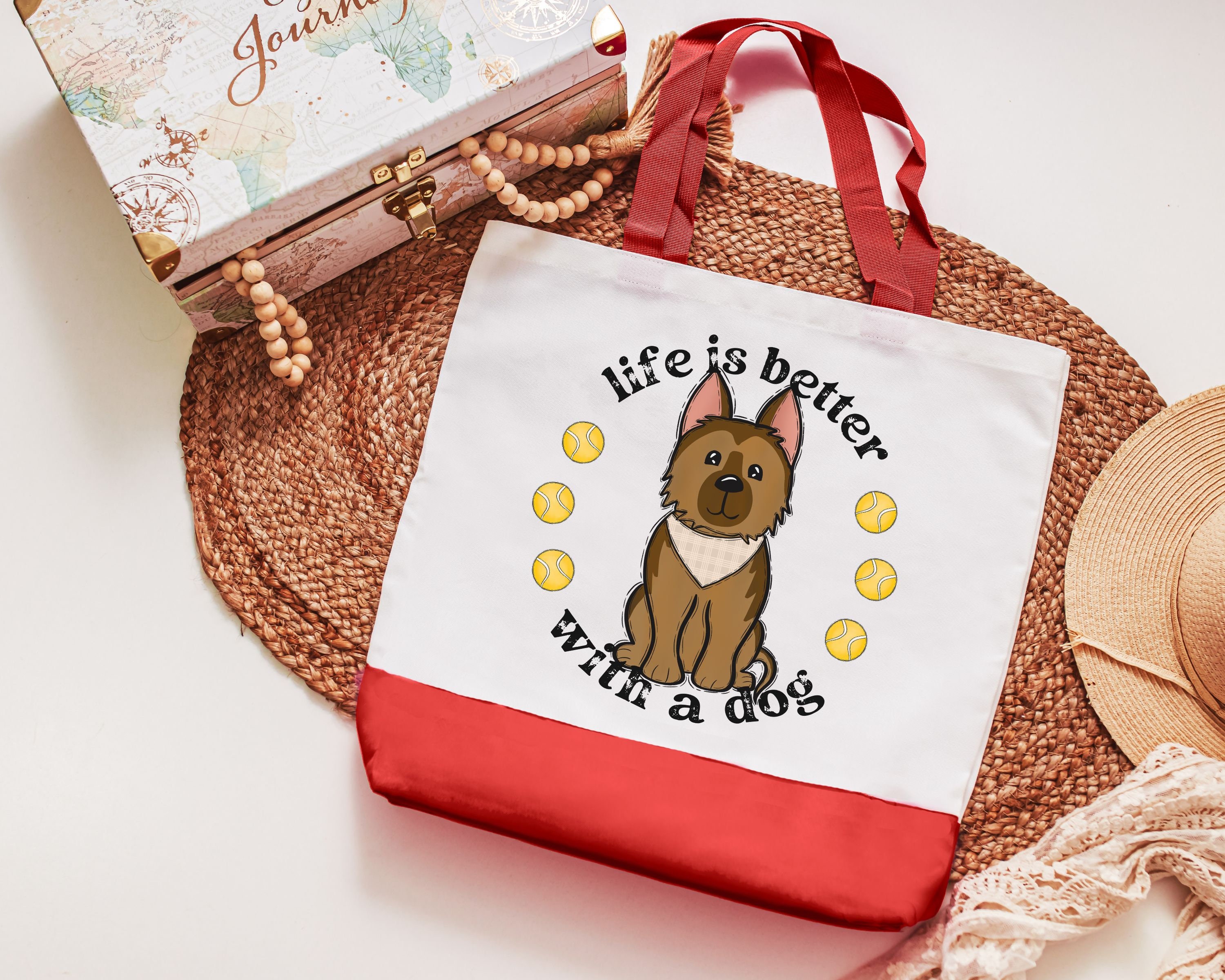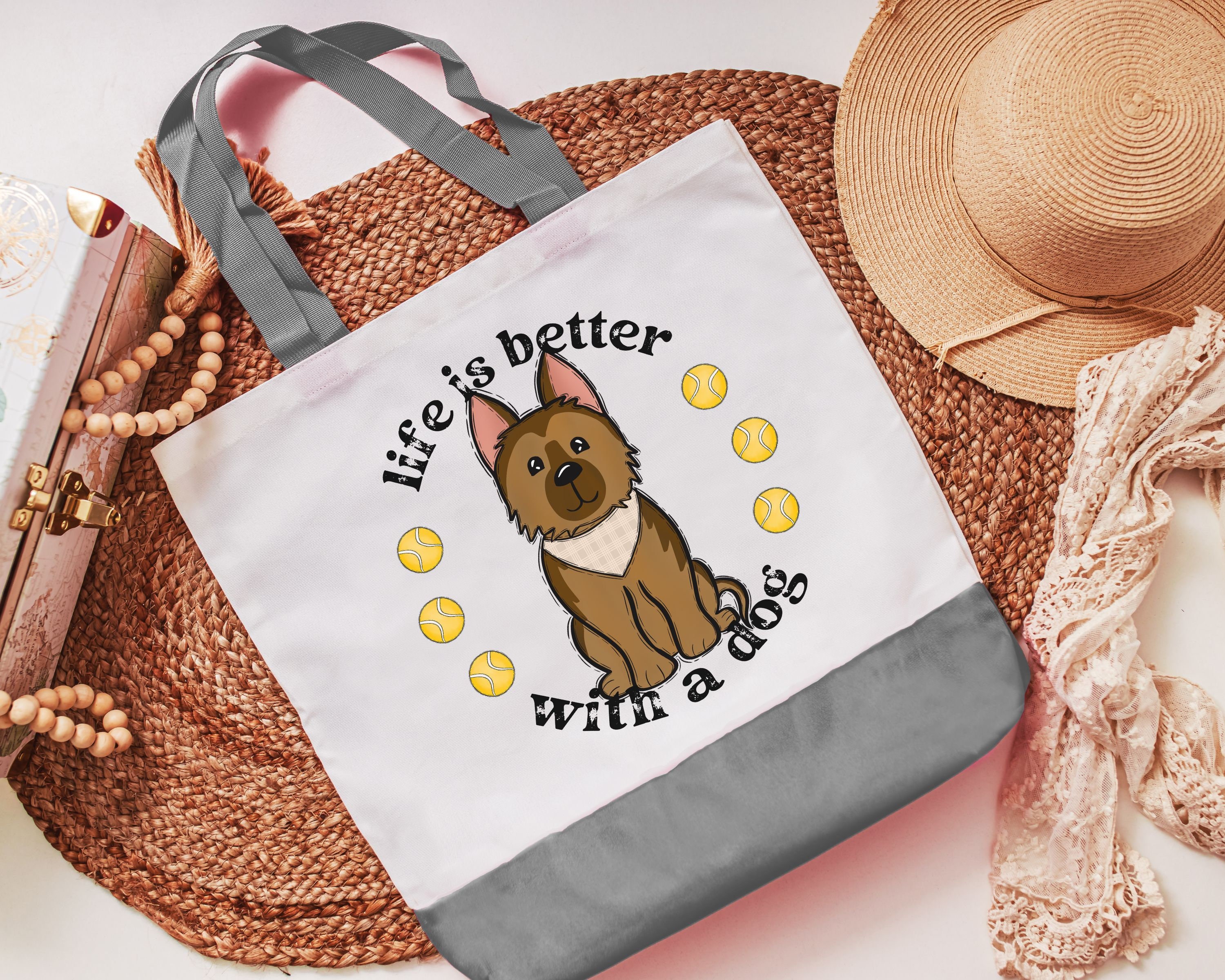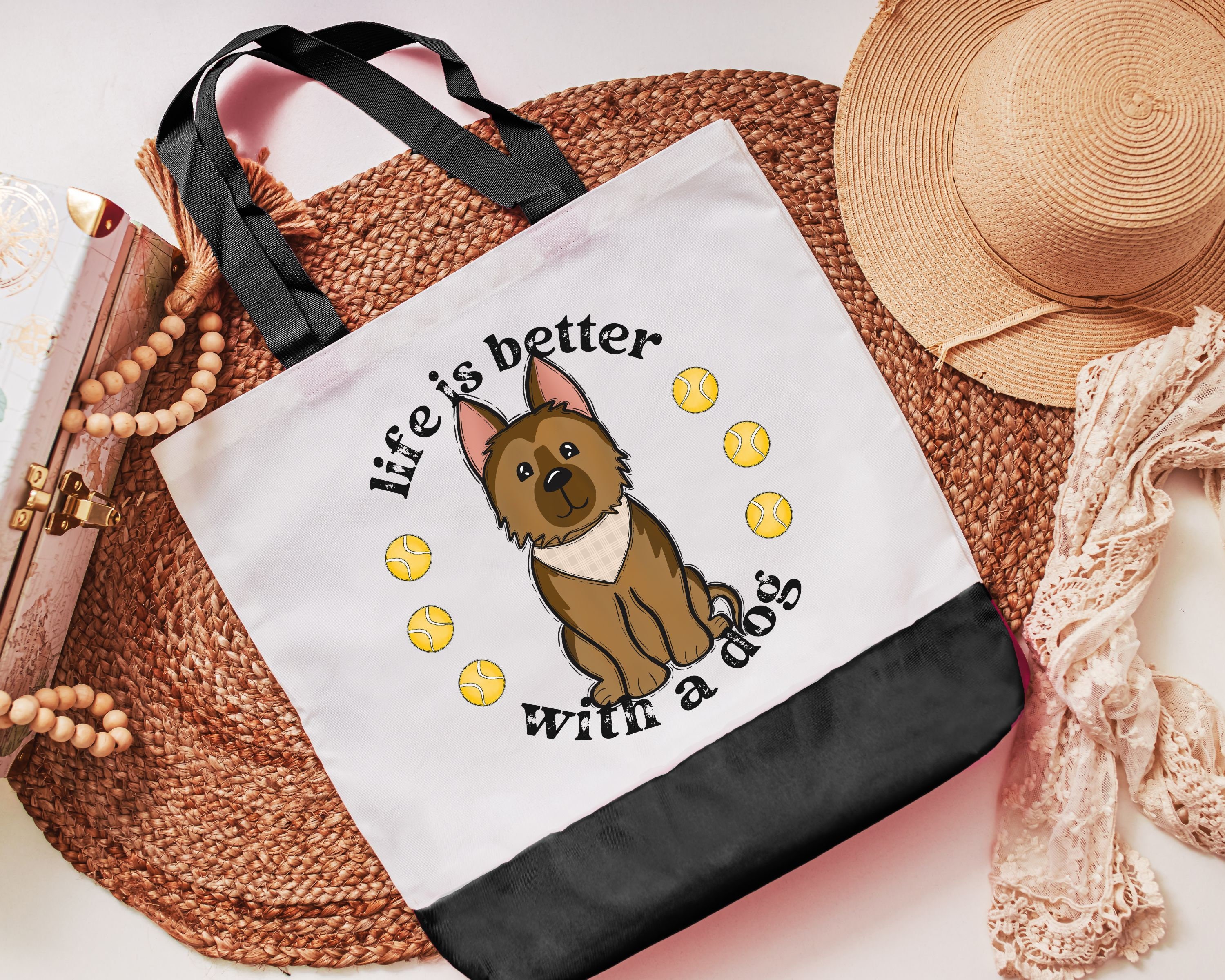 life is better with dogs German Shepherd tote bag for women, stocking stuffers for dog mom Christmas gifts for dog owners, GSD mom dog lover
