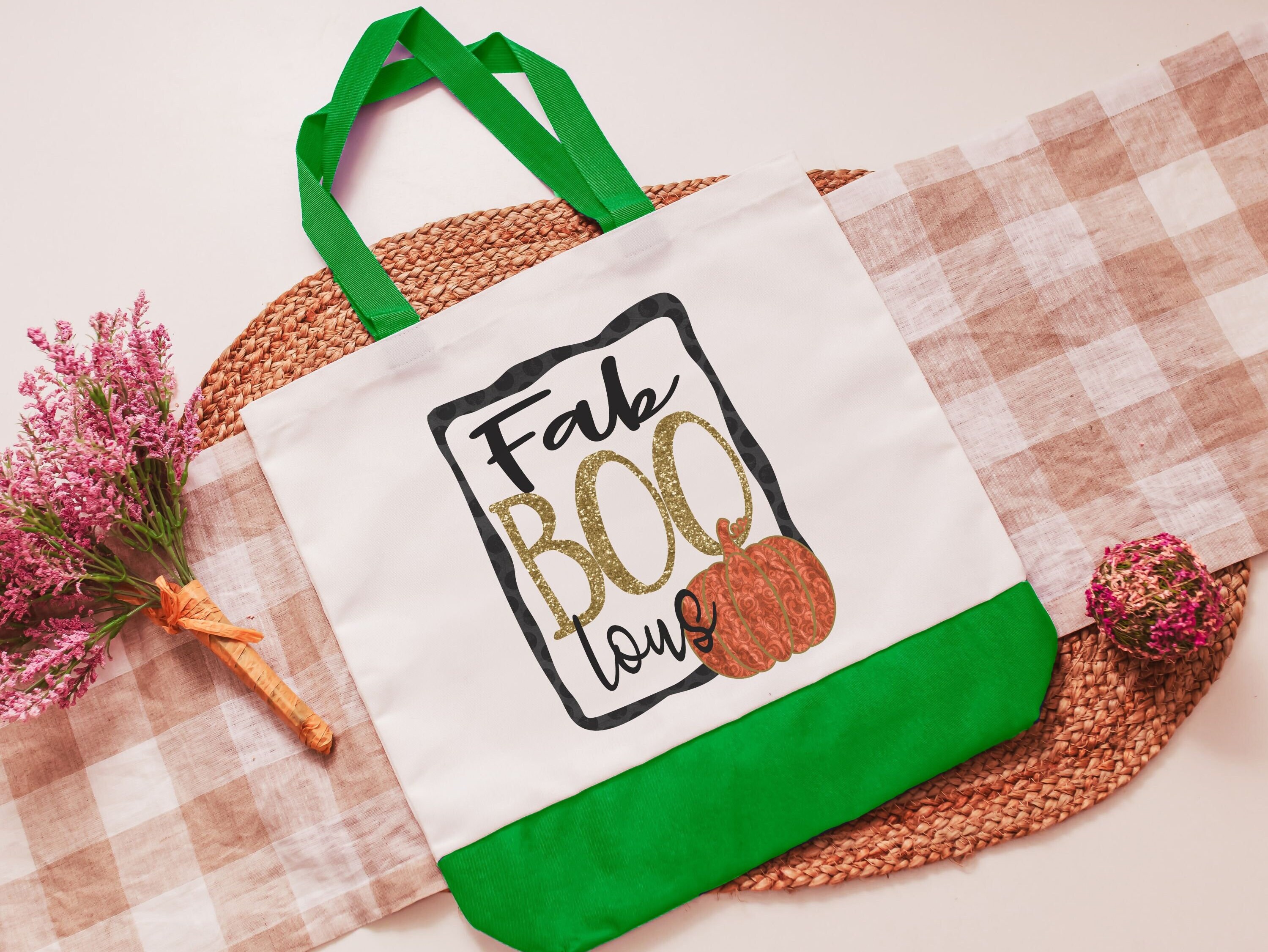 fab boo lous cute Halloween tote bag for women, trick or treat bag for girls, funny Halloween gifts for adults, eco friendly gifts, reusable