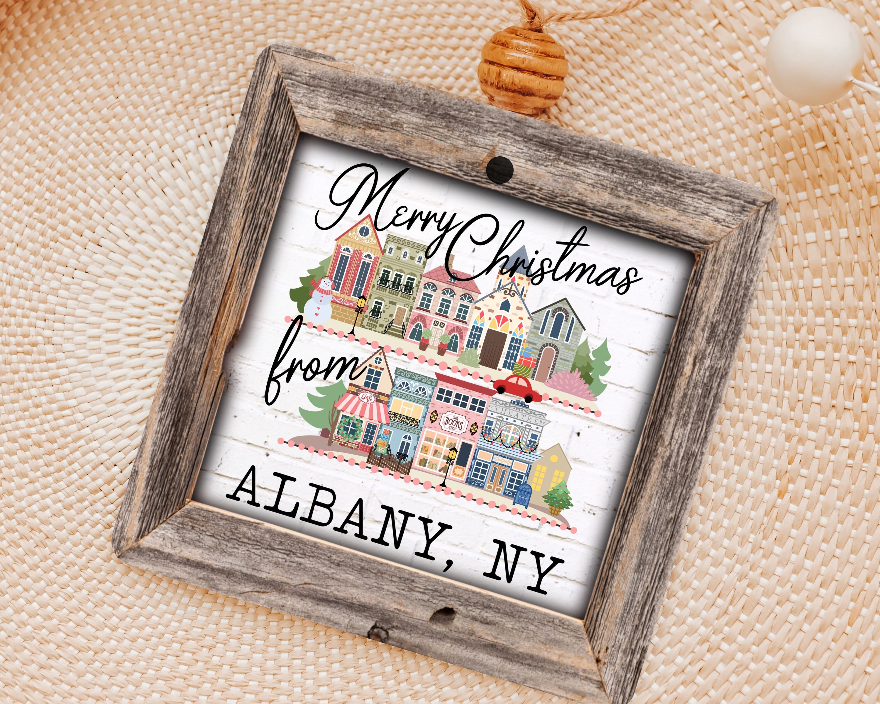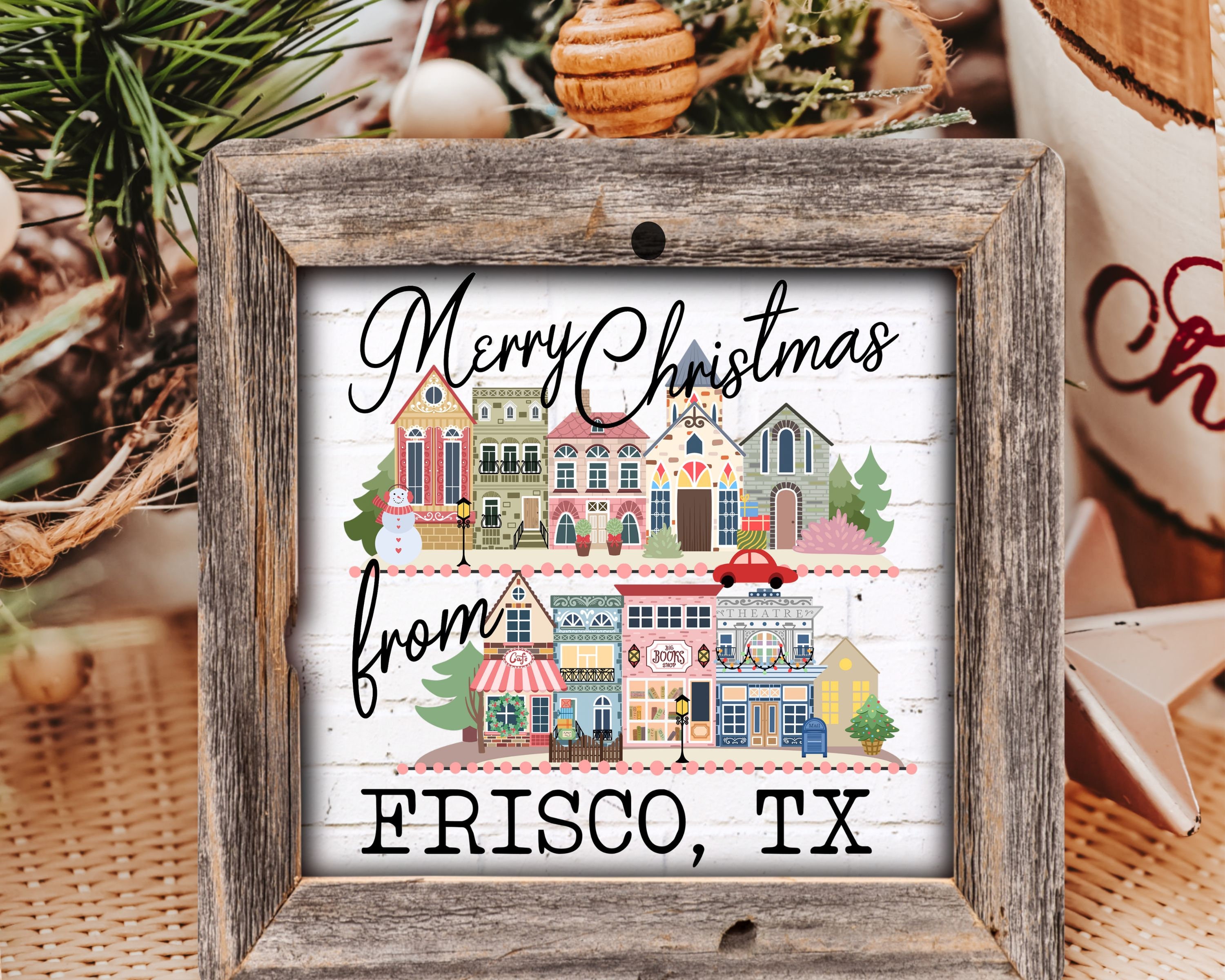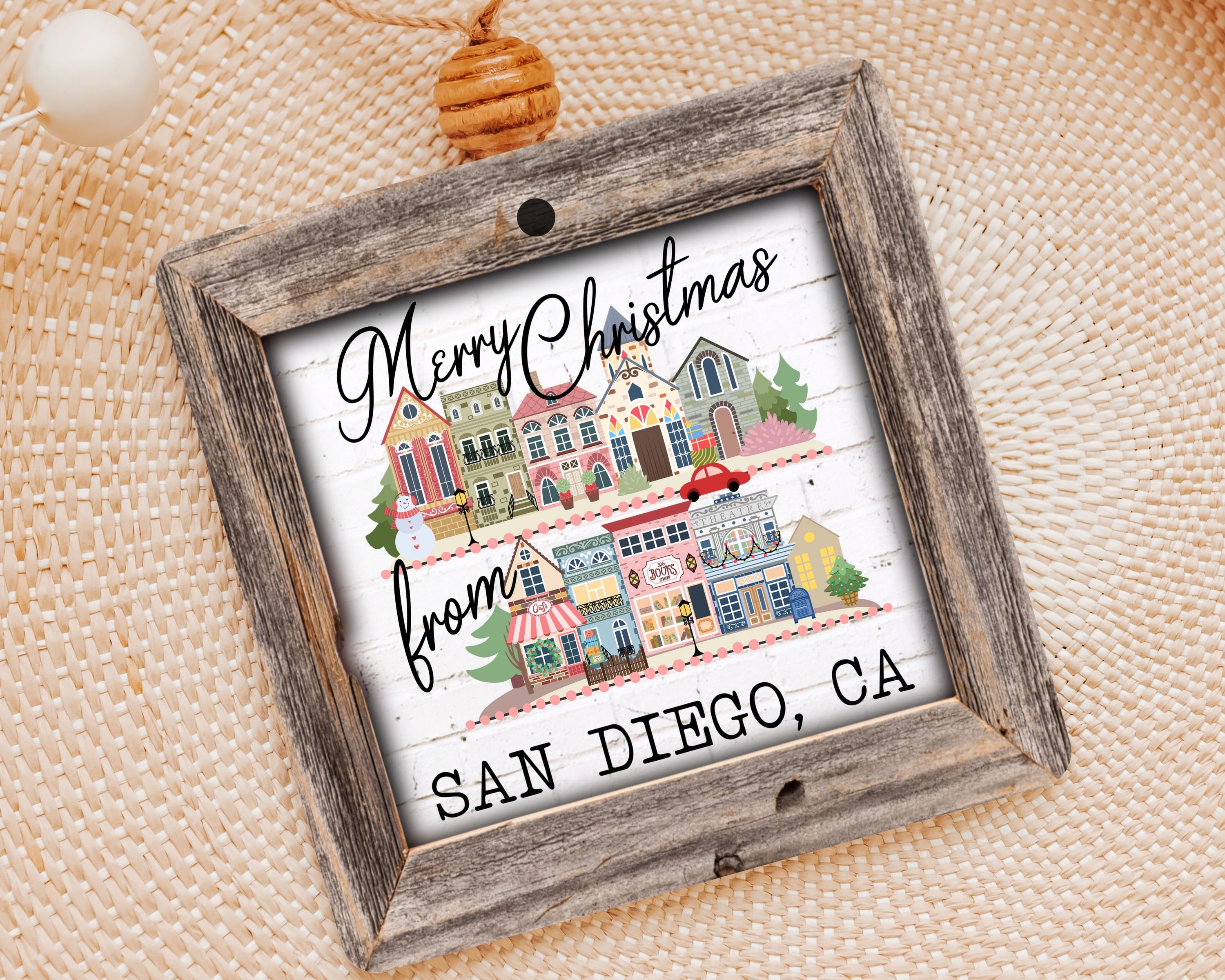 Share hometown cheer with custom city and state Merry Christmas from ornaments. Perfect as farmhouse-style decor, they make thoughtful housewarming or real estate closing gifts for buyers and sweet stocking stuffers for friends and family.