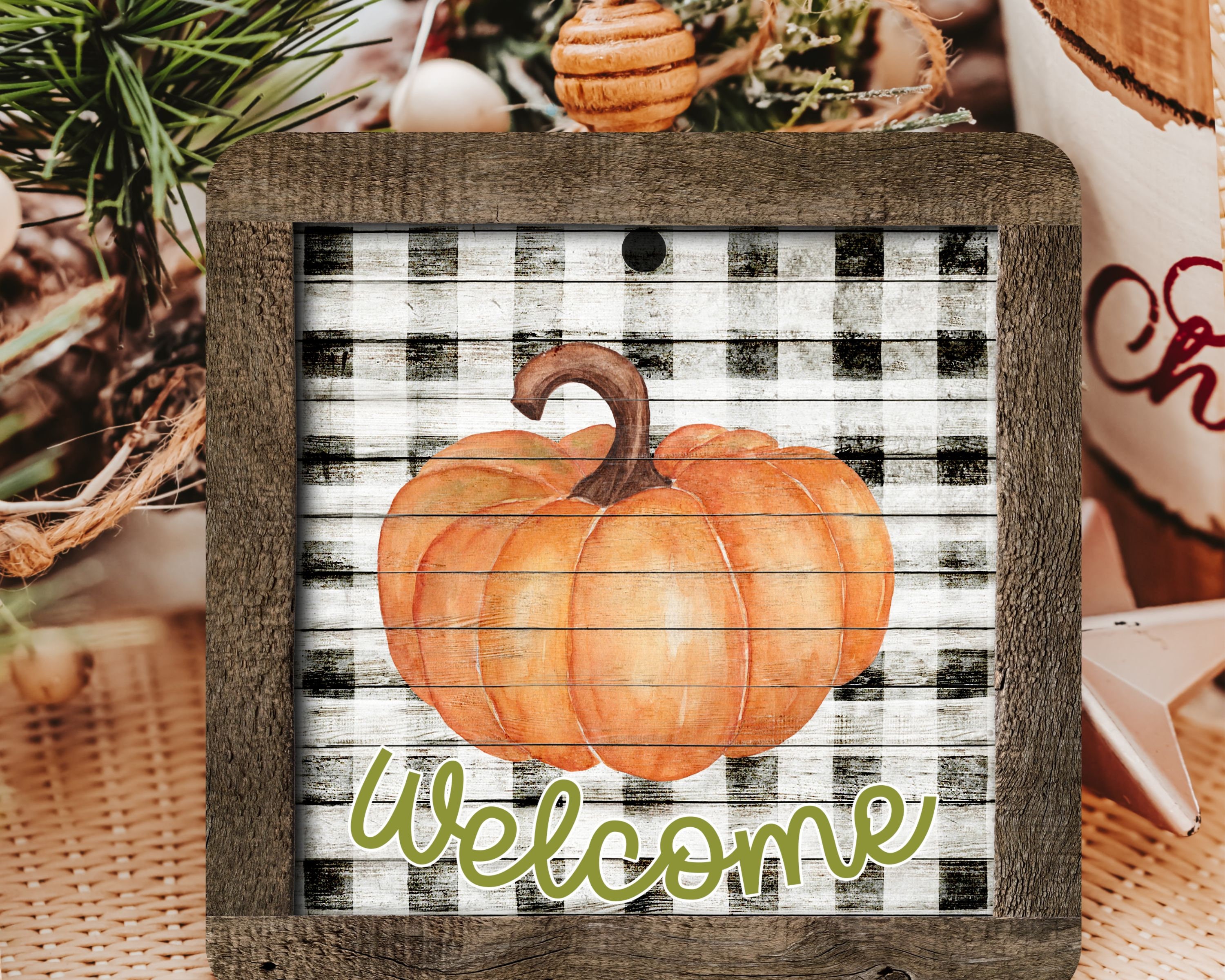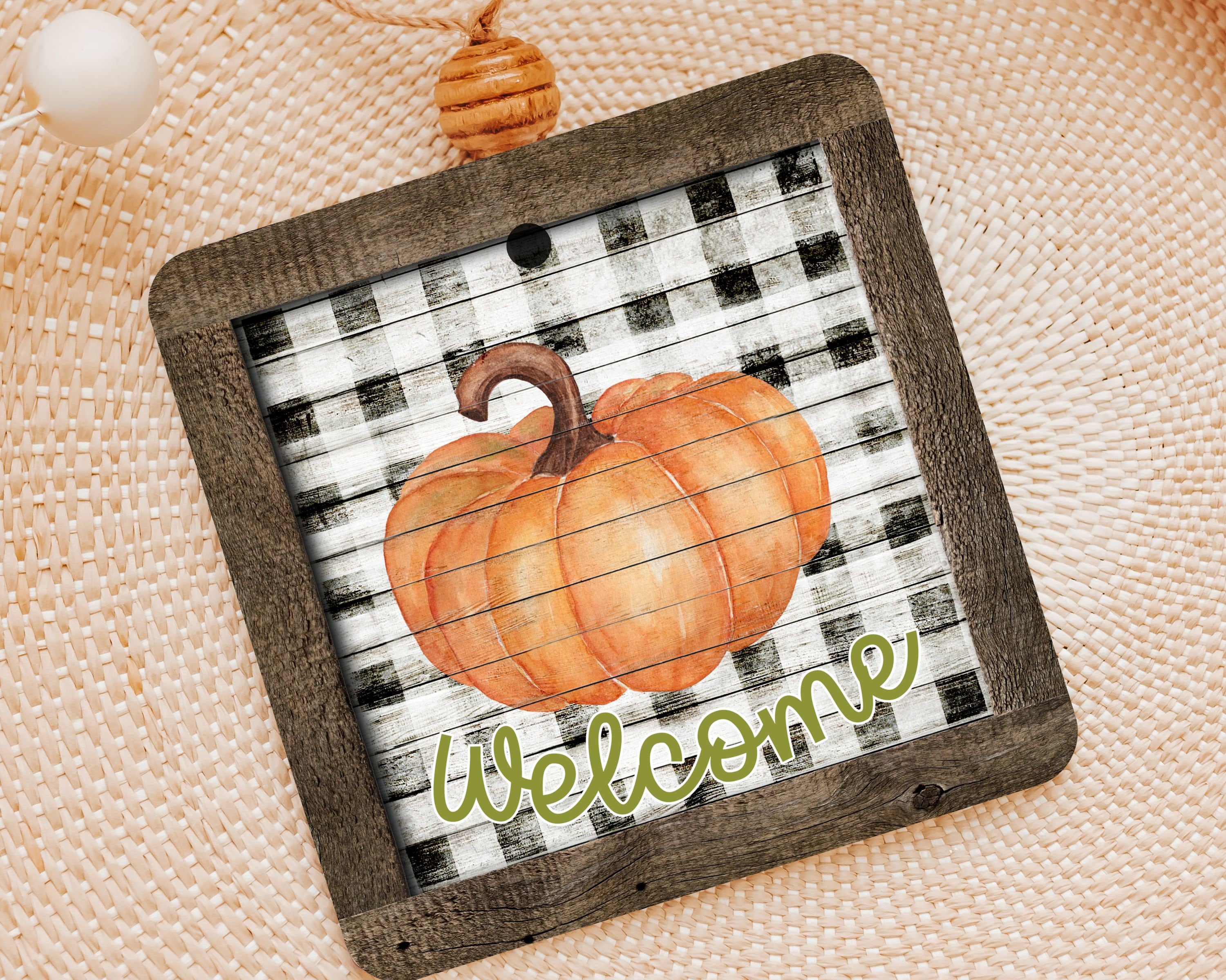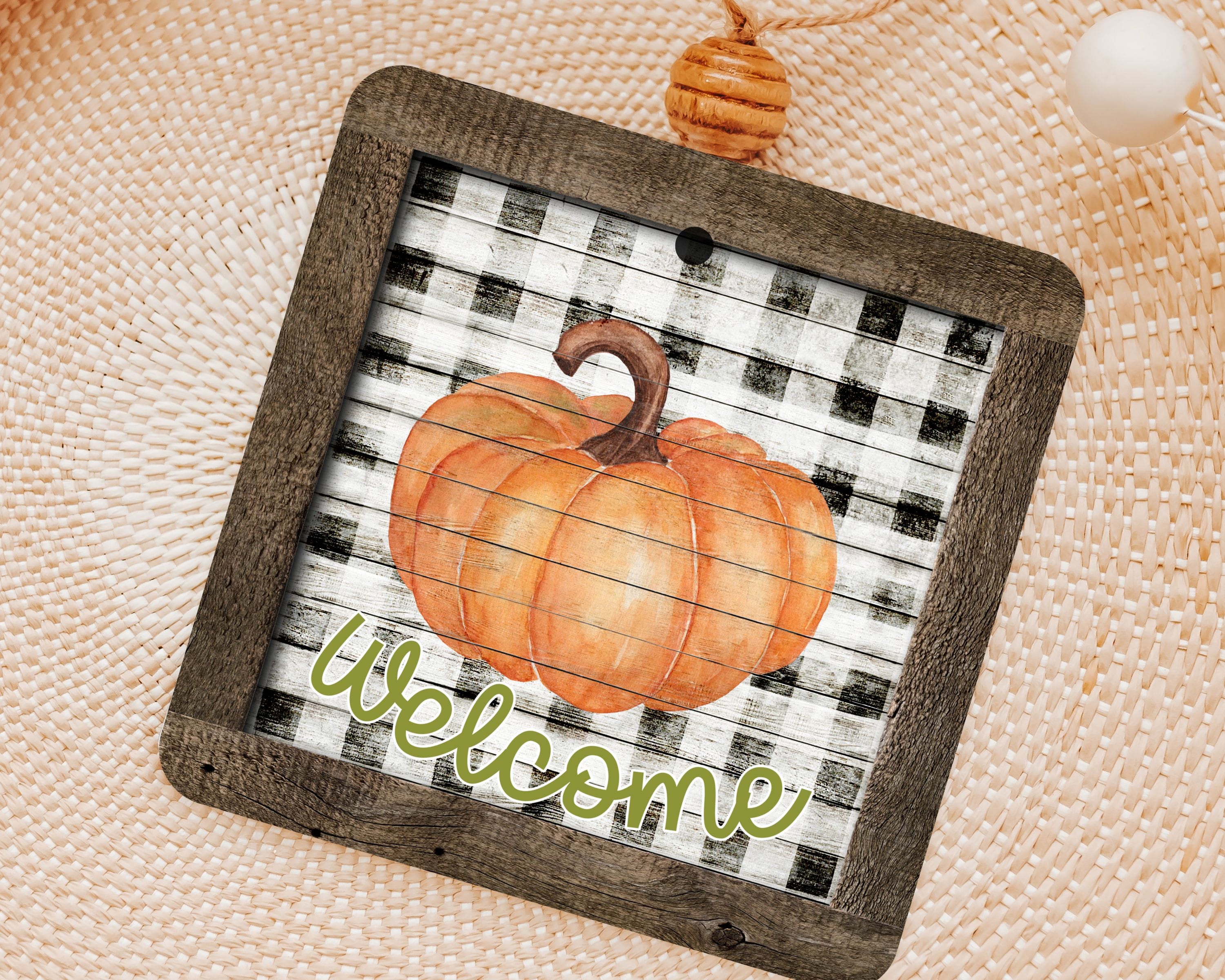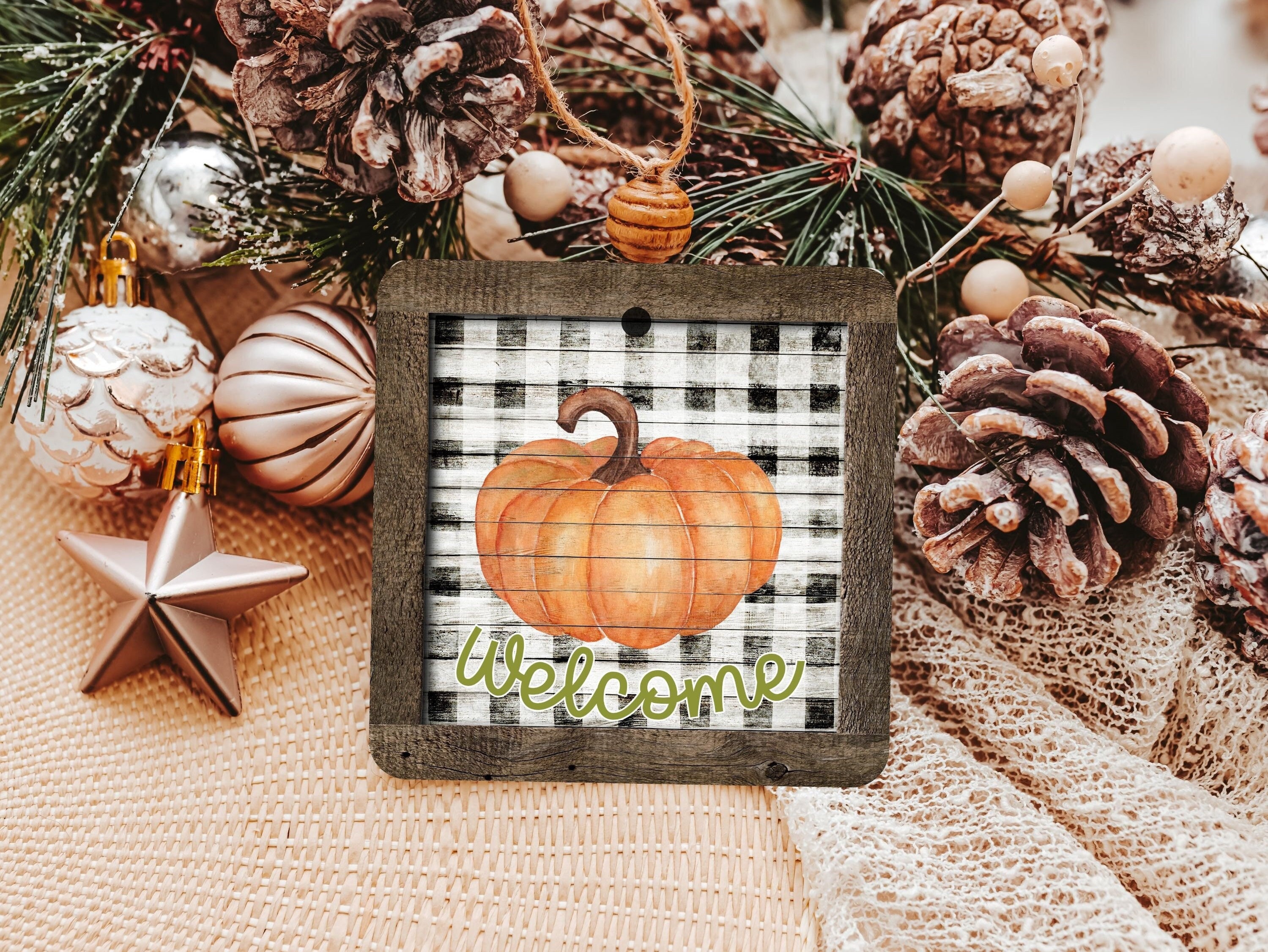 farmhouse pumpkin ornament welcome wreath attachments for fall style gift, Thanksgiving ornaments for tree, fall host gift, black and white