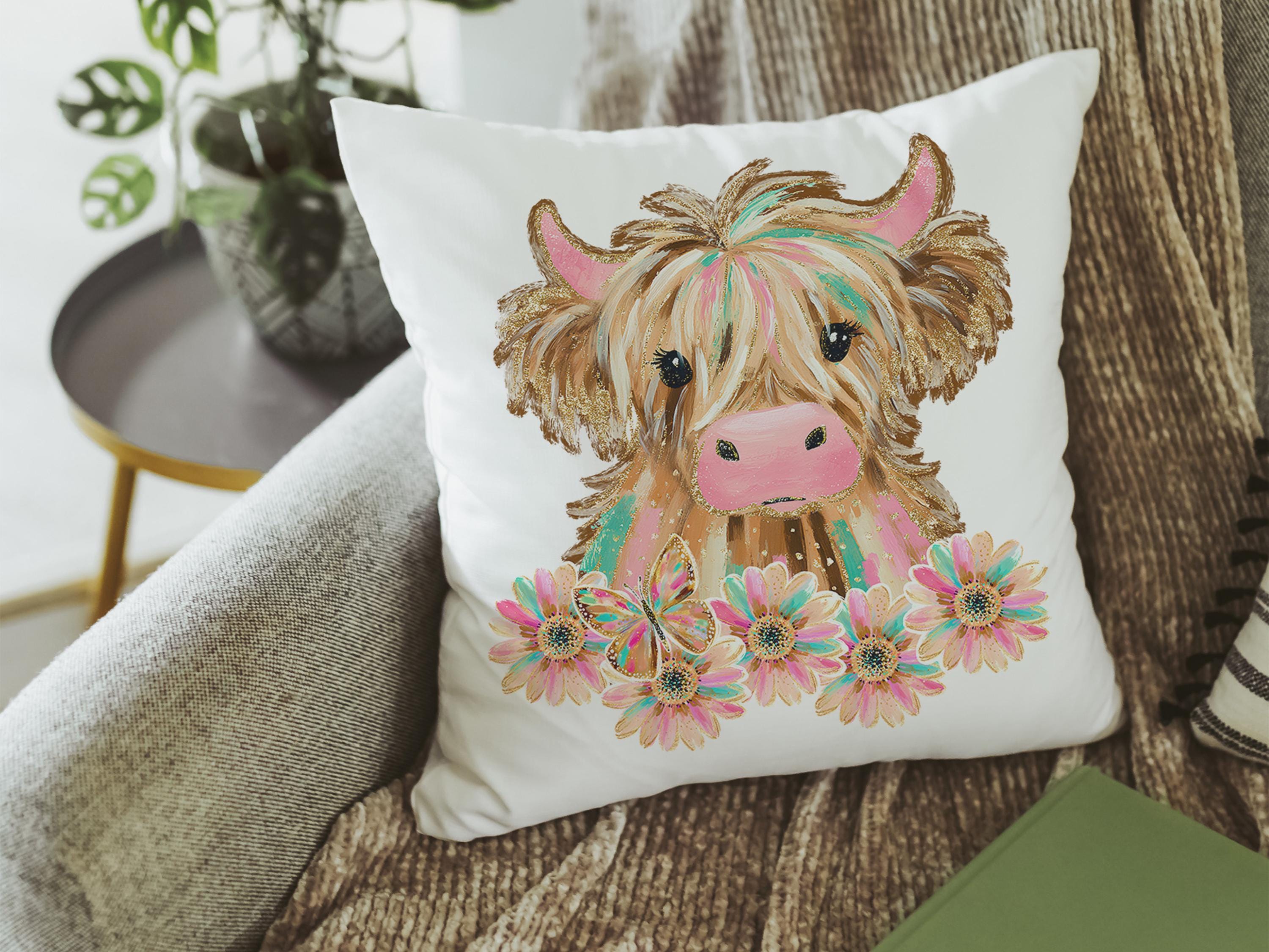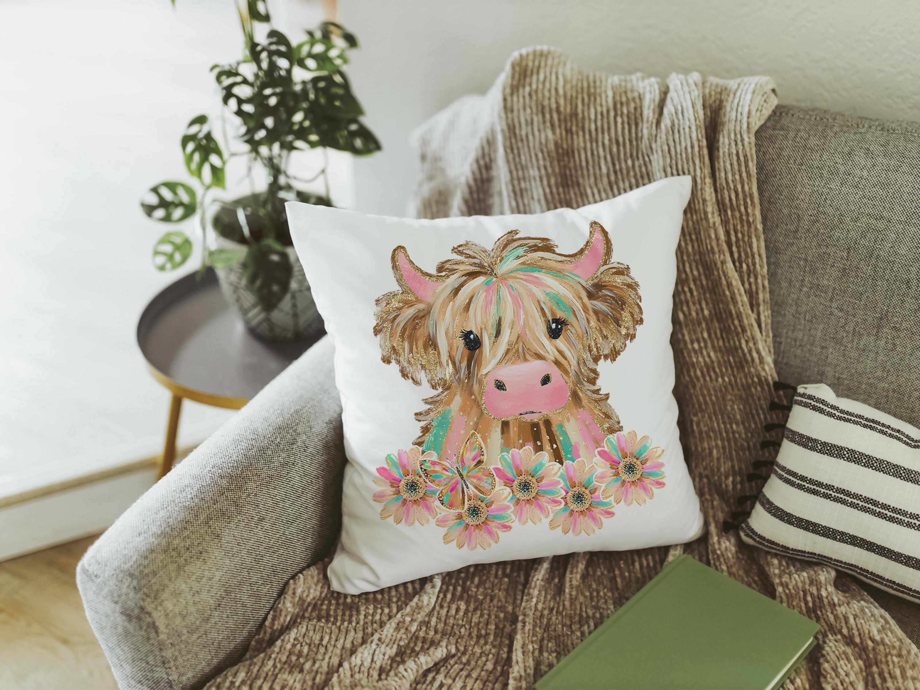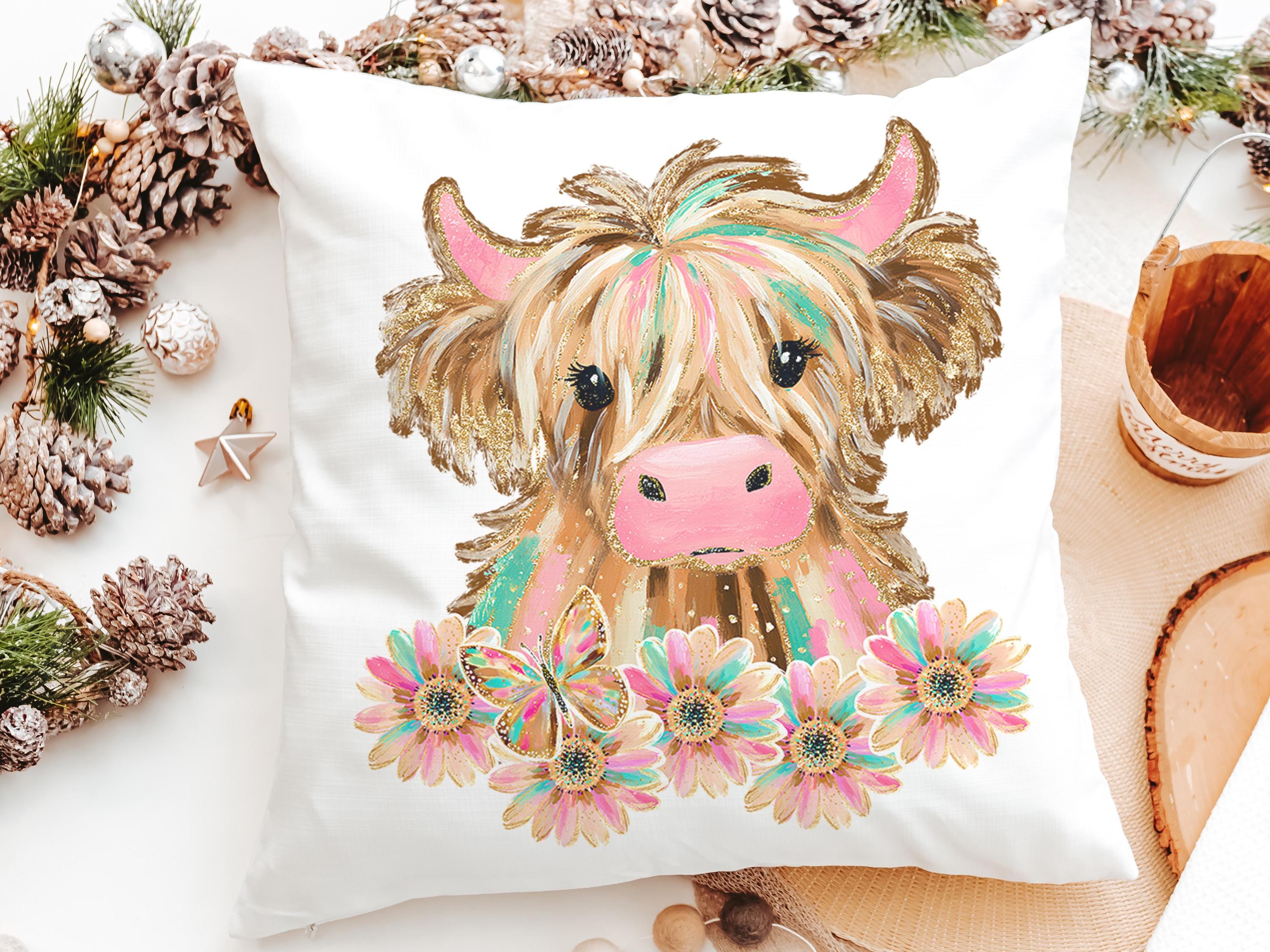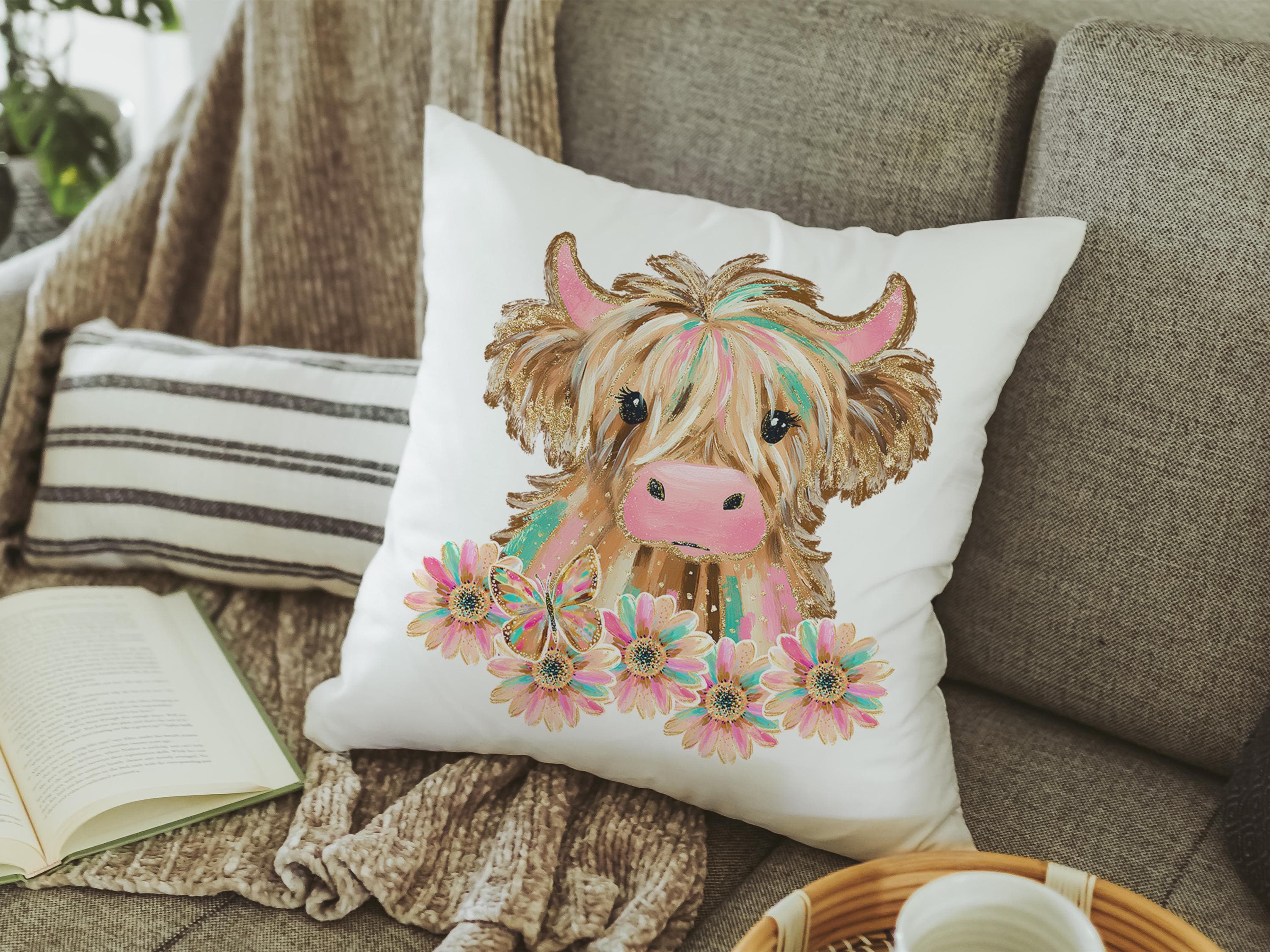 Add a sweet touch to your space with pink highland cow pillows, perfect for the couch, bedroom, or nursery. This cute shaggy cow design makes adorable Christmas gifts for little girls and charming decor for anyone who loves farmhouse or watercolor cow accents.