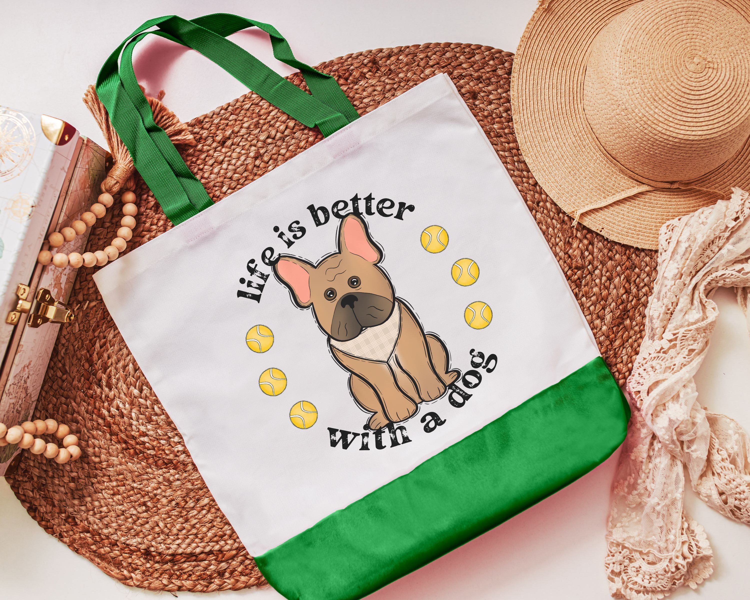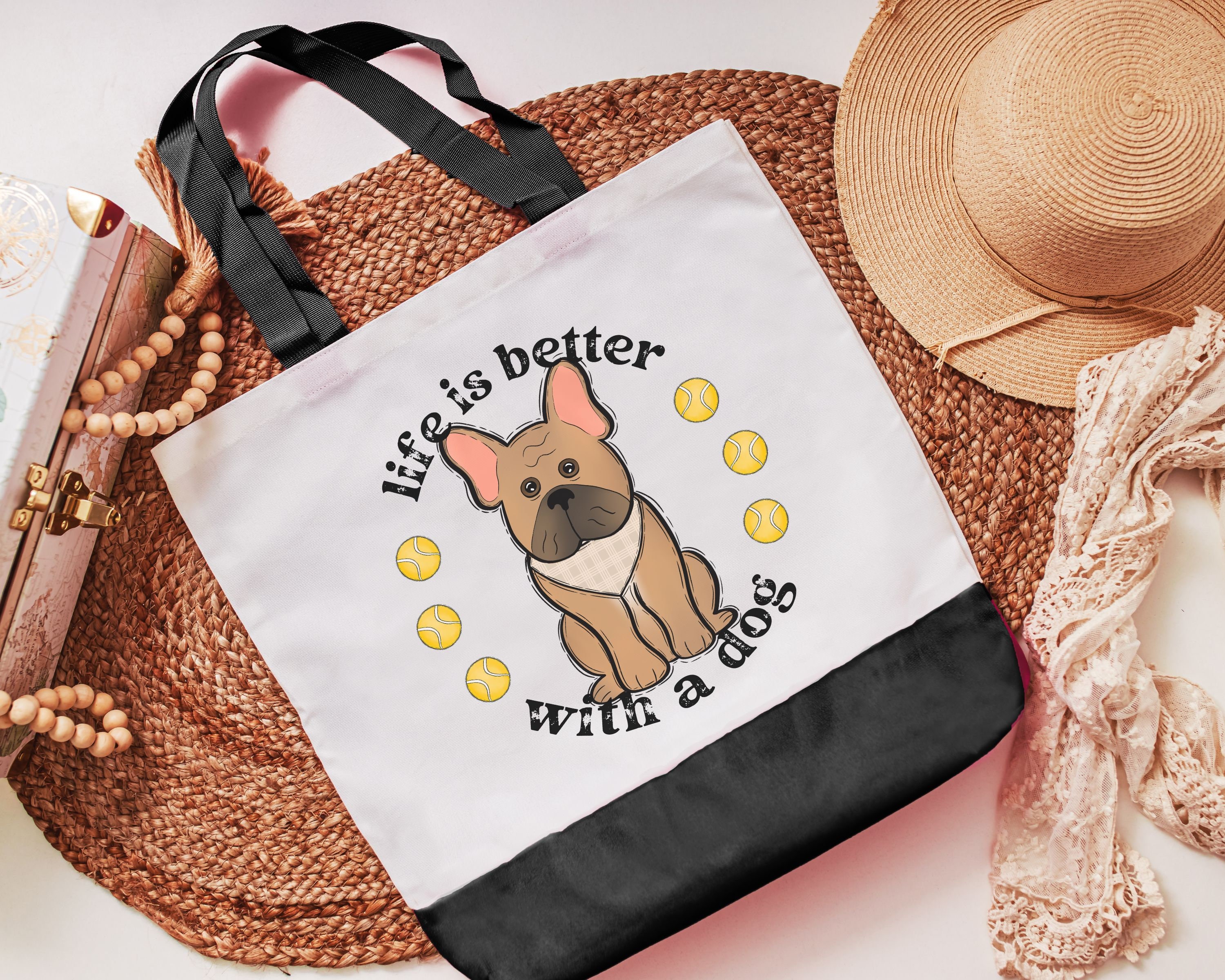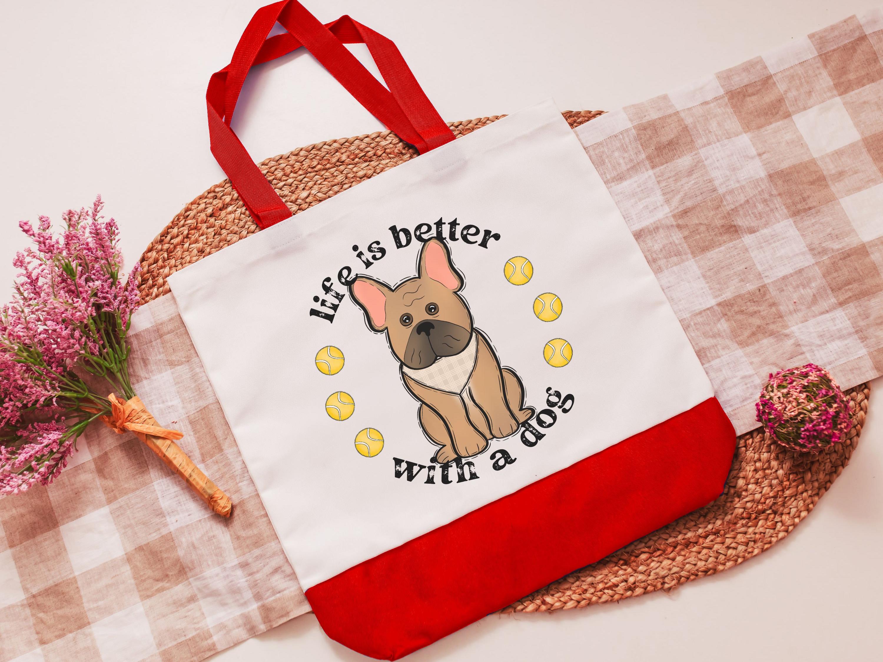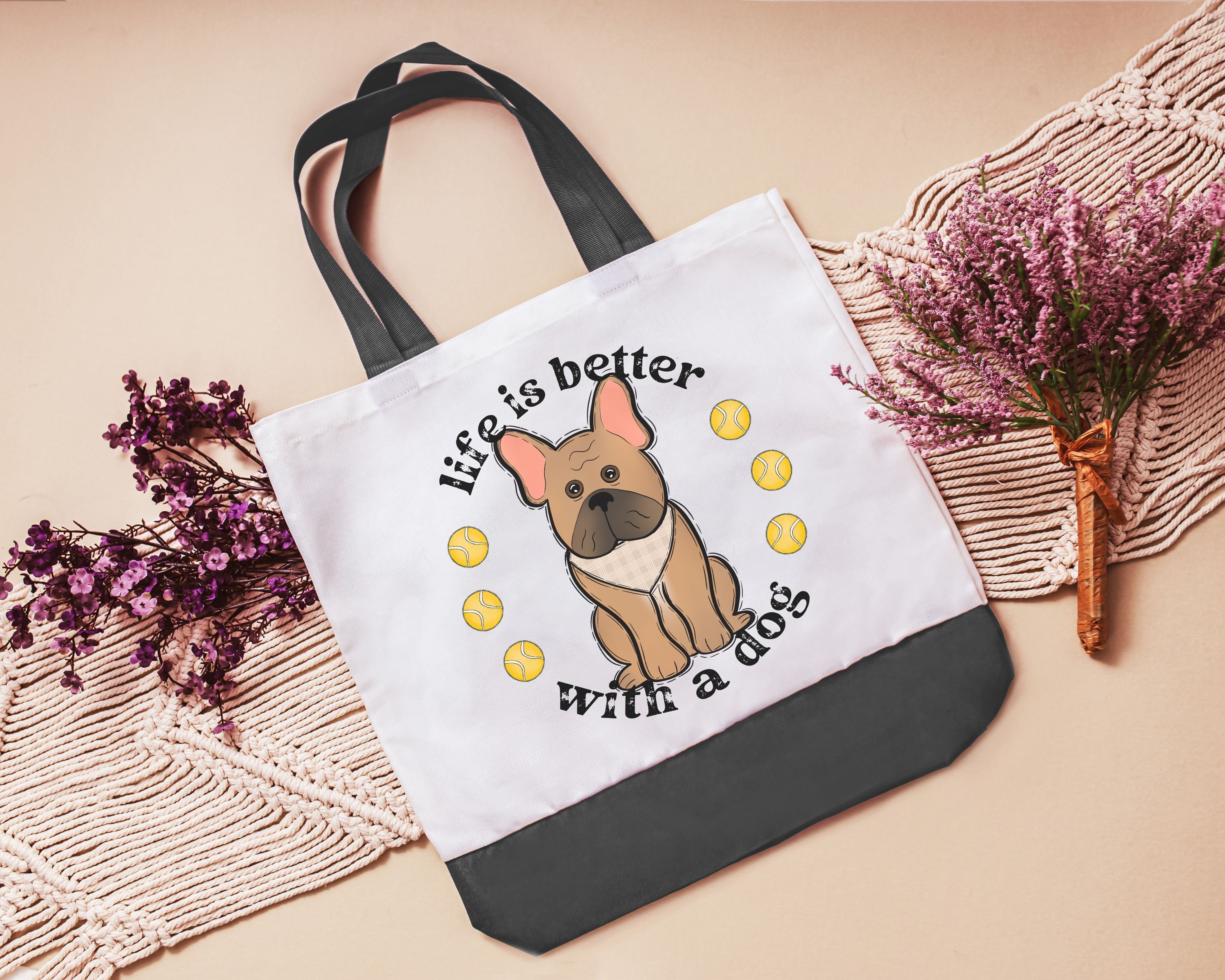 life is better with dogs French bulldog tote bag for women, Frenchie mom gift, French bulldog gifts for her, reusable shopping bag, cute dog