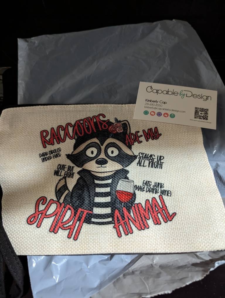 A fun bag for everyday carry, bringing humor into a purse or tote. Spirit Animal with a funny raccoon and trash panda attitude makes it a great sarcastic gift for her or a best friend. A fun pick for birthdays or anyone who proudly enjoys cute but feral energy.